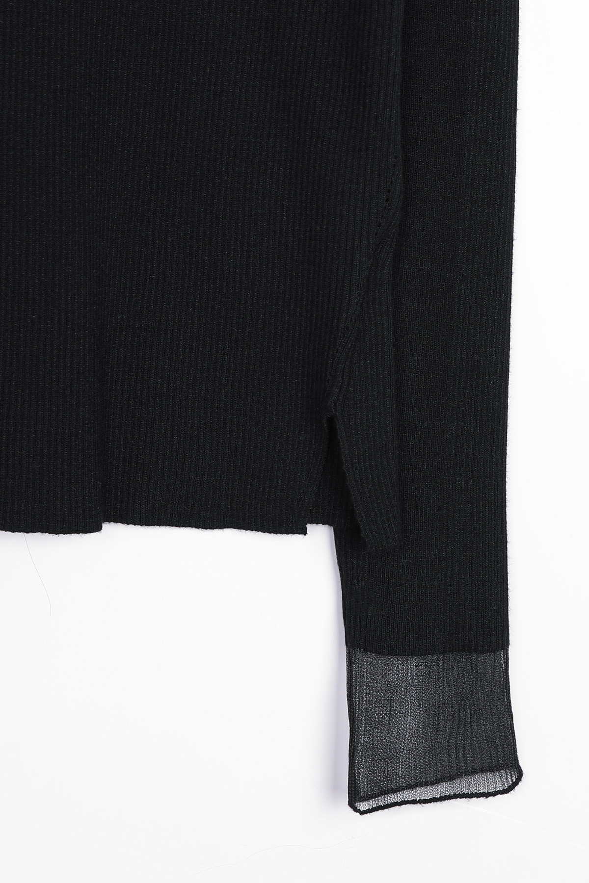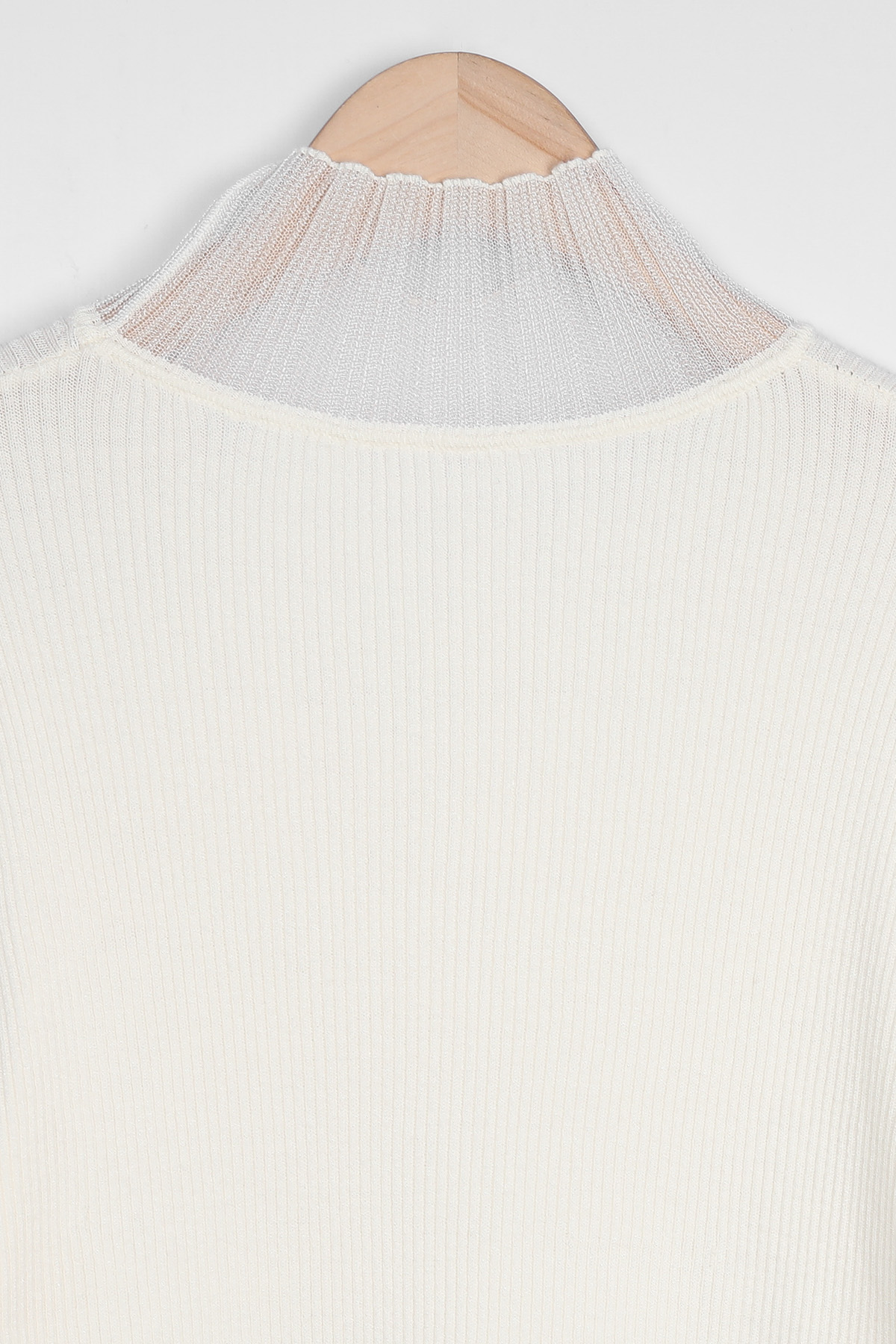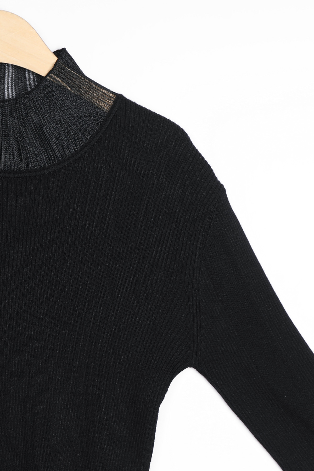 KNIT548 메쉬 플리츠 모크넥 슬림 골지 니트