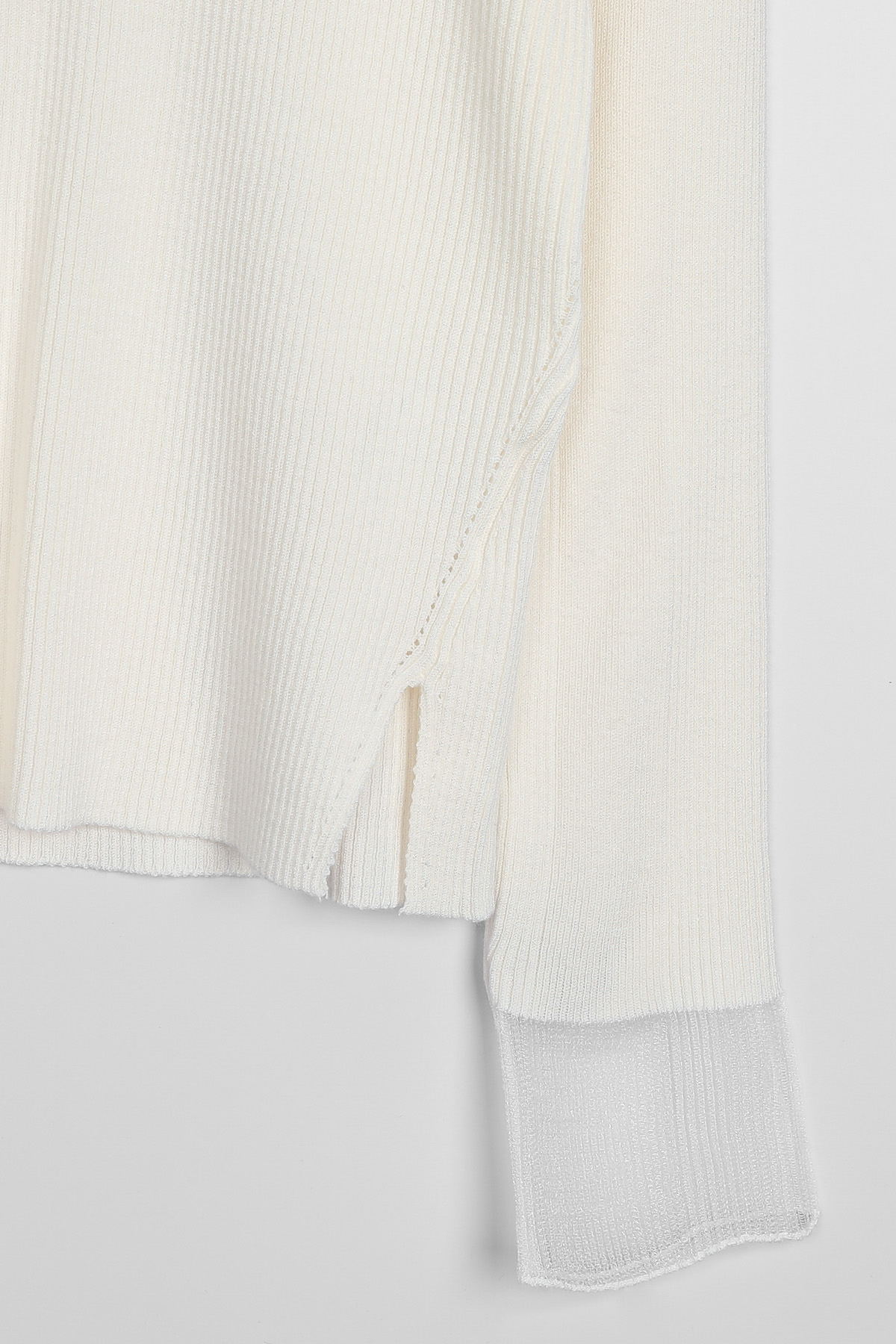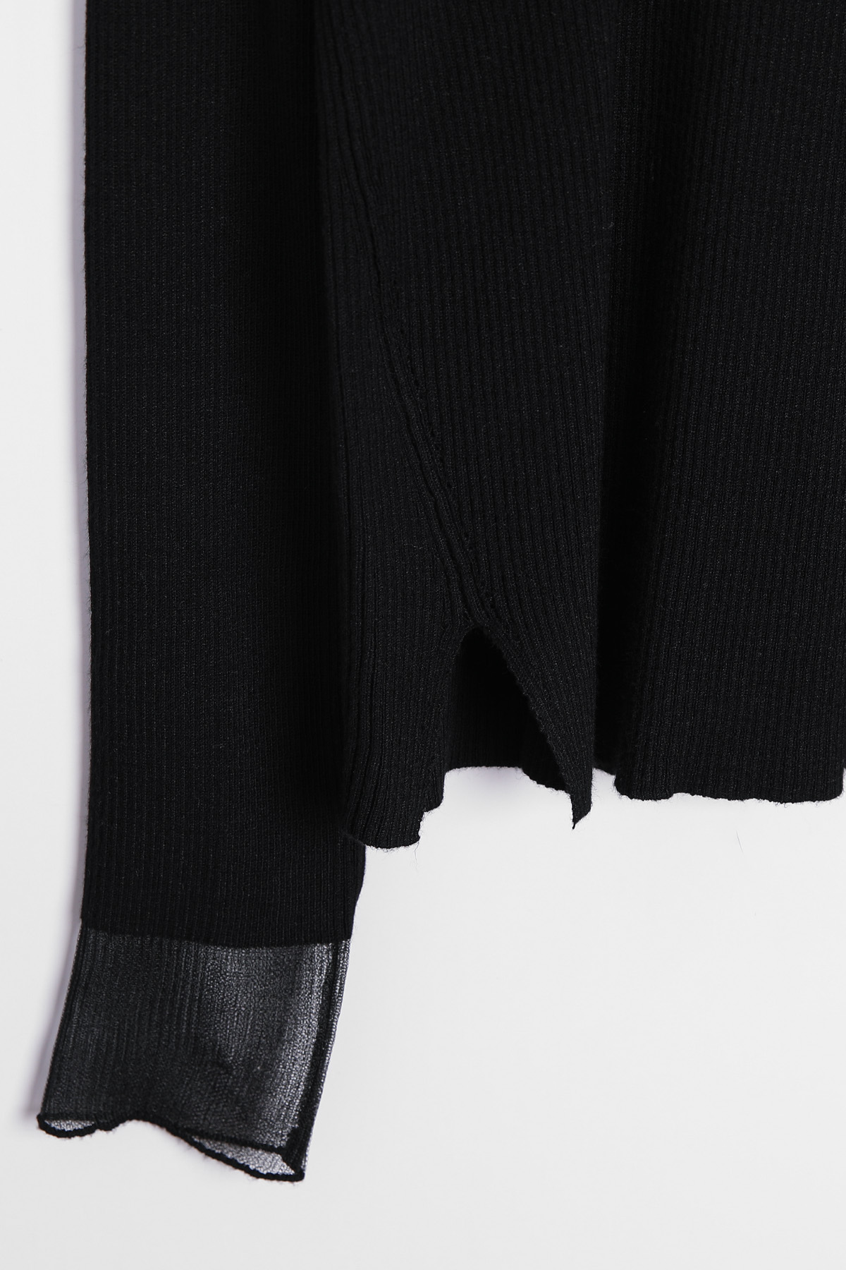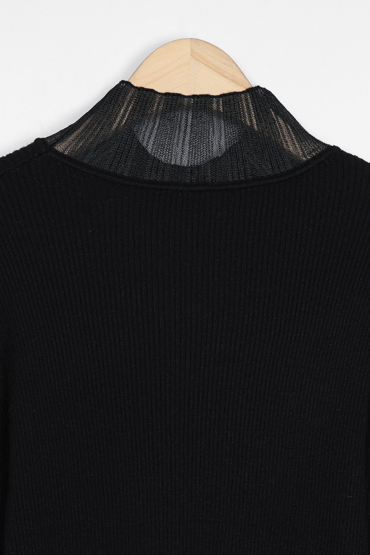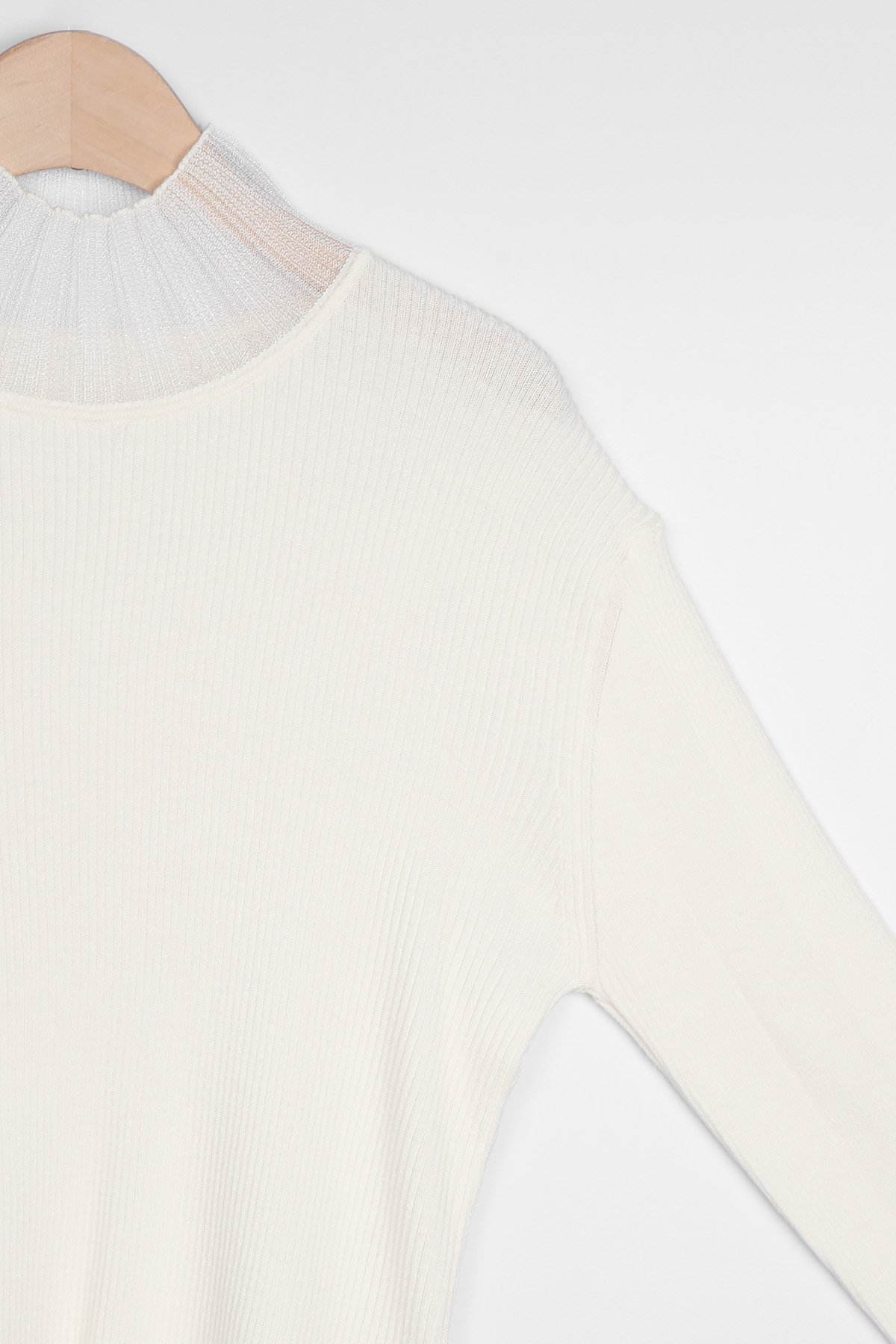 KNIT548 메쉬 플리츠 모크넥 슬림 골지 니트