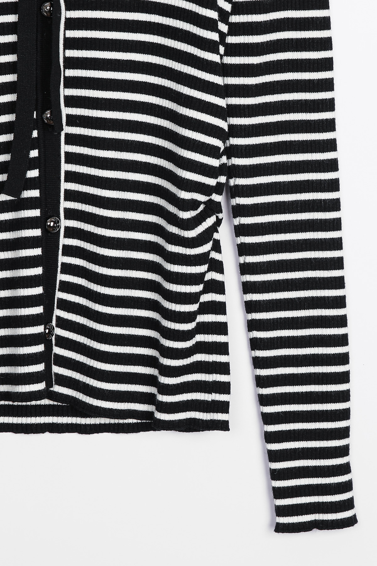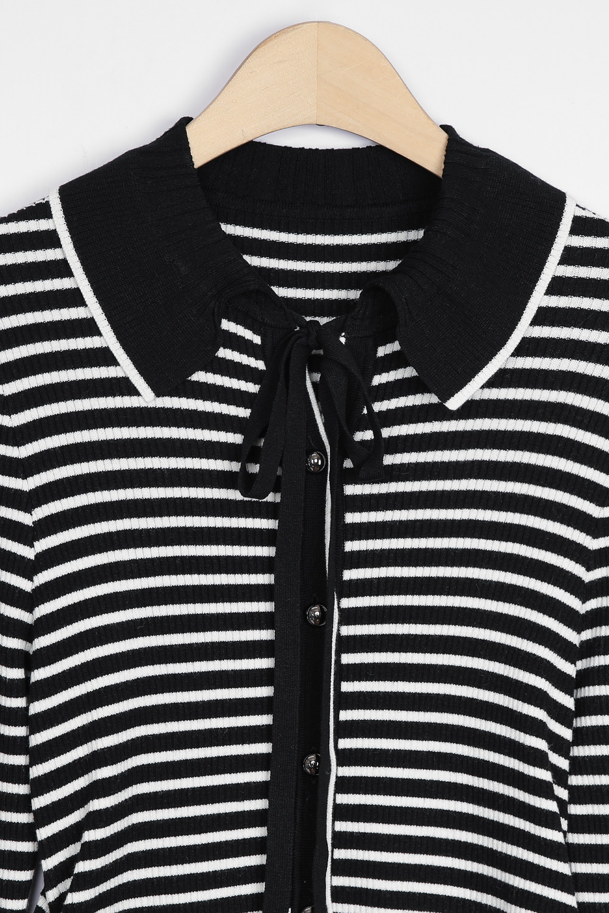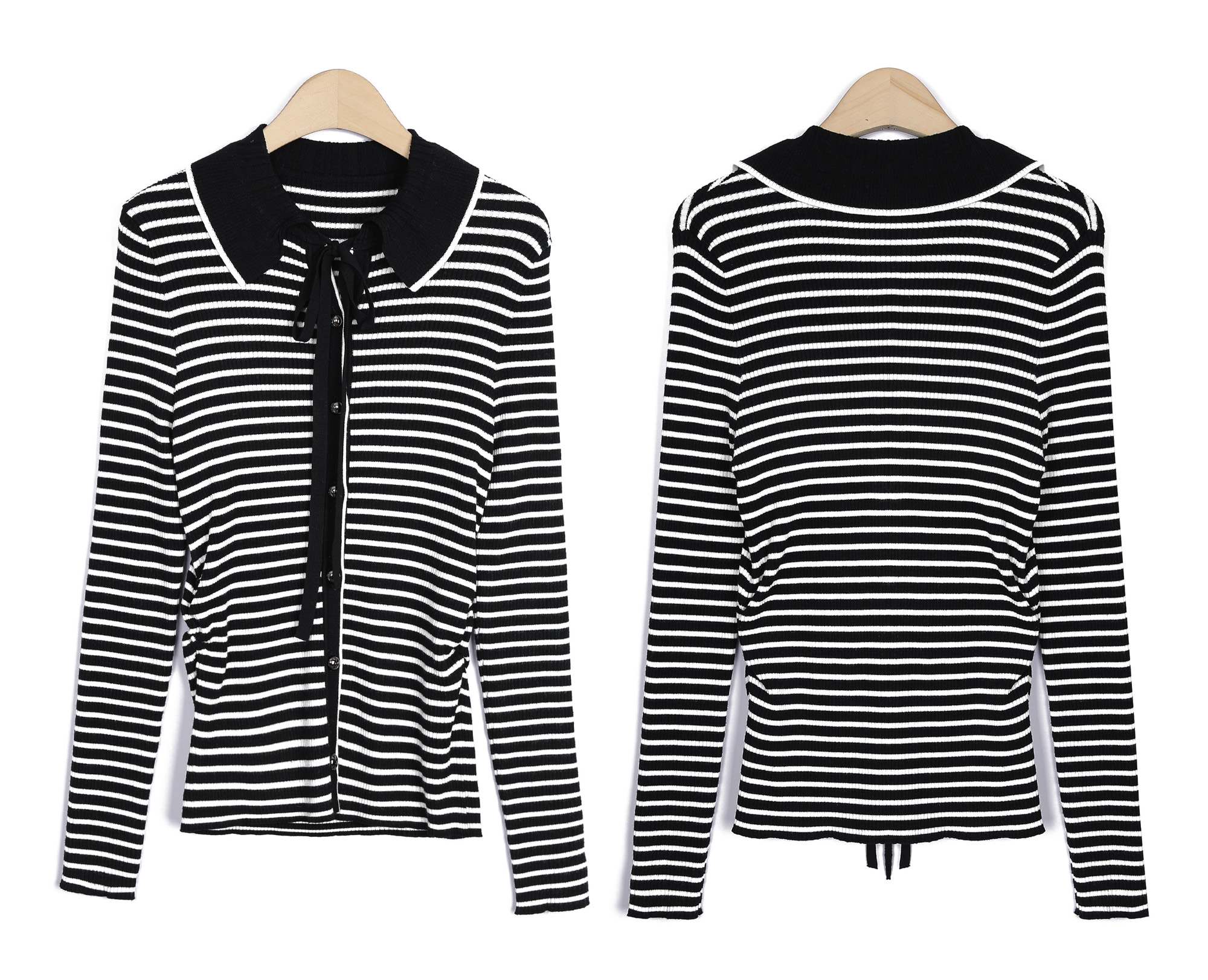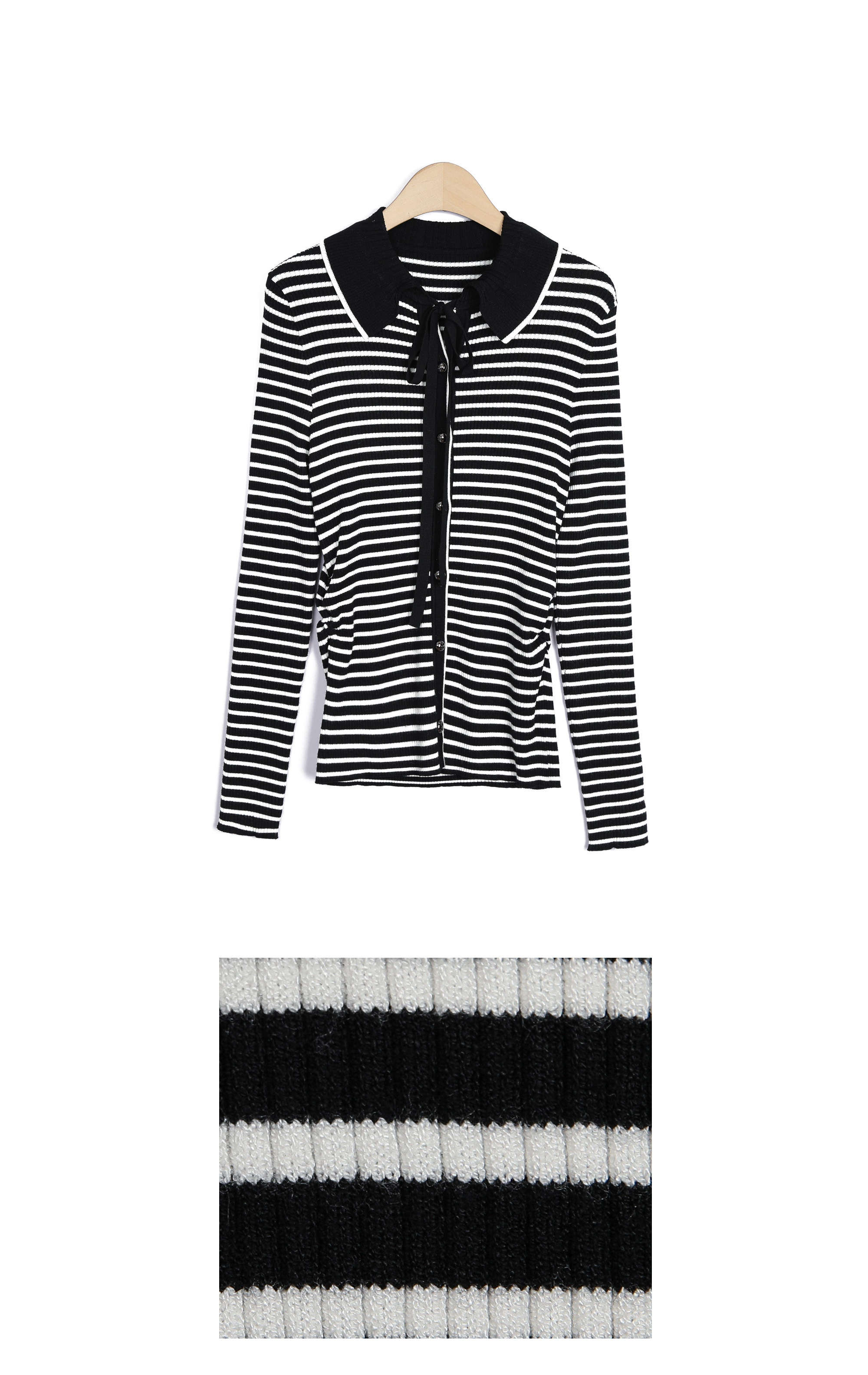 CD233 리본 넥 포인트 스트라이프 골지 니트