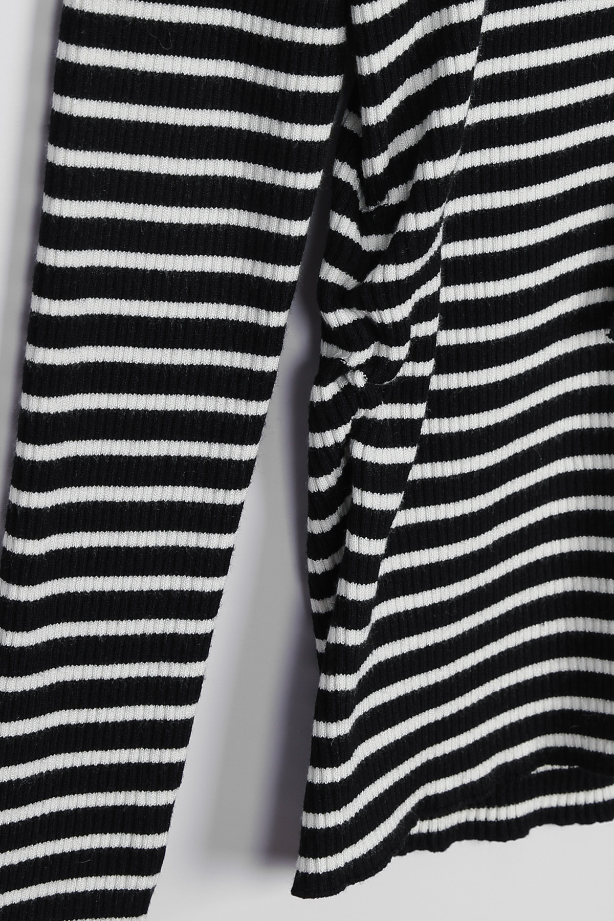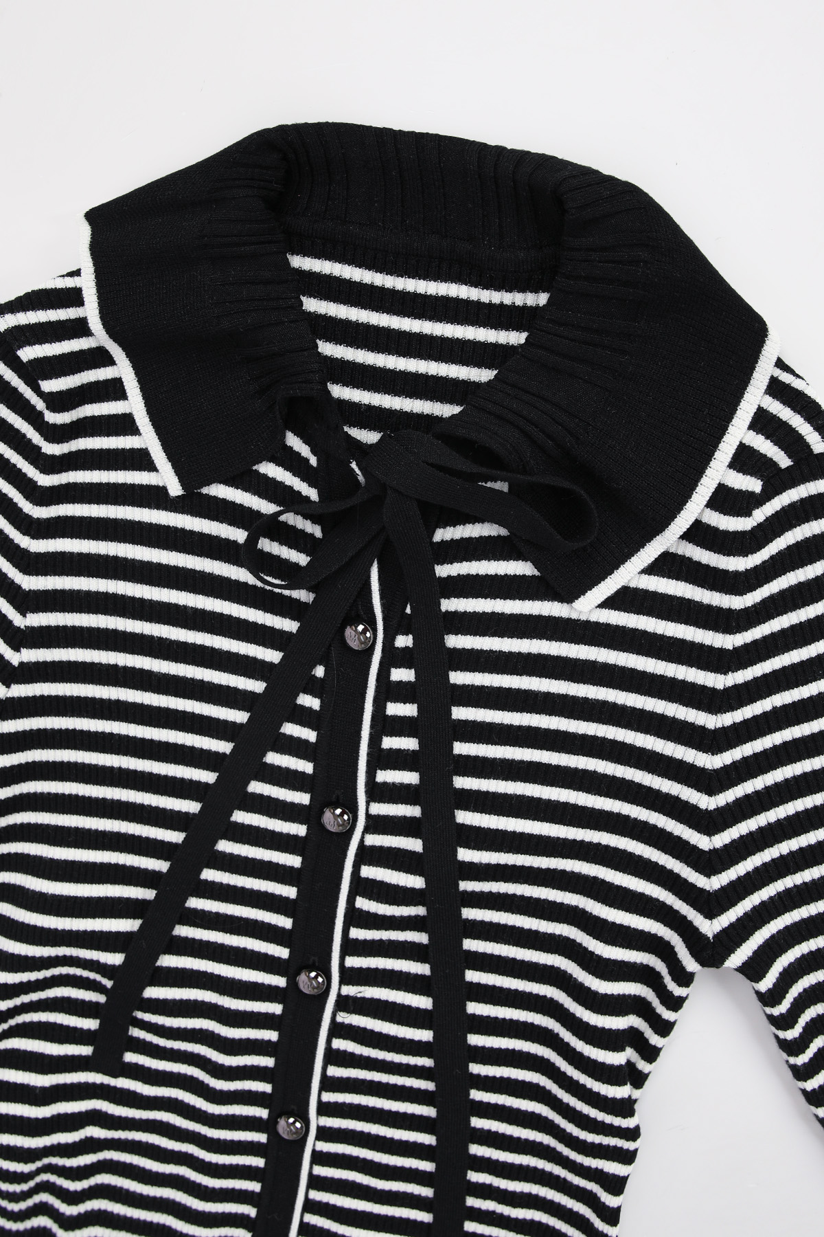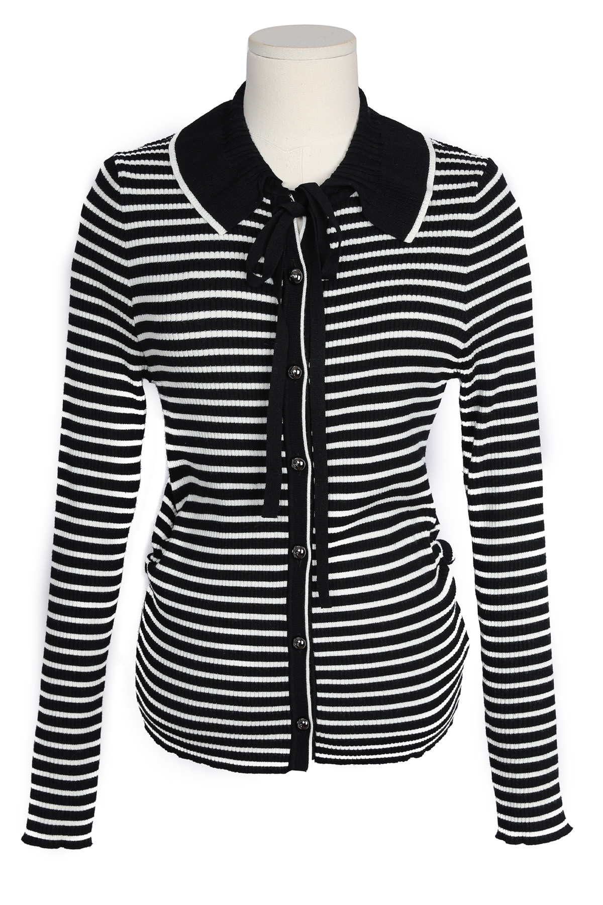 CD233 리본 넥 포인트 스트라이프 골지 니트