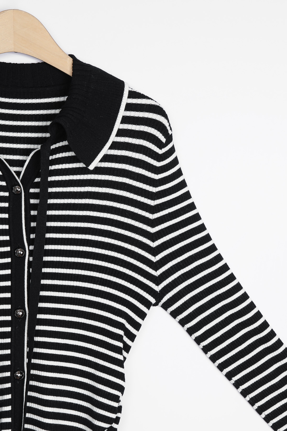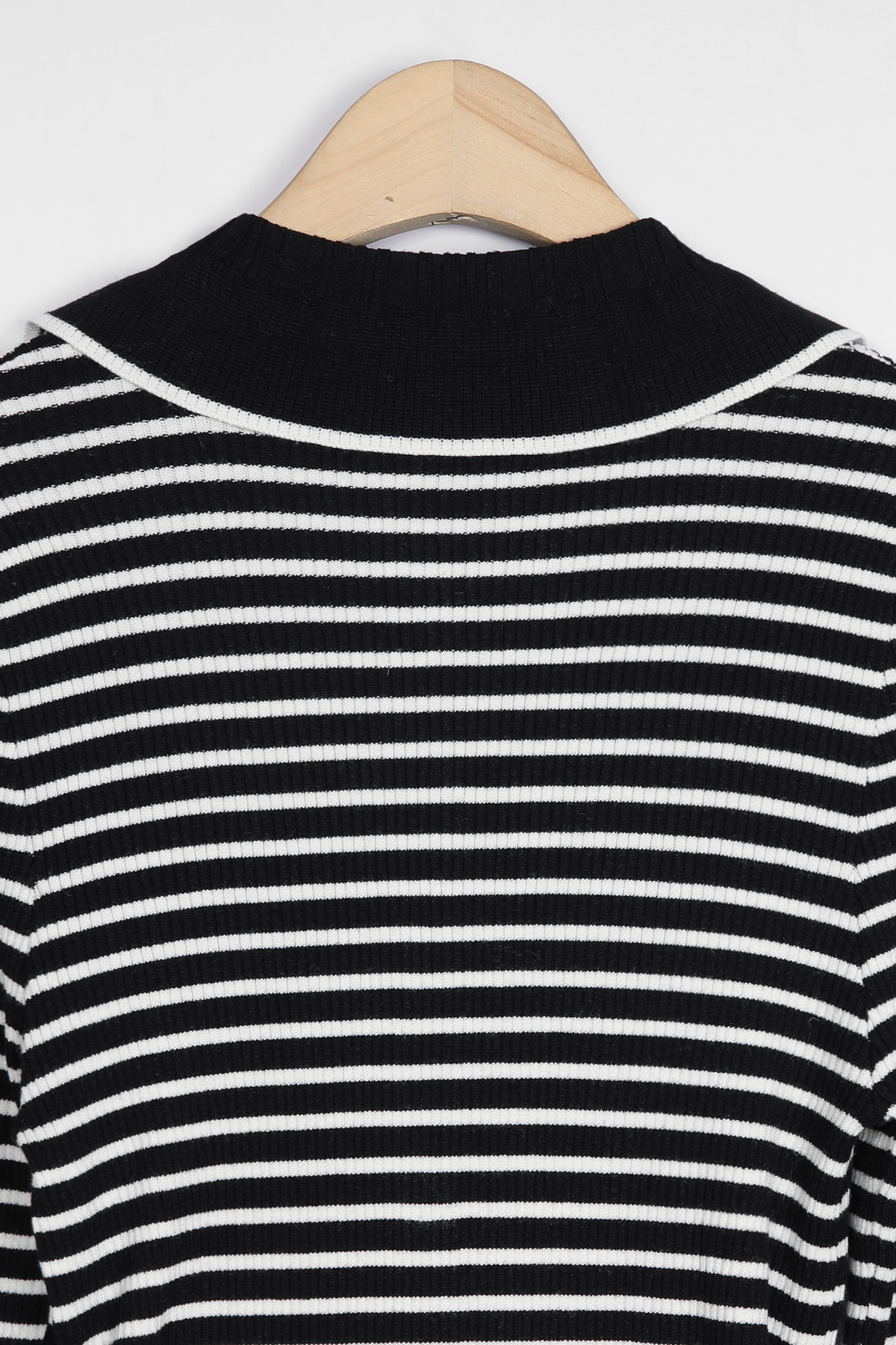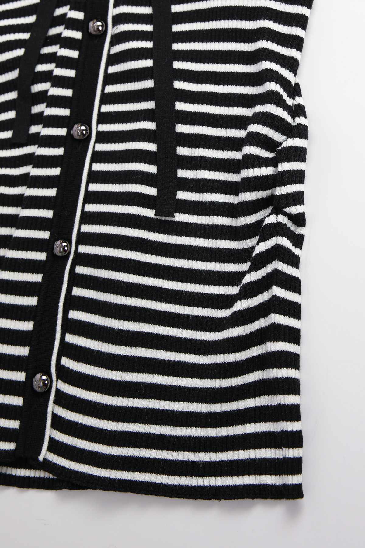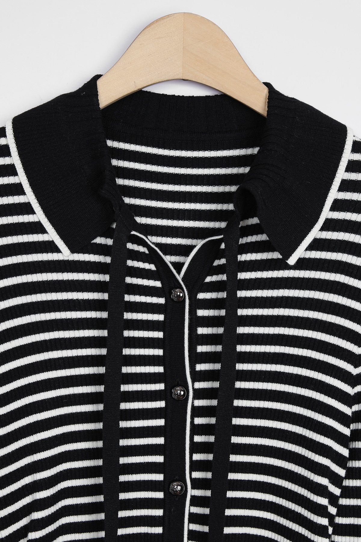CD233 리본 넥 포인트 스트라이프 골지 니트