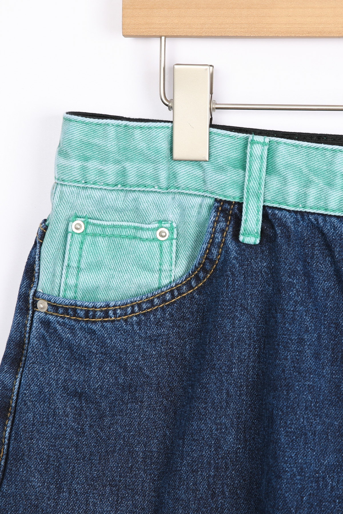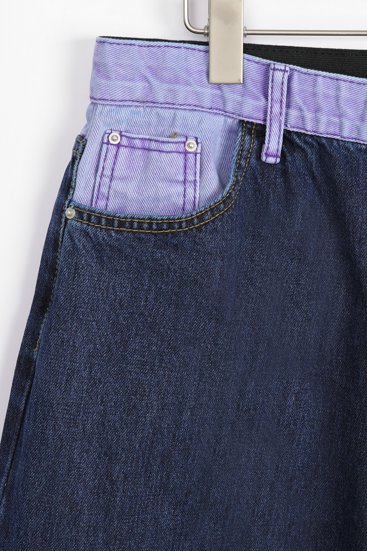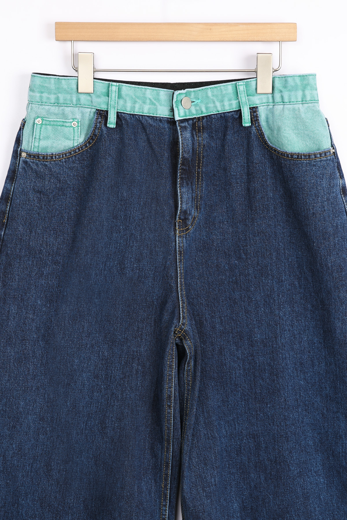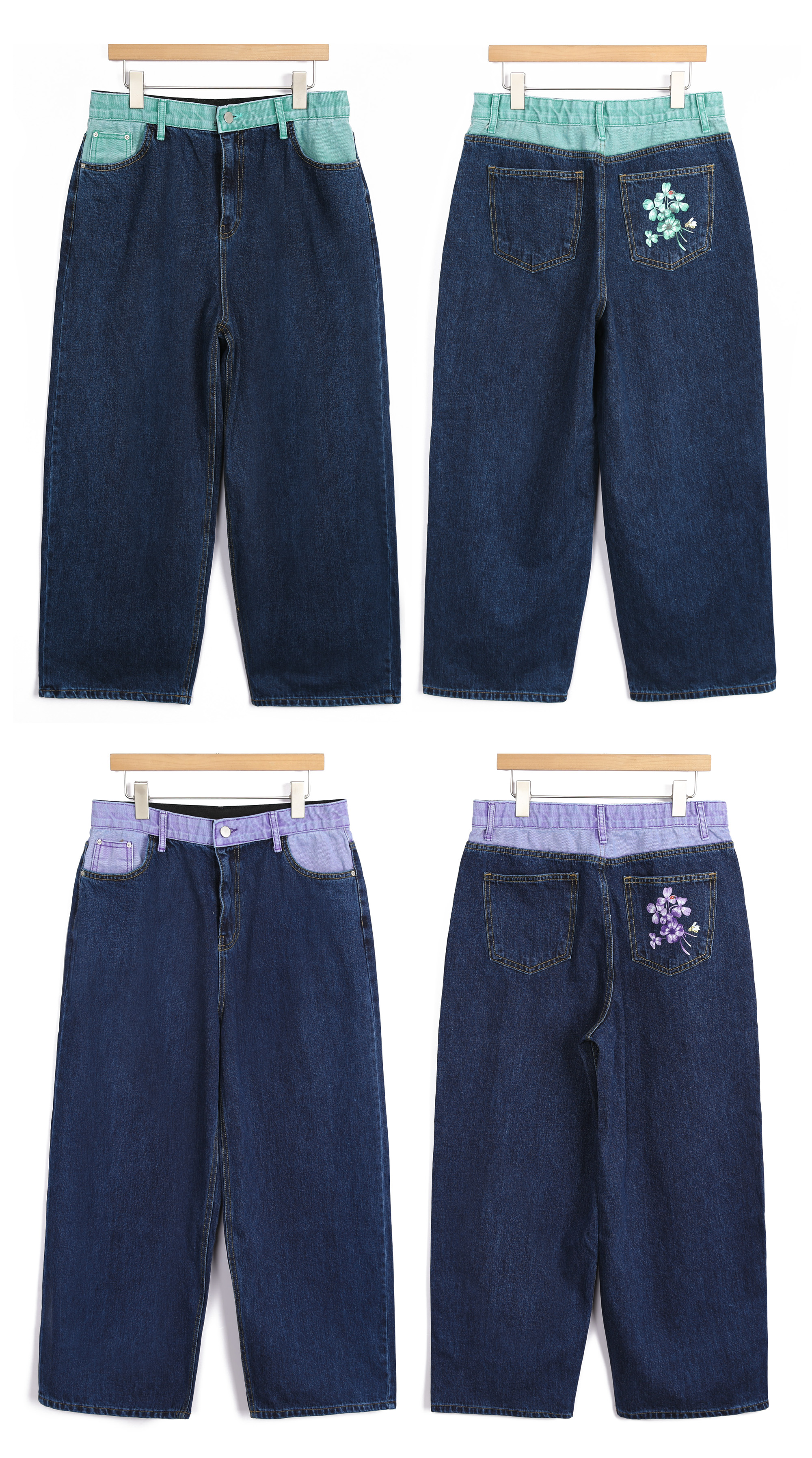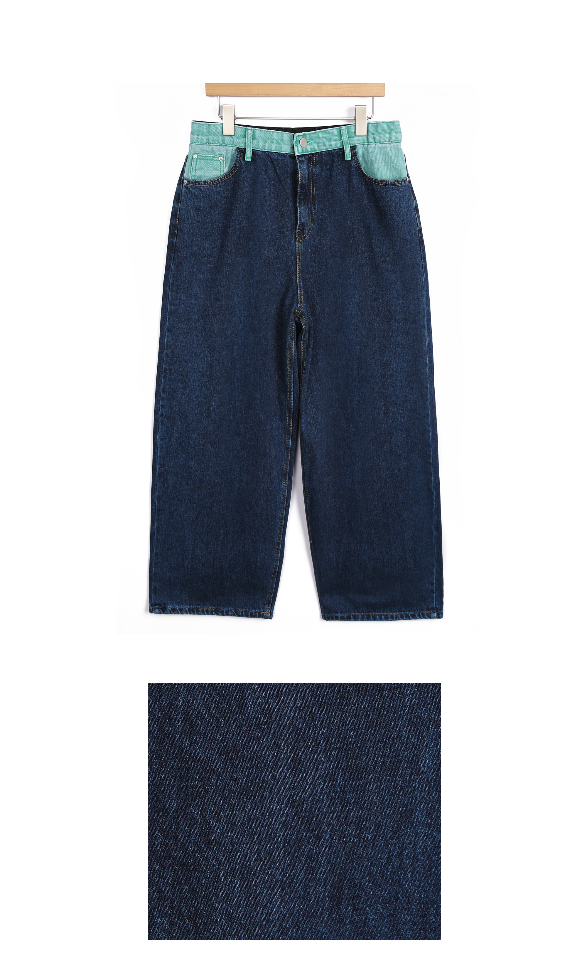 JEAN393 배색 허리 포인트 반배기 데님 팬츠