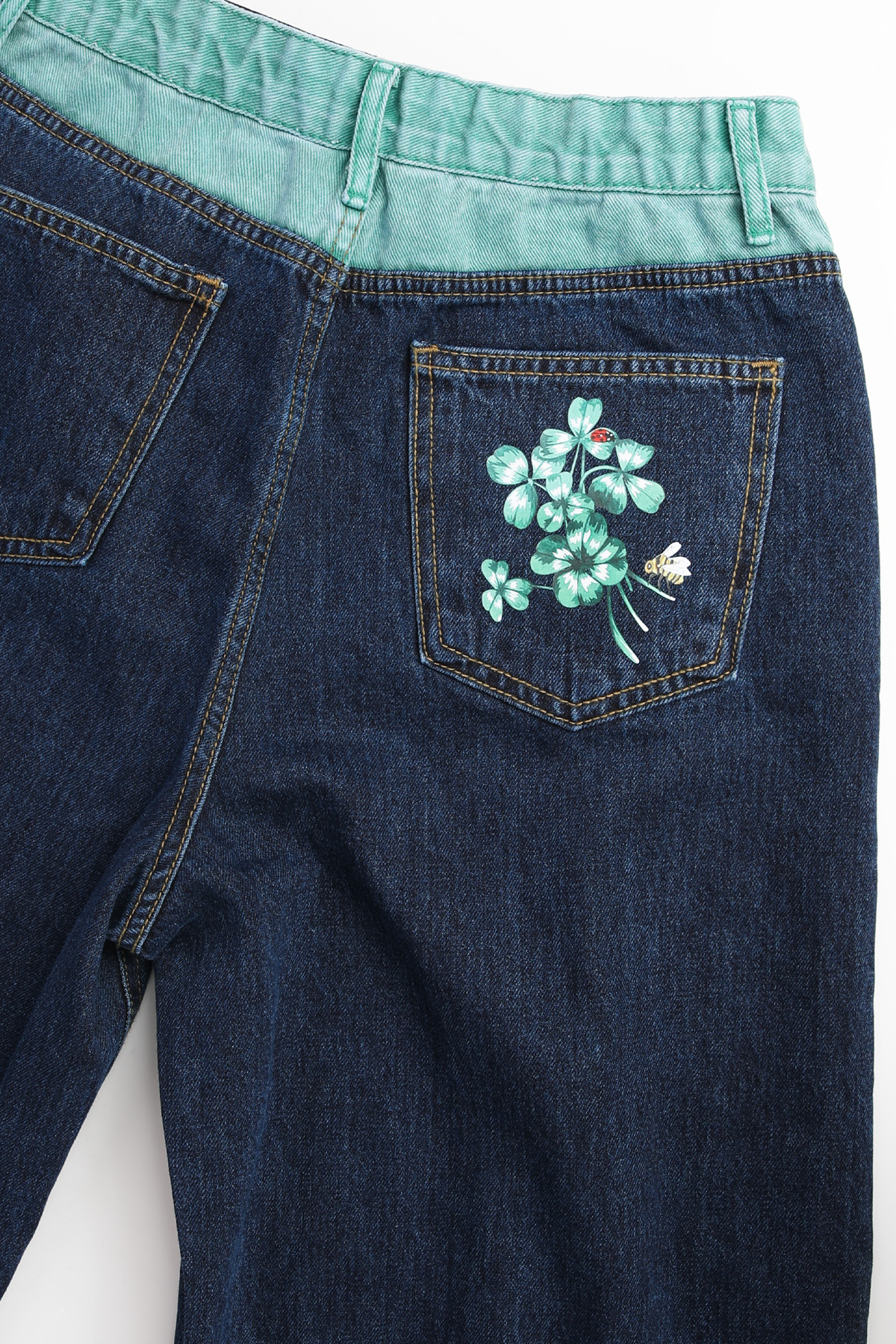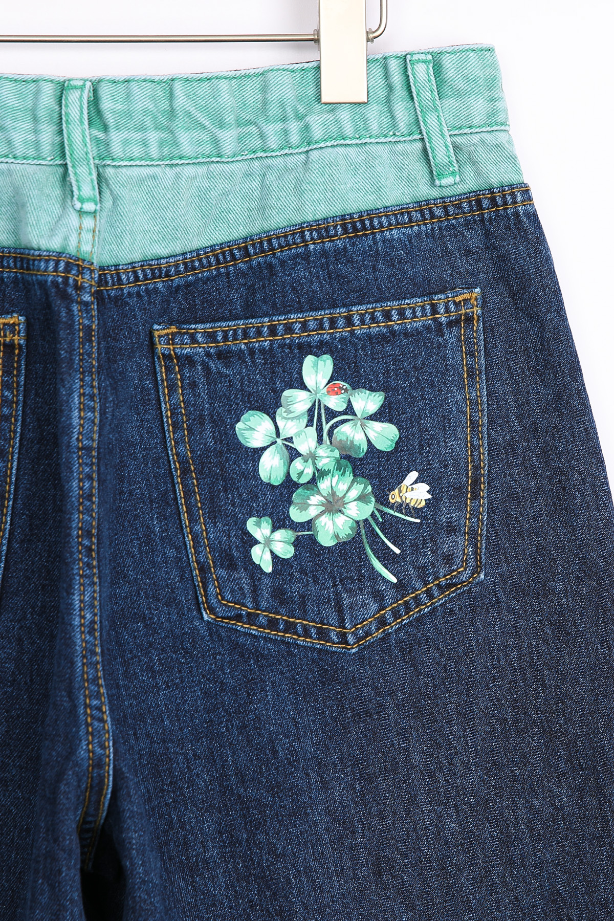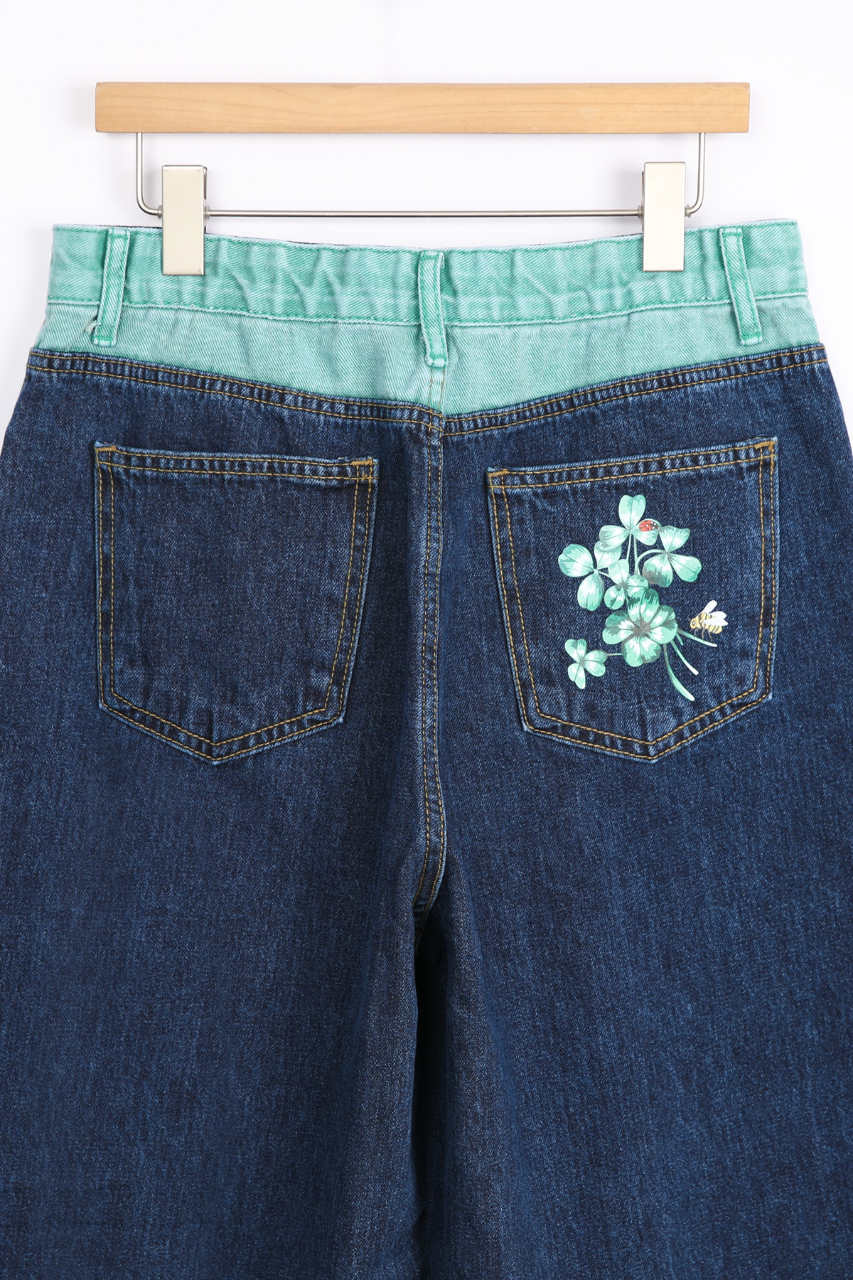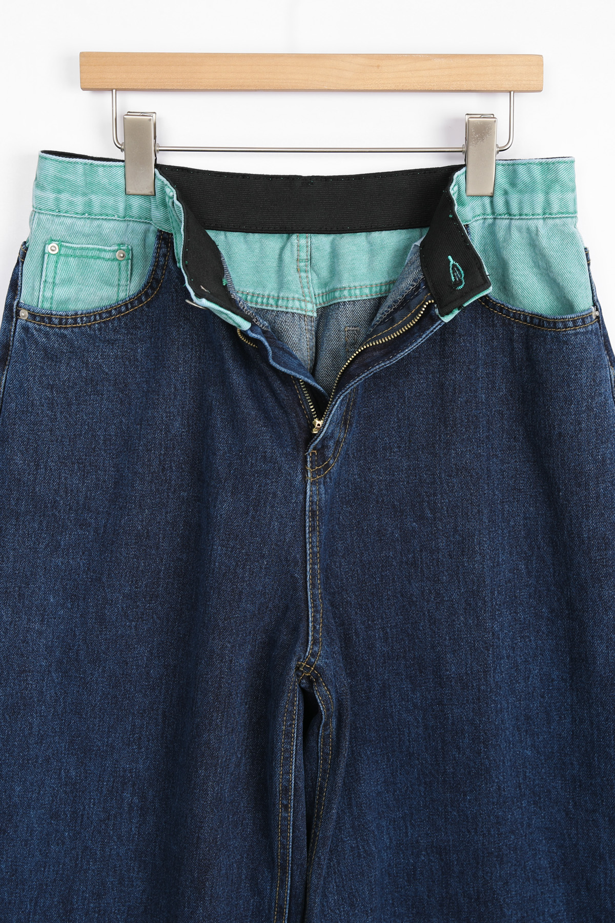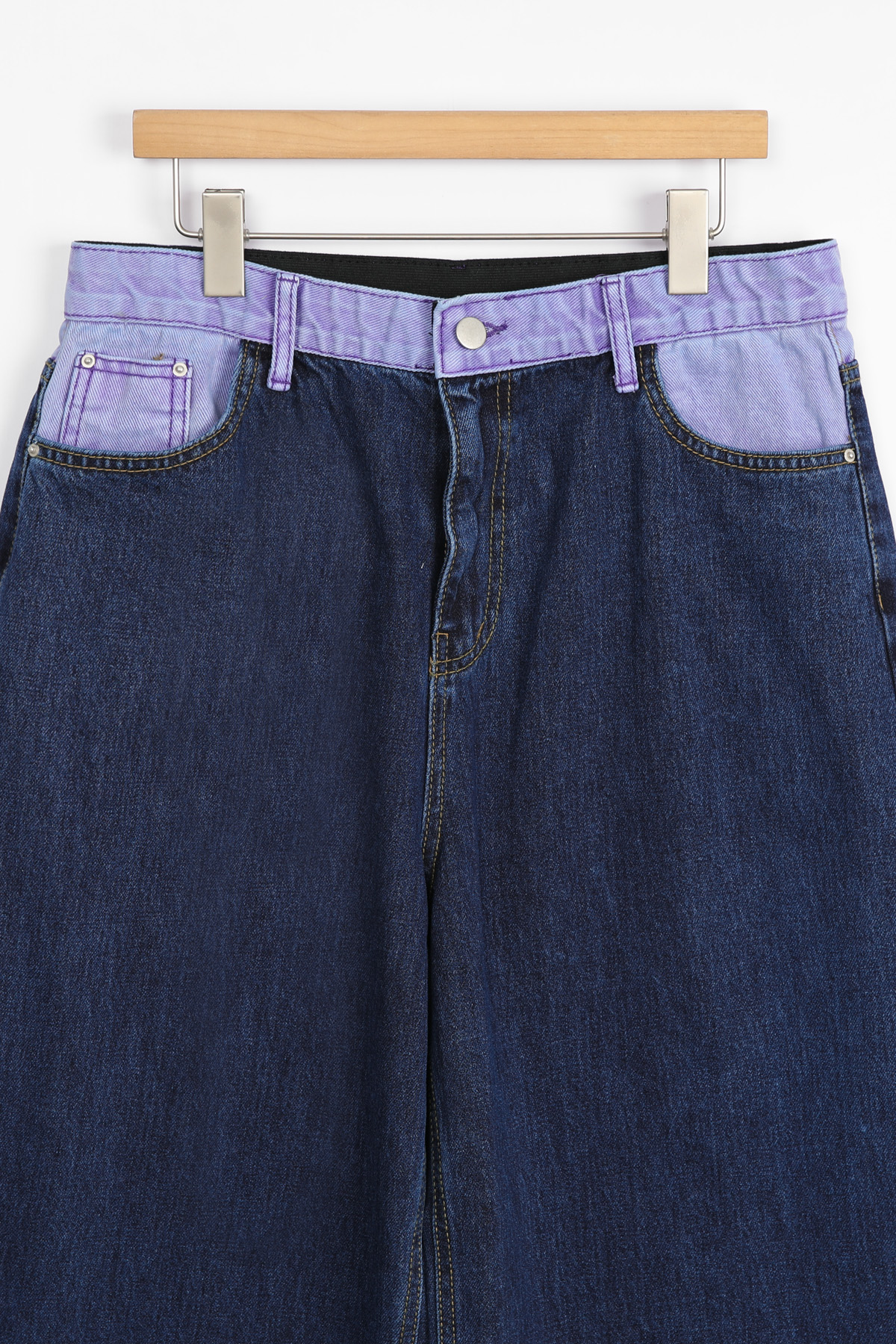 JEAN393 배색 허리 포인트 반배기 데님 팬츠