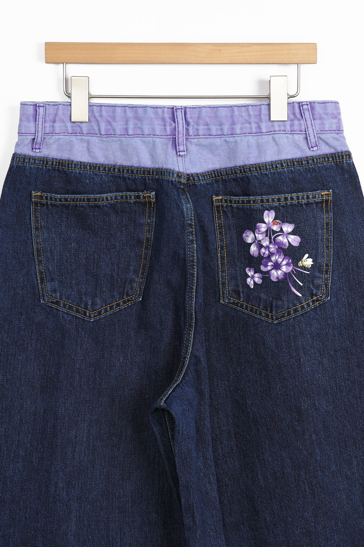 뒷모습까지 놓치지 않은 디테일 오른쪽 힙 포켓에는 과하지 않으면서도 전체적으로 절제된 디자인 위에 과하게 튀거나 눈에 걸릴까 걱정 전혀 하지 않으셔도 좋아요 :) 과하지 않게, 확실하게 남는 포인트 허릿단과 포켓 안감, 힙 라인까지 이어지는 자연스럽게 이어지며 그린 / 퍼플 두 가지 배색 구성으로 어떤 컬러를 선택하든 정면과 뒷면 모두에서 높게 느껴지는 디자인이에요. 부담 없이 완성되는 반배기 라인 허릿단에서 중힙까지는 몸선 따라 적당히 라인 잡고, 힙과 허벅지 라인은 여유 있게 풀어주고, 과한 배기핏은 아니면서도 세미 배기와 정통 배기의 중간 정도의 균형감으로 체형을 이해하고 설계된 여유감 165cm 하체 살집 66, 골반 넓은 66 기준 66 사이즈 선택. 밑단까지 깔끔하게 모아지며 정리되는 핏으로 떨어져요. 총길이는 발목선을 안정적으로 가리는 SS 데님진의 정석 기장.