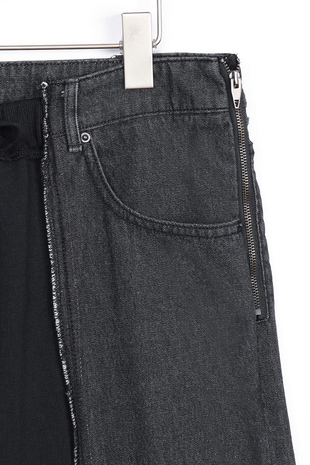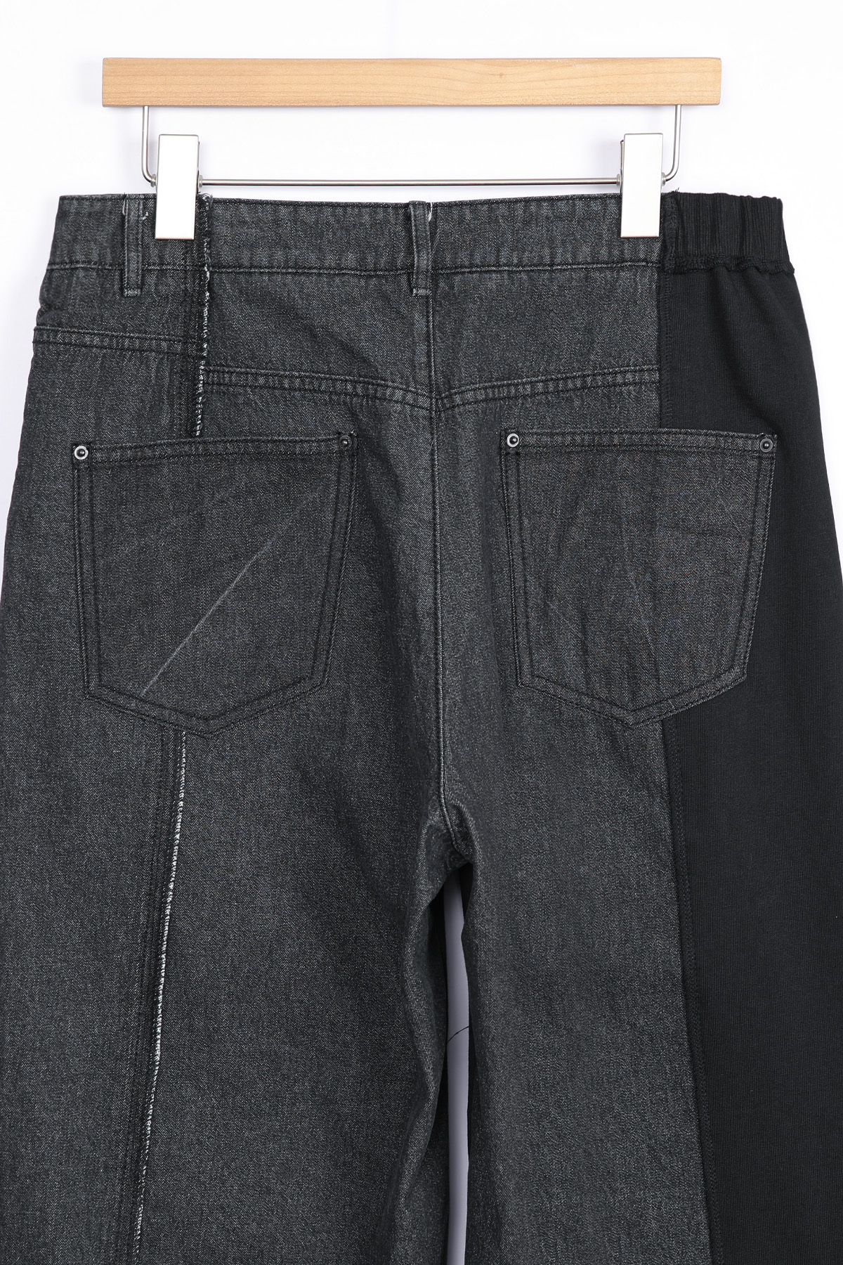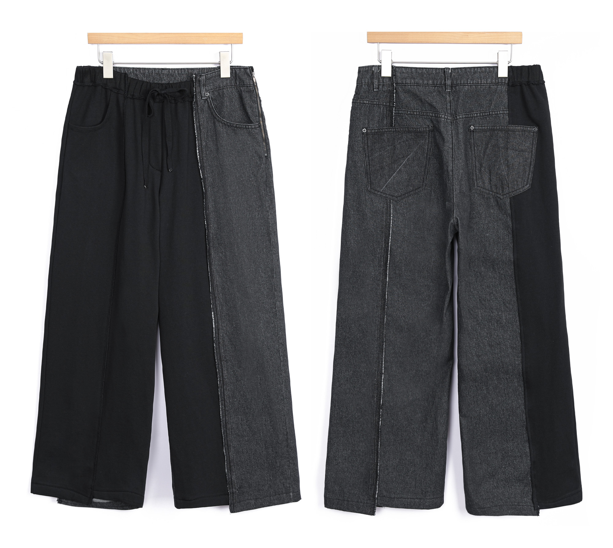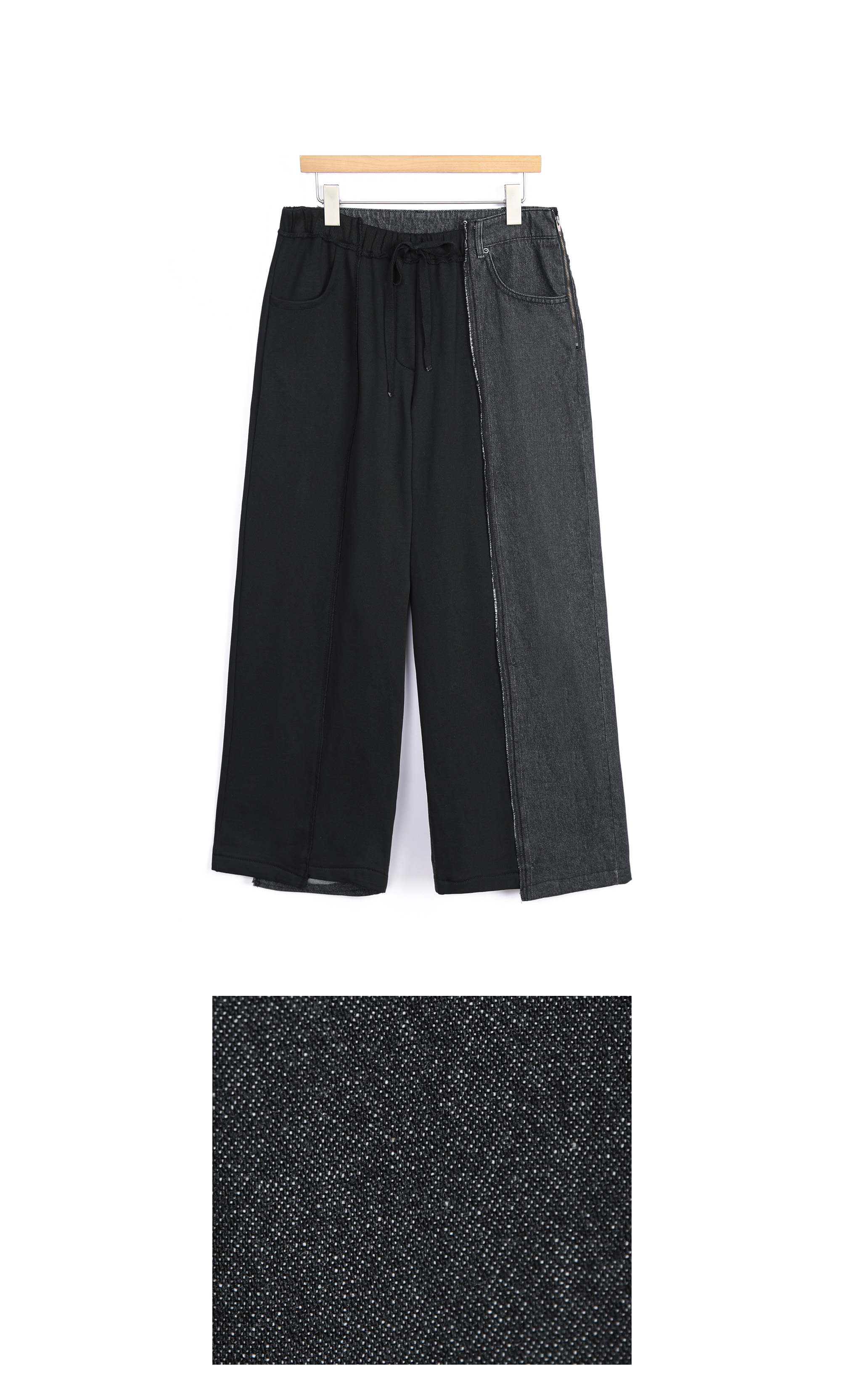JEAN394 하프 텍스쳐 블록 데님 와이드 팬츠
