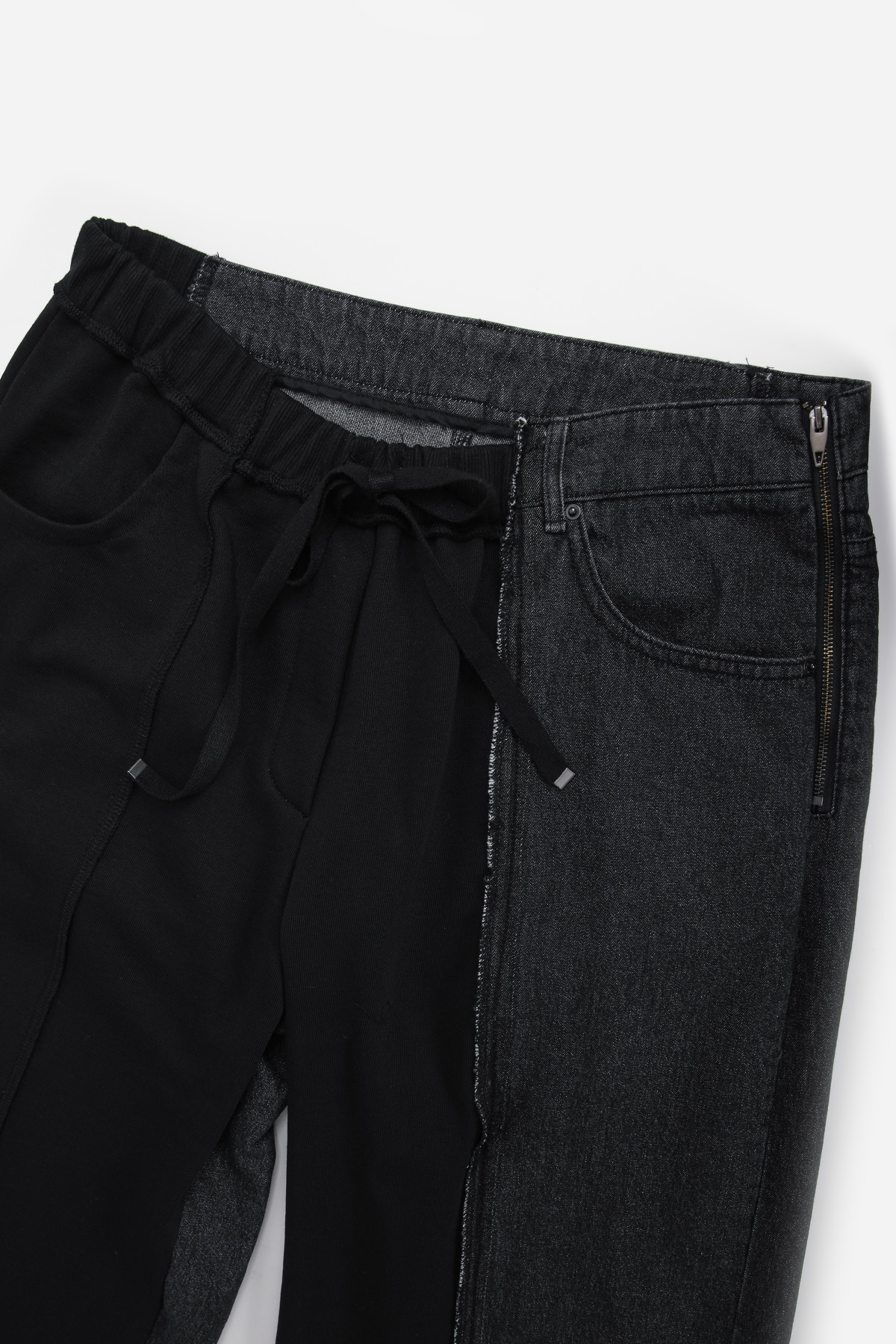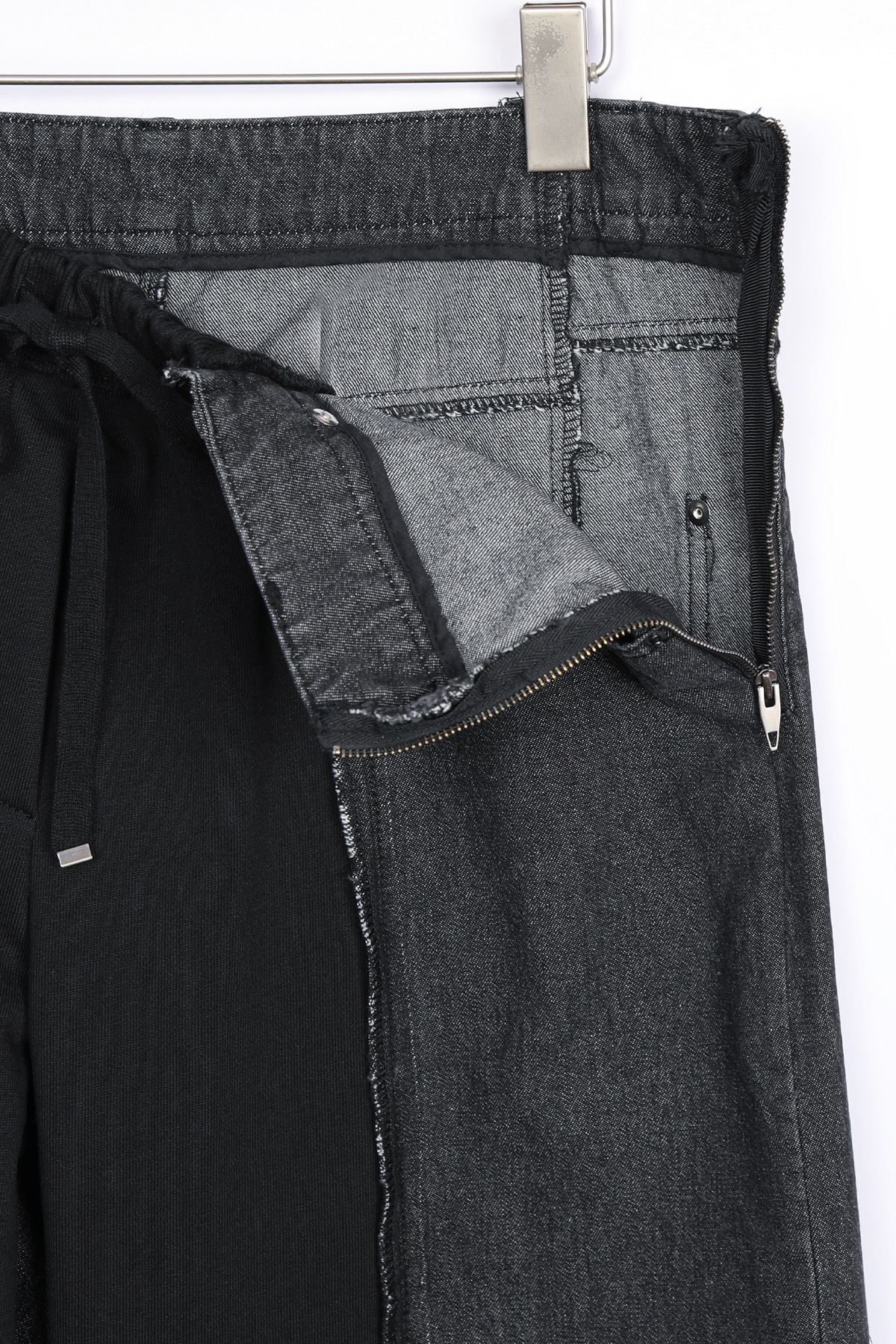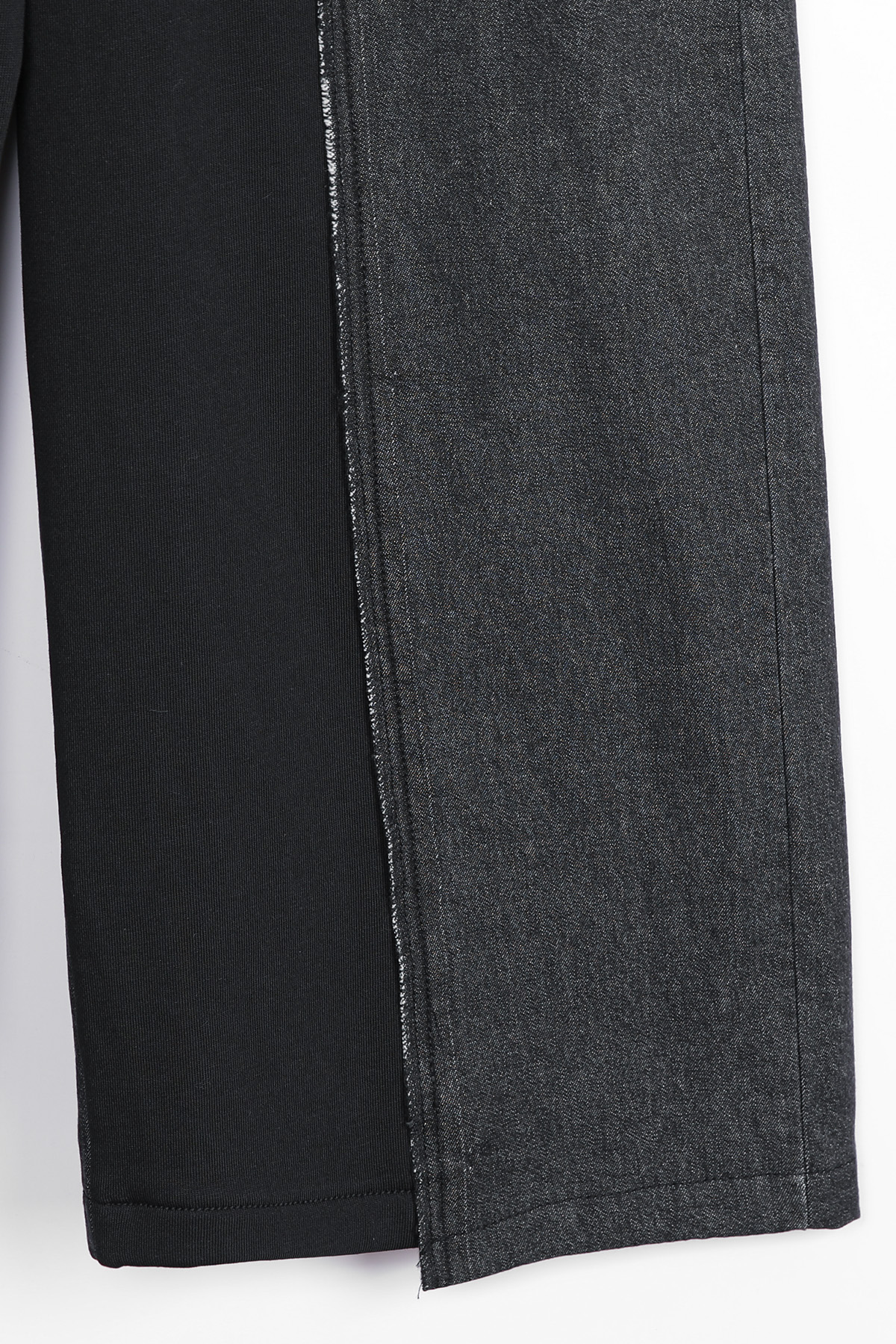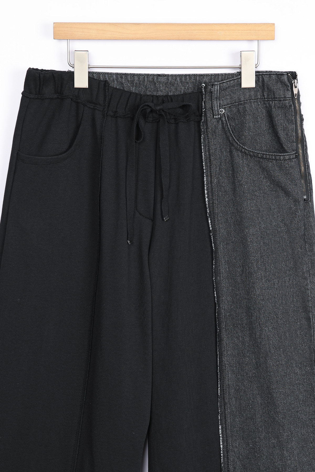 JEAN394 하프 텍스쳐 블록 데님 와이드 팬츠