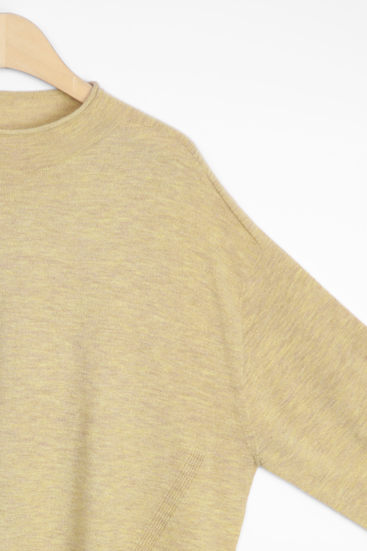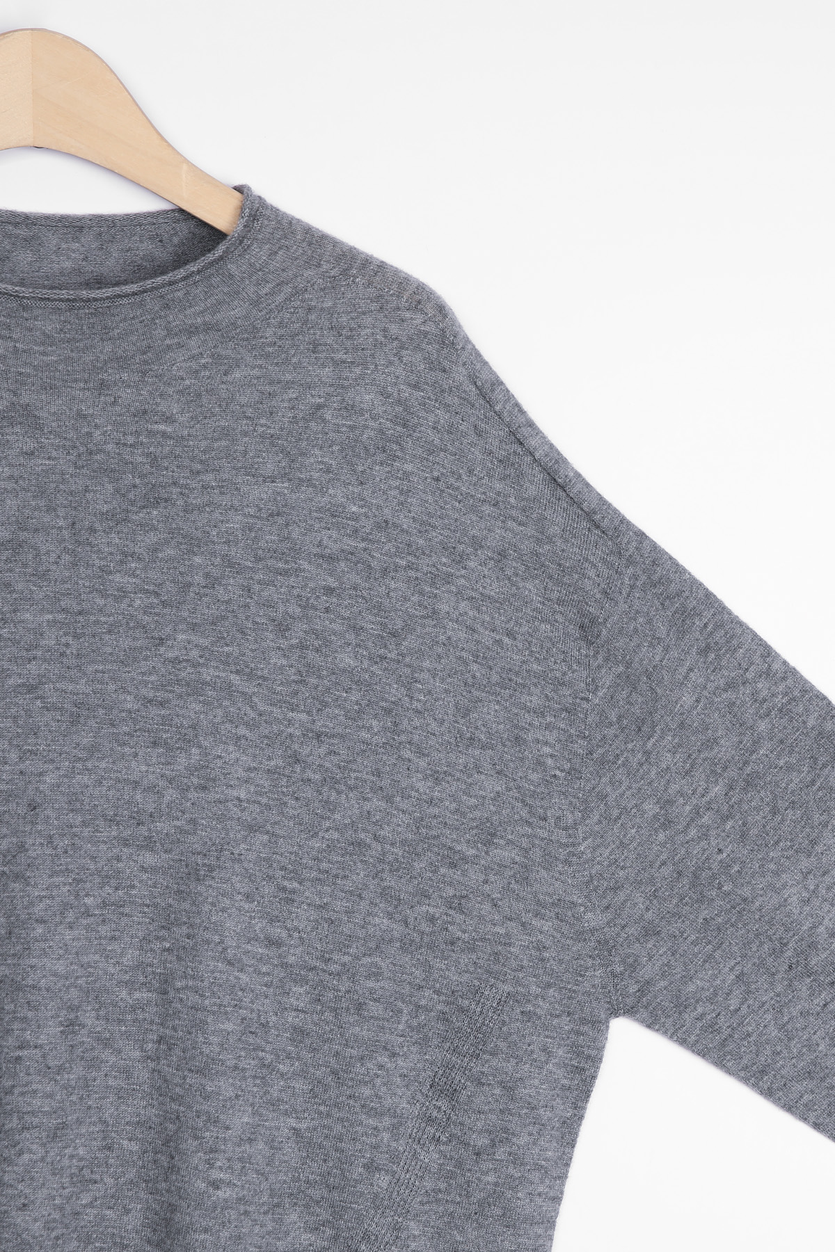 이음 없이 이어지는 자연스러운 실루엣 전체를 홀가먼트 방식으로 제작해 어깨와 옆선에 겉으로는 드롭된 어깨선이 보이지만 입었을 때 훨씬 부드럽게 흐르며 몸을 “나누는” 느낌이 아니라 그리고 바로 이 차이가 목선에서 시작되는 단정함 목을 부드럽게 감싸는 모크넥 구조에 답답하게 조이지 않으면서도 전체 인상을 훨씬 차분하고 과하게 힘주지 않았는데 자연스럽게 드는 이유예요. 가려주면서 정리해주는 7부 슬리브 팔뚝부터 소맷단까지 7부 기장으로 안정적으로 커버하면서도 7부 이하부터 손목선까지 드러나 소맷단은 약 6cm 골지 시보리 마감이며, 소맷단 안쪽에는 약 4cm 슬릿을 더해 움직임까지 편안하게 설계된 구조로써, 단순히 가리는 게 아니라 슬리브라고 봐야 해요 :) 지금부터 가장 많이 입게 되는 두께 차가운 여름 니트로 넘어가기 전, 가장 손이 자주 가는 봄,가을 시즌에는 단독 착용 가능하며 자연스럽게 연결해서 입을 수 있어요 한마디로, “얇은데 편하고, 따뜻한데 답답하지 않은” 비율까지 고려된 밑단 설계 소맷단에 이어 밑단 역시 약 8cm의 넓은 골지 시보리로 마감해 상체 비율이 더 짧고 안정적으로 보이도록 설계했어요. 가슴부터 밑단까지는 밑단에서 가볍게 모아지는 구조라 전체 실루엣이 흐트러지지 않고 정리되고요, 힙과 밑배 사이를 안정적으로 덮는 기장감으로 결국 오래 입게 되는 기준 활동적인 하루를 위한 안락함, 그리고 흐트러짐 없는 실루엣. 이 니트는 그 어느 쪽도 소홀히 다루지 않았어요. 편안함과 품격 사이의 완벽한 접점이랄까요? 입었을 때는 가볍고 편안한데 그야말로 완벽한 상태. 단순한 기본 템으로는 채워지지 않던 스타일의 깊이가 있죠. 홀가먼트의 섬세함과 파인울의 따스함이 만난 이 니트와 함께라면 그 스타일의 깊이를 제대로 채우며, 미팅부터 여유로운 오후의 시간까지 가장 이상적인 메이트가 되어드릴 거예요. :) F: 총길이 60.5 어깨 50 가슴품 56 밑단 49 팔뚝 22 암홀 17 소매길이 33 소맷단 11.5 모두 단면 사이즈 기준입니다 기준 위치에 따라 1-3CM 이상 오차 있을 수 있습니다Wholegarment