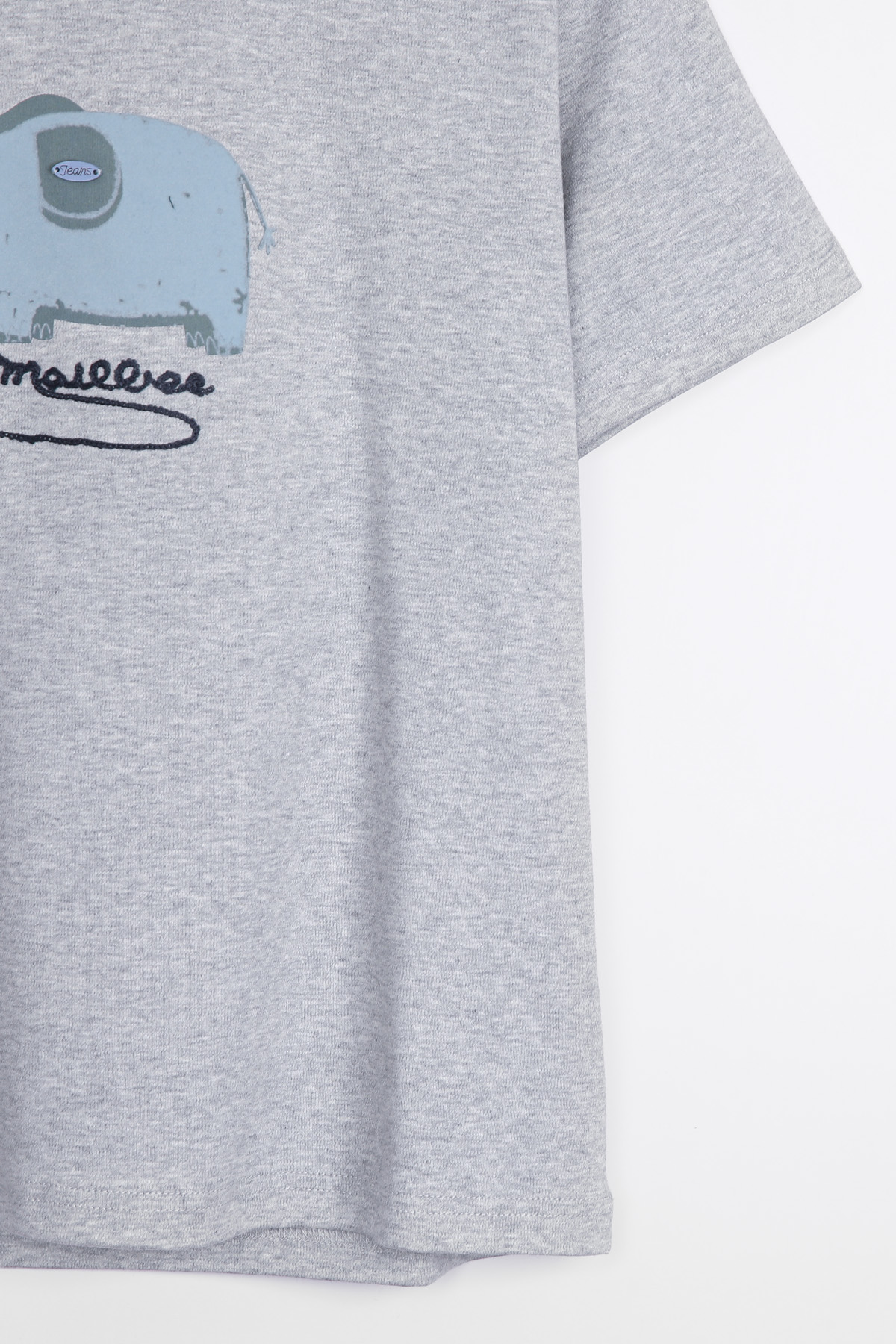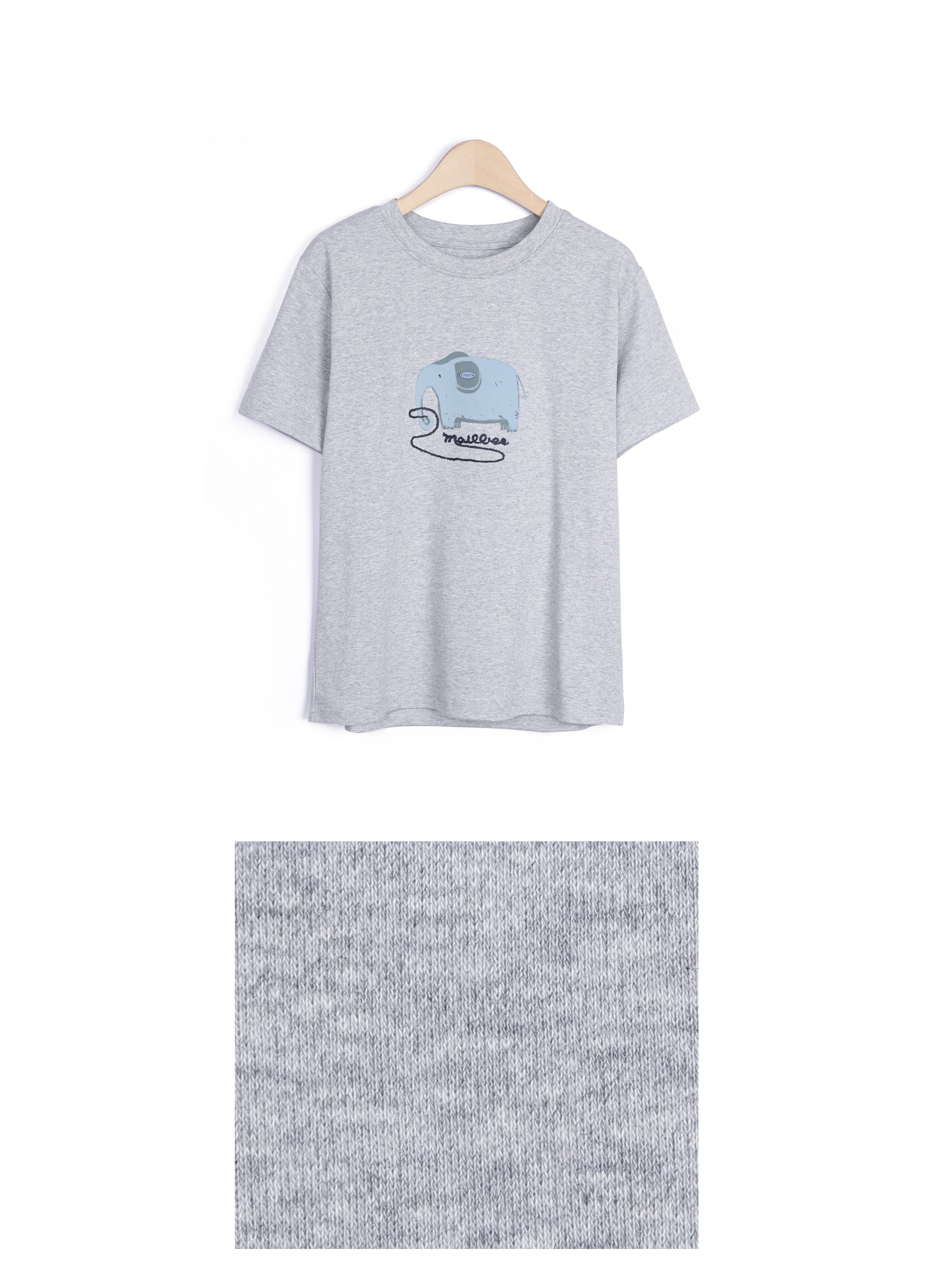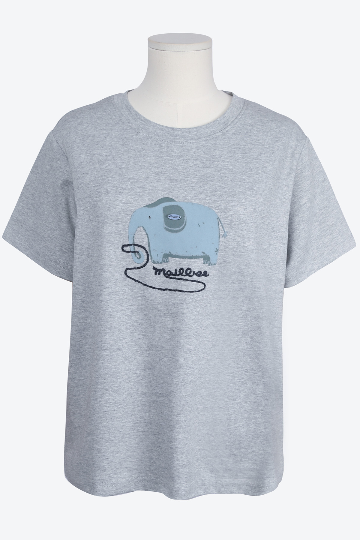TS904 엘리펀트 자수 멜란지 스판 티셔츠