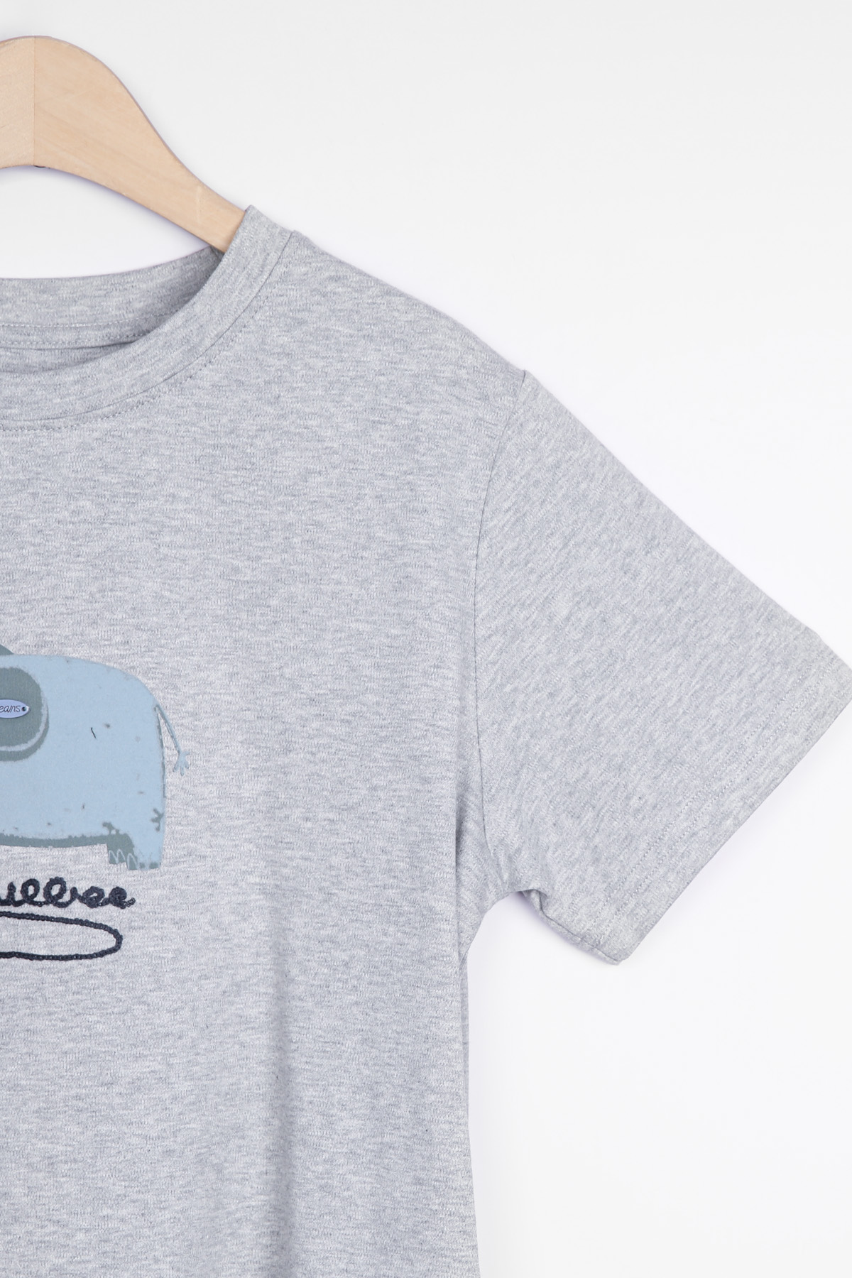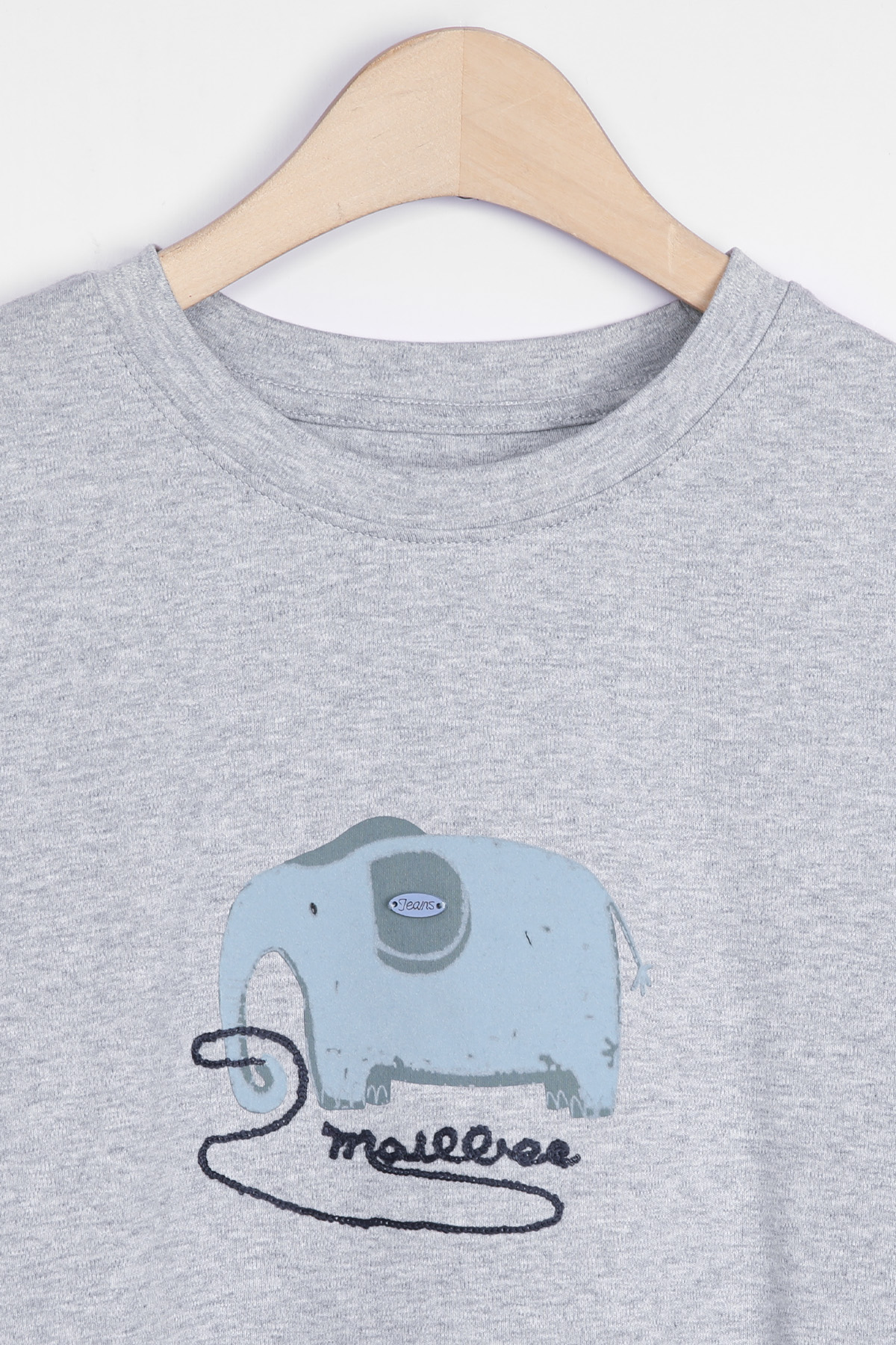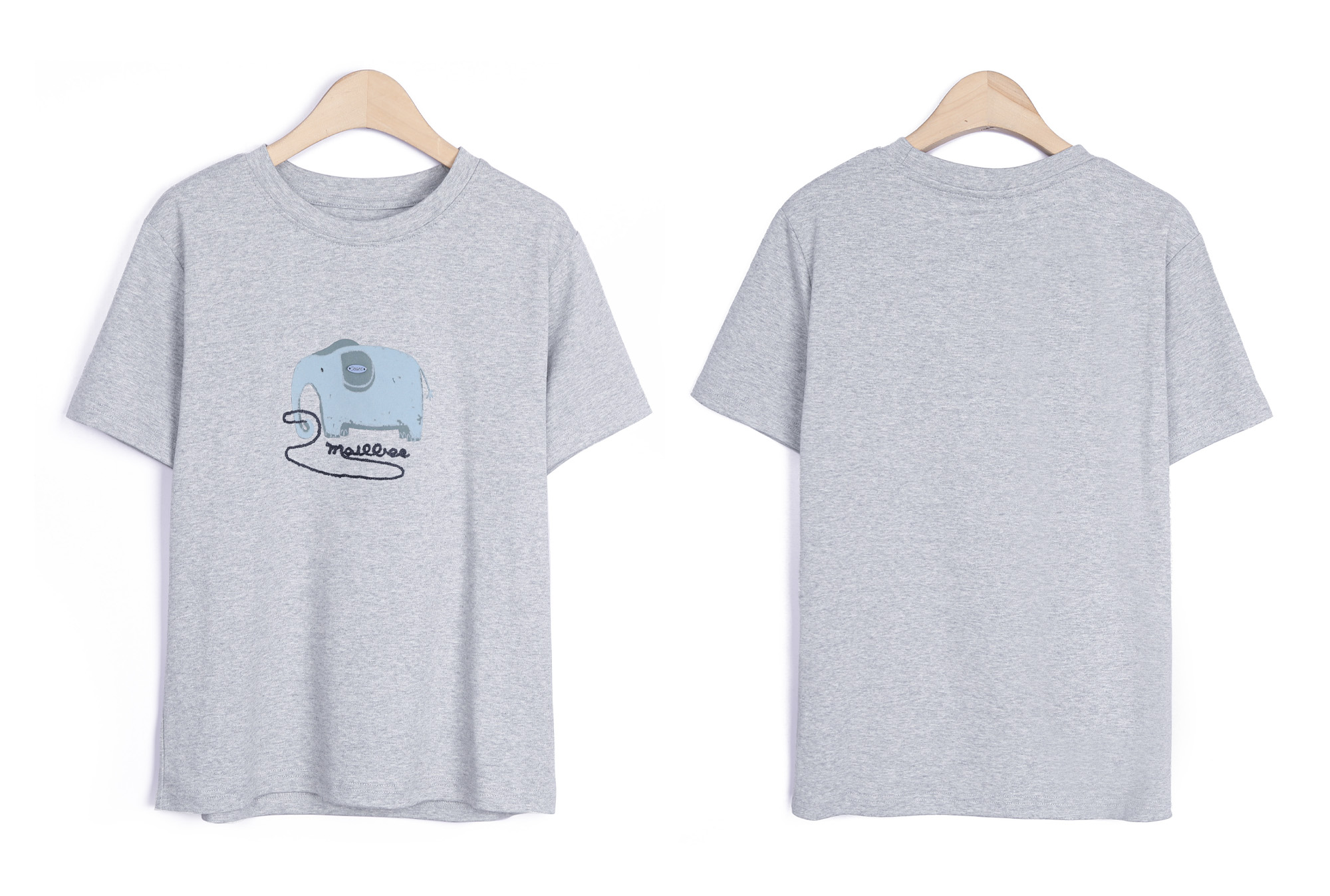TS904 엘리펀트 자수 멜란지 스판 티셔츠