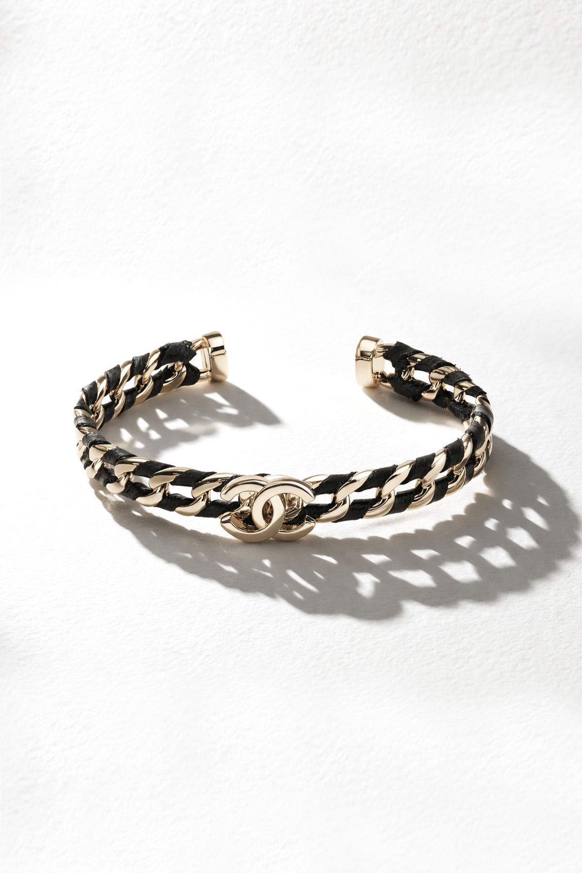 블랙 인조가죽이 교차되며 엮인 구조.