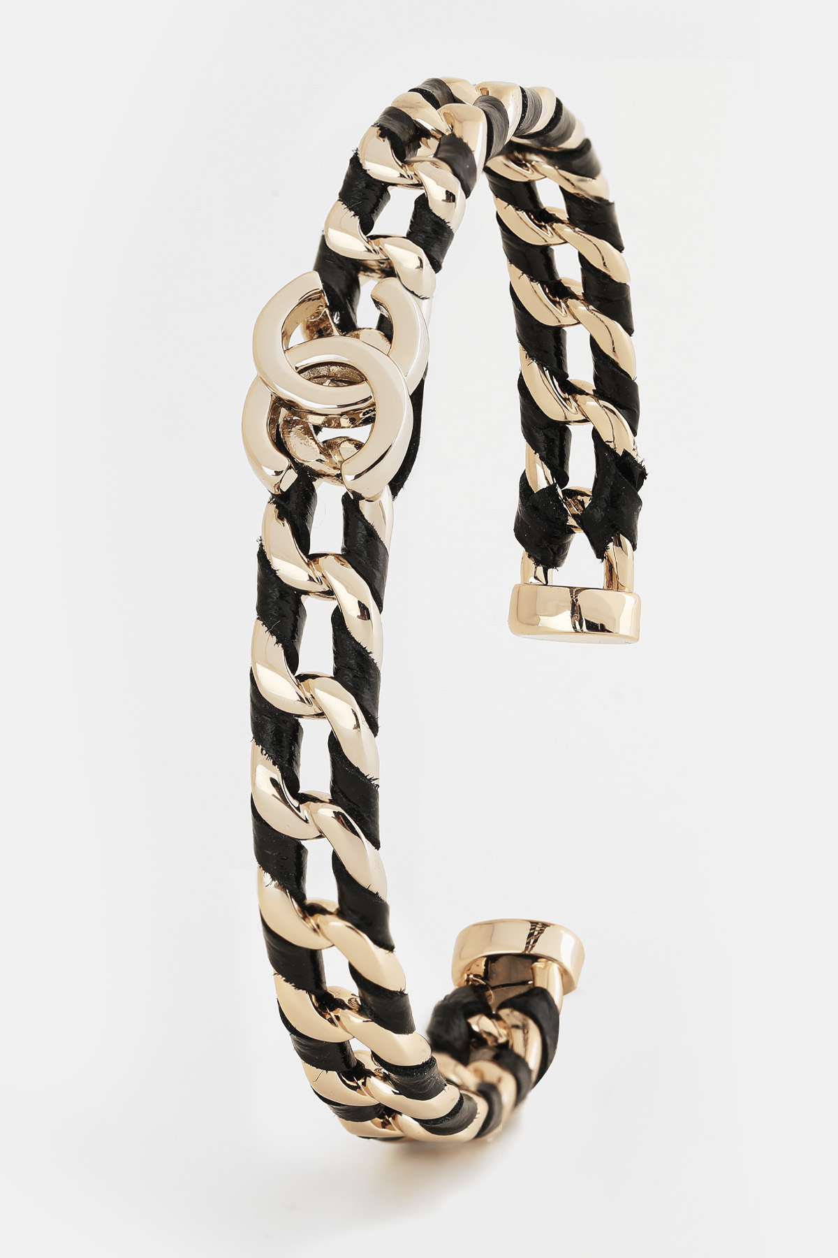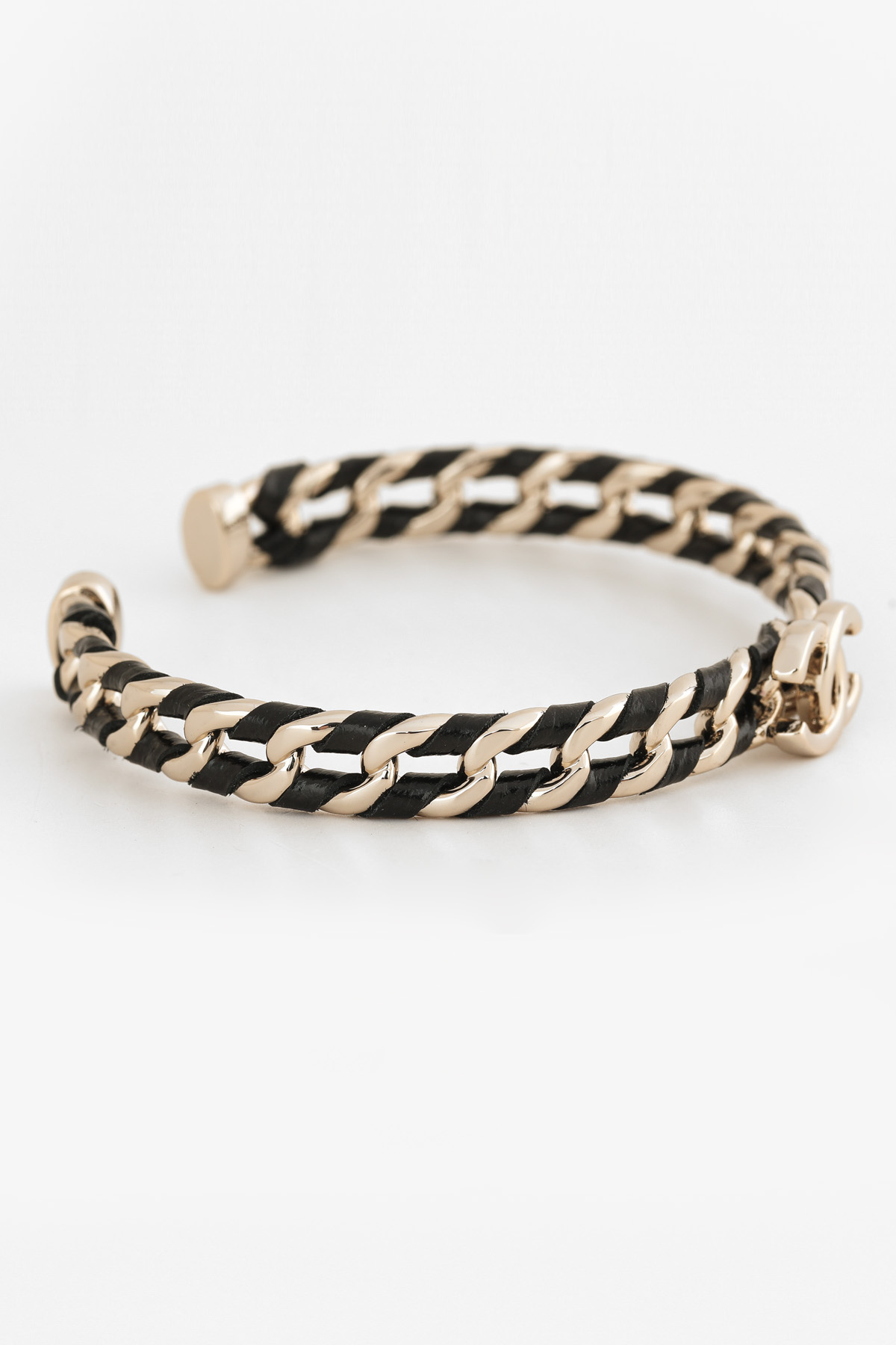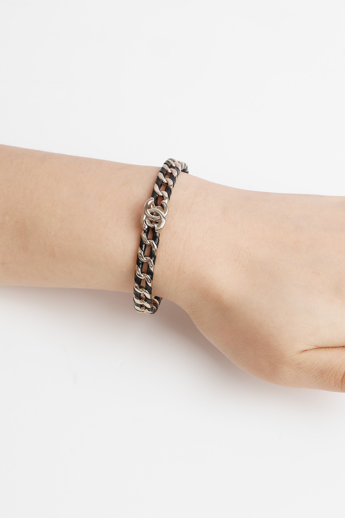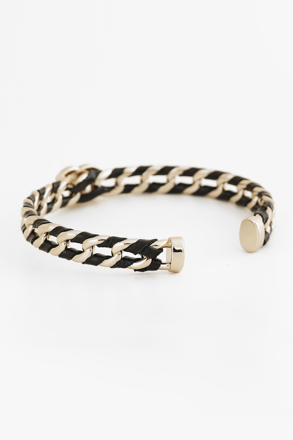 ACC326 투톤 레더 체인 텍스쳐 블록 뱅글 팔찌