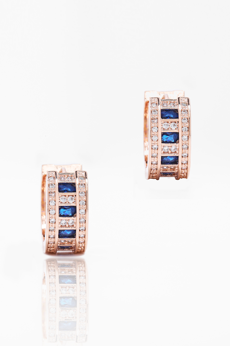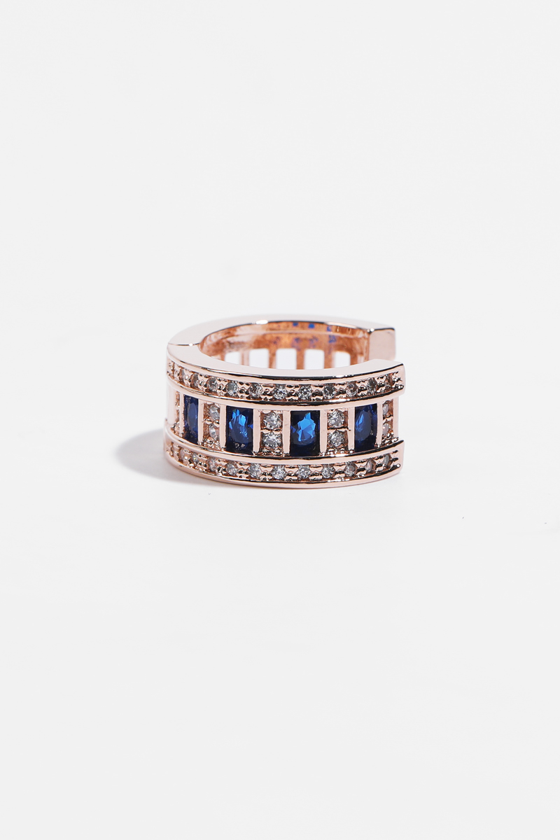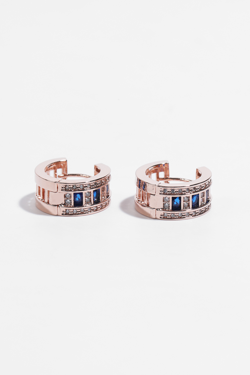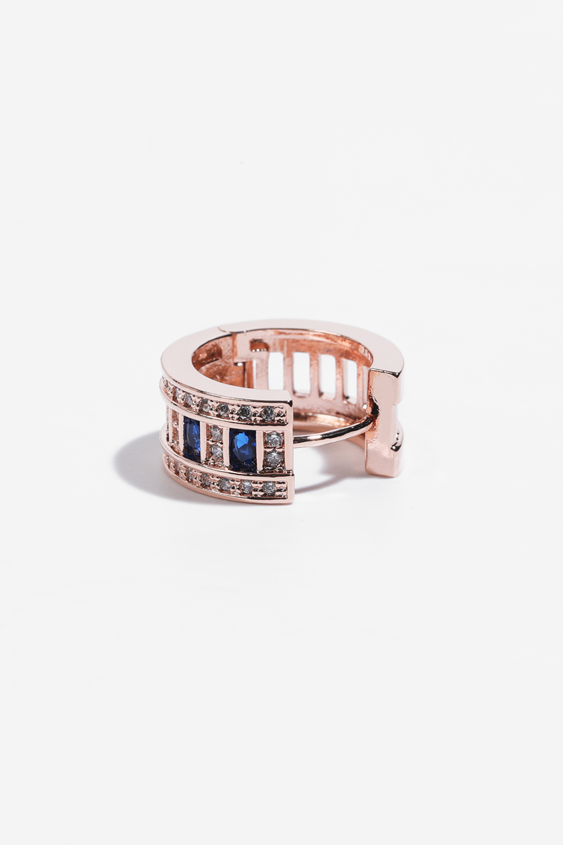 로즈골드톤 큐빅 C형 침 이어링으로
