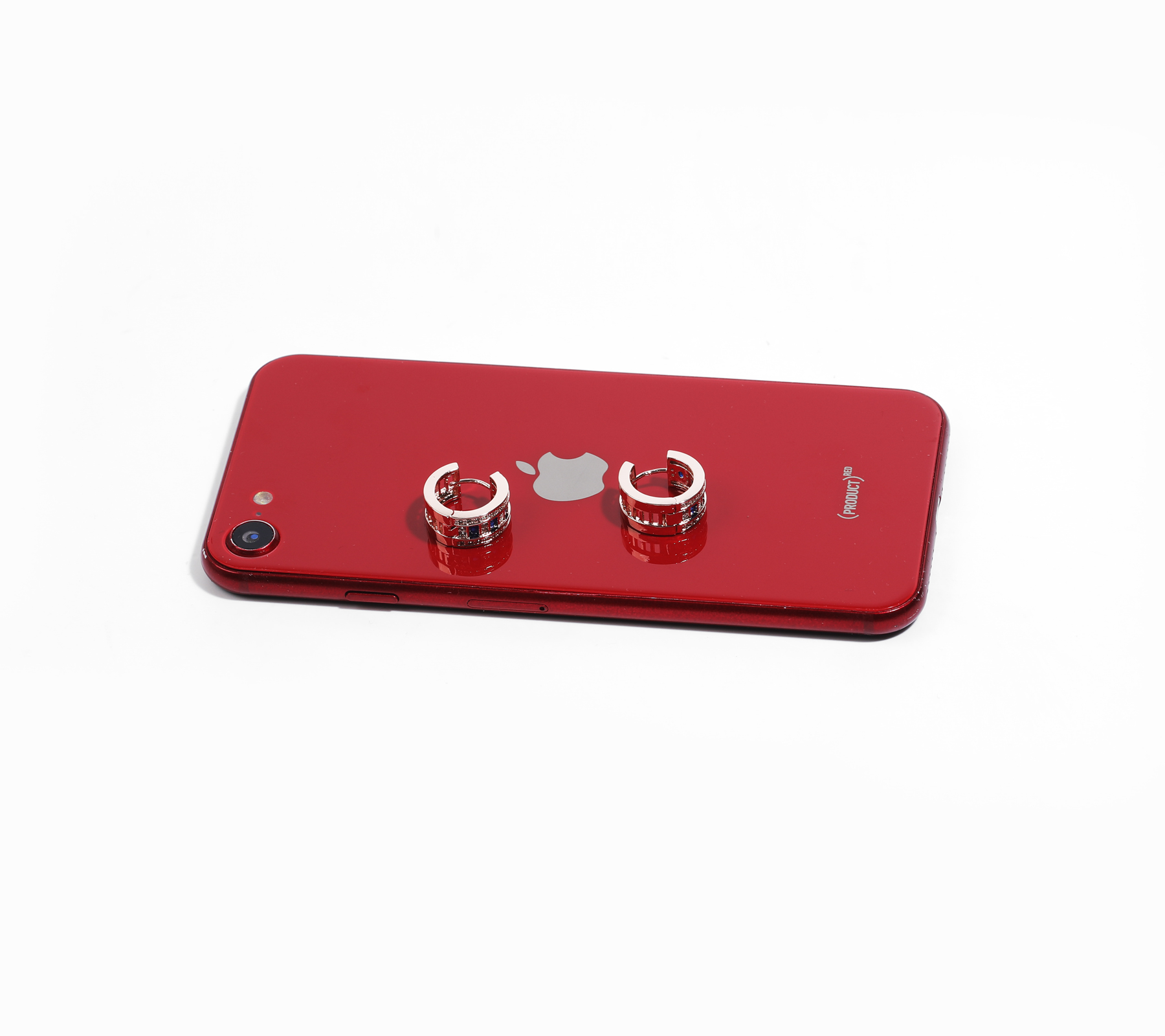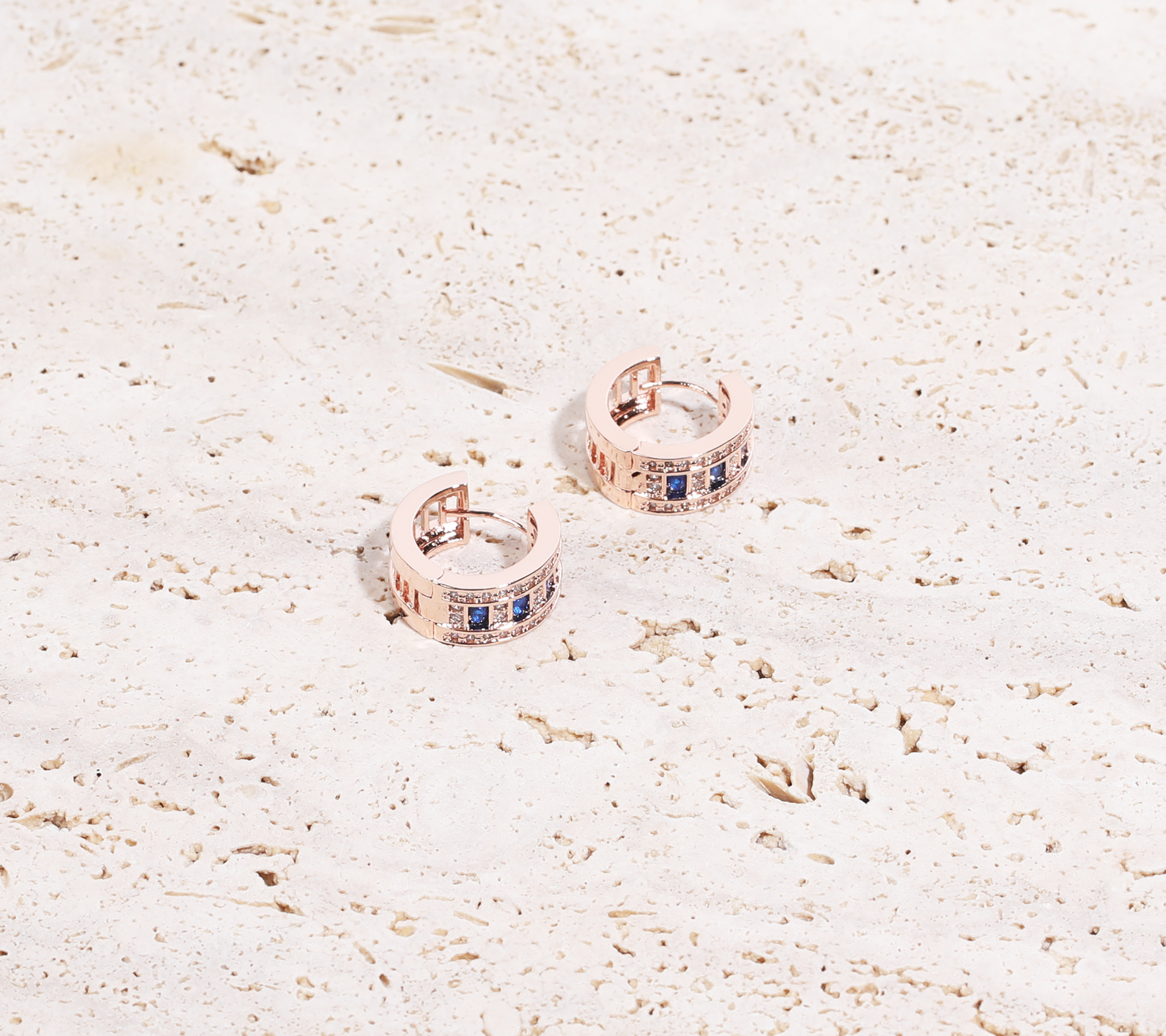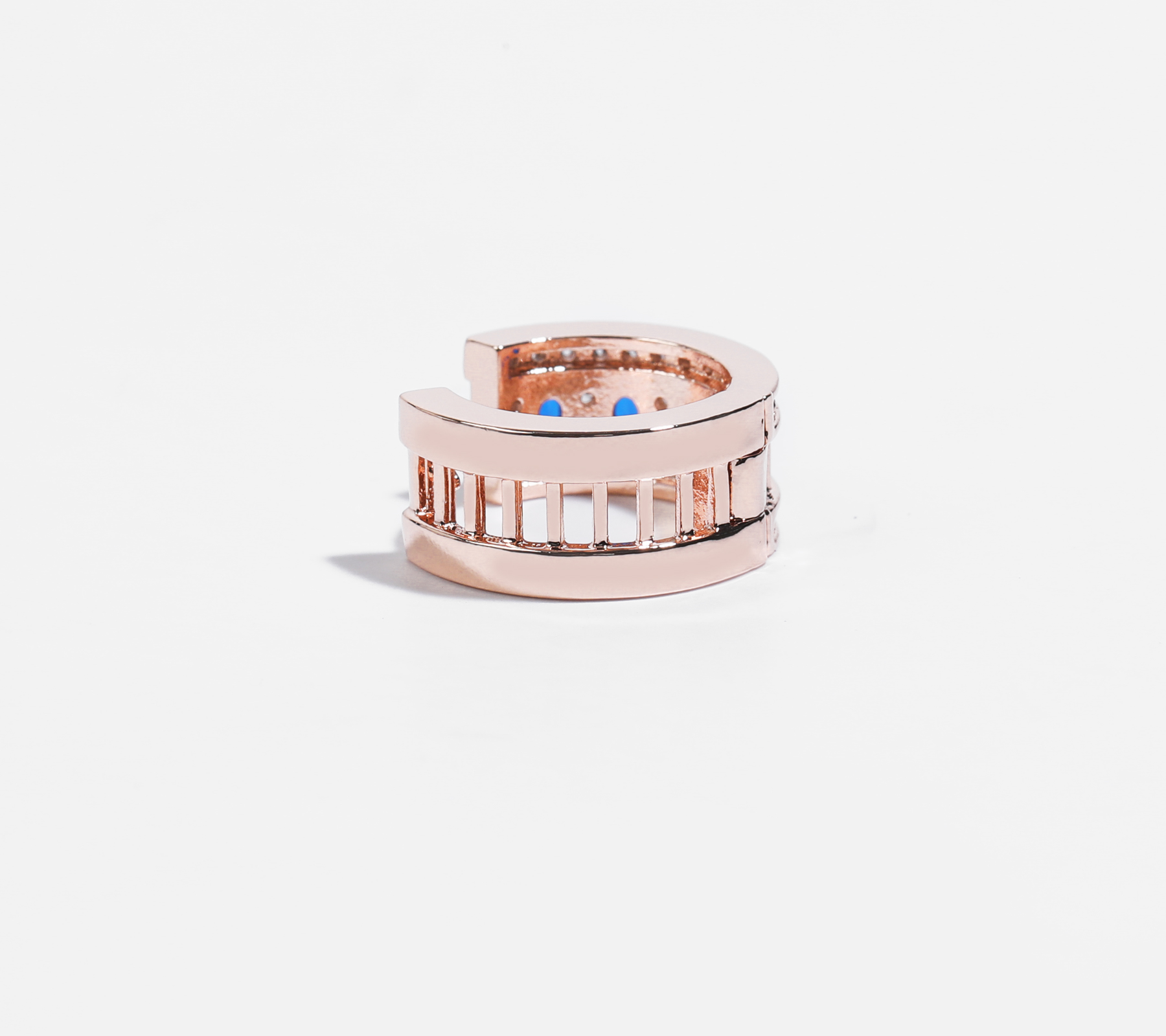 로즈골드톤 큐빅 C형 침 이어링으로
