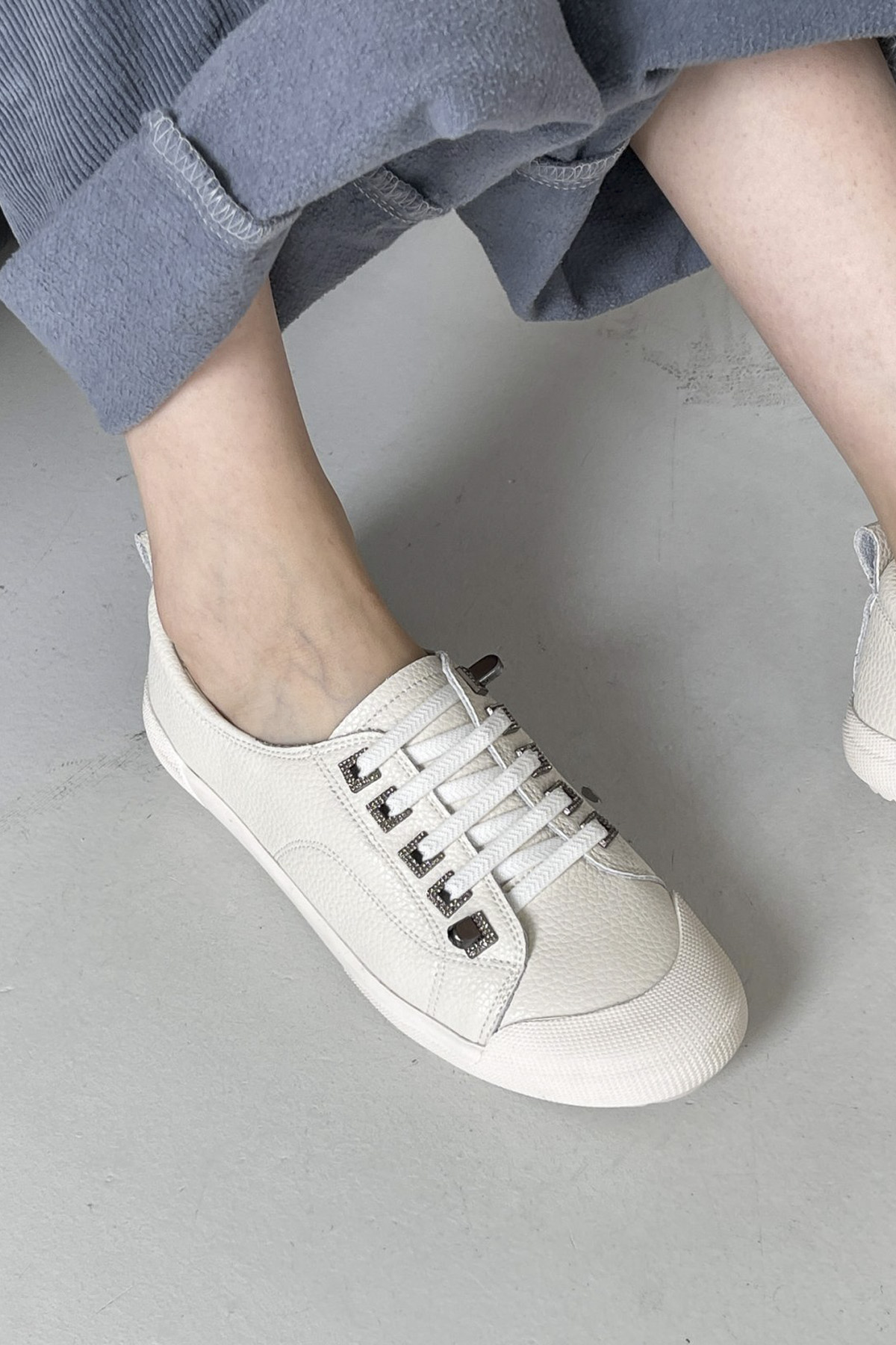 발볼 넓으시거나 발등에 살이 많으시더라도밴드 끈으로 발등 면 약간 늘려 착용 가능하시며동시에 발 퍼져보이지 않게끔옆고무로 사알짝 잡아주니 날씬한 스니커즈 신은 듯한 효과 확실하다 느끼실 거예요