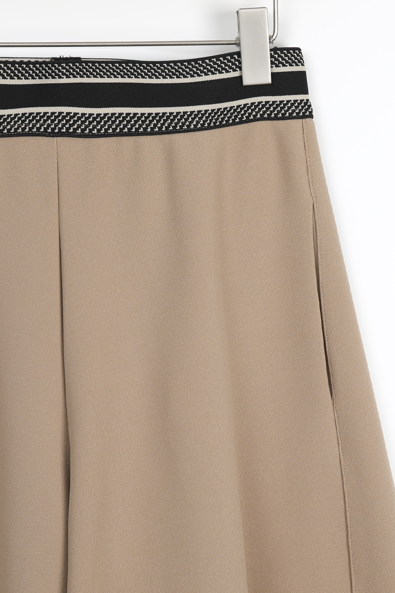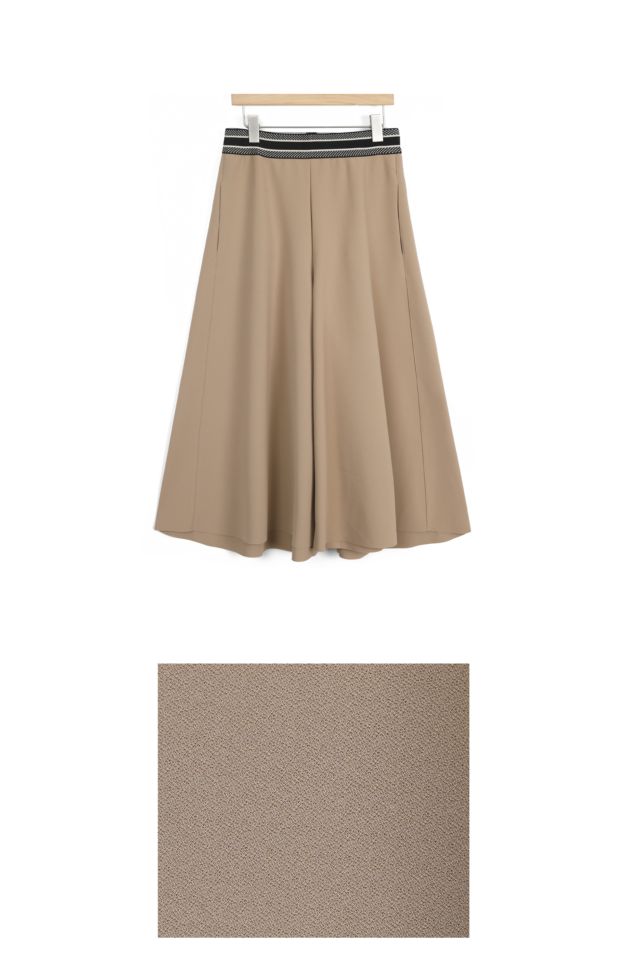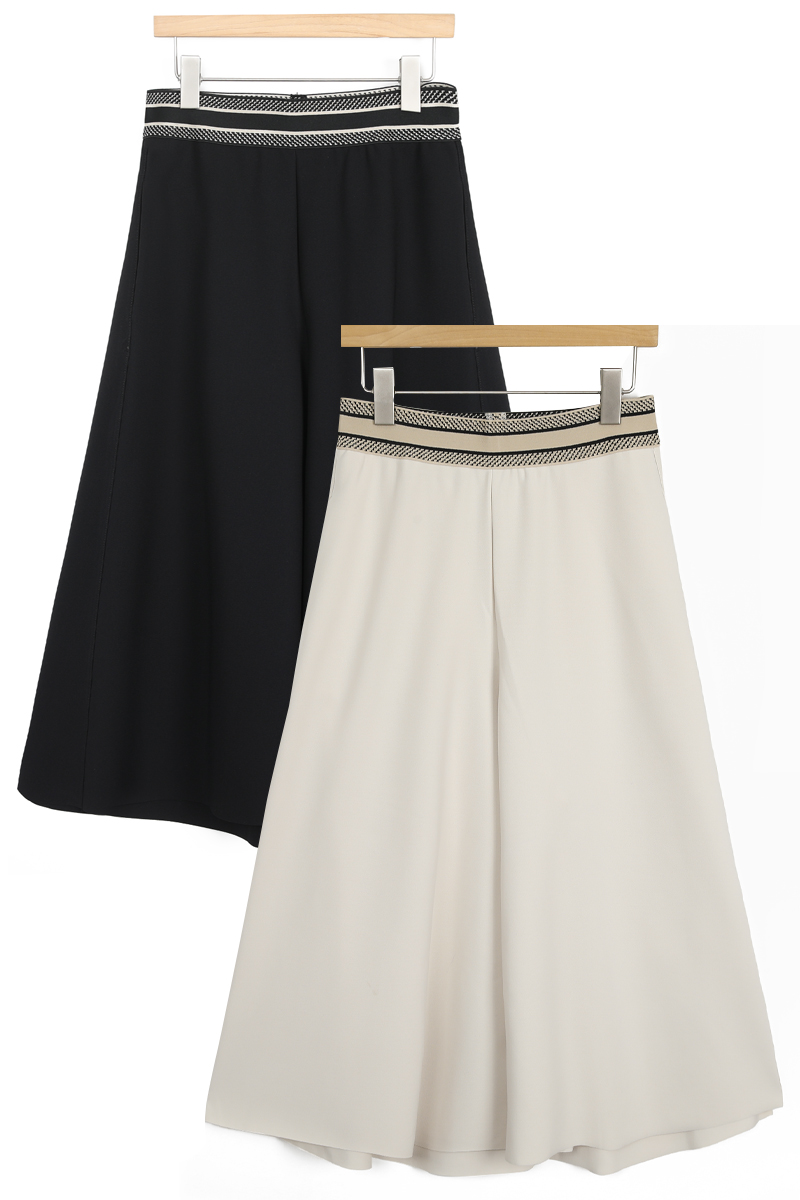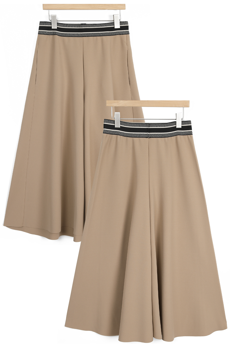 허리 밴딩선만 알맞게 피트되고 이하 밑단까지 플레어 A라인으로 연출되는 치마바지 핏이며총길이 뒷면 알다리 안정적으로 가리고앞면 정강이 중간 기장 가려요