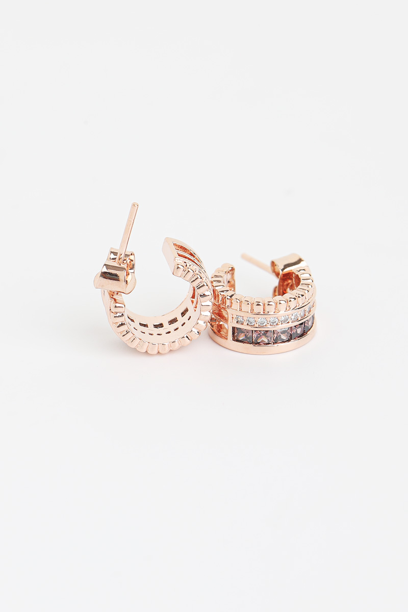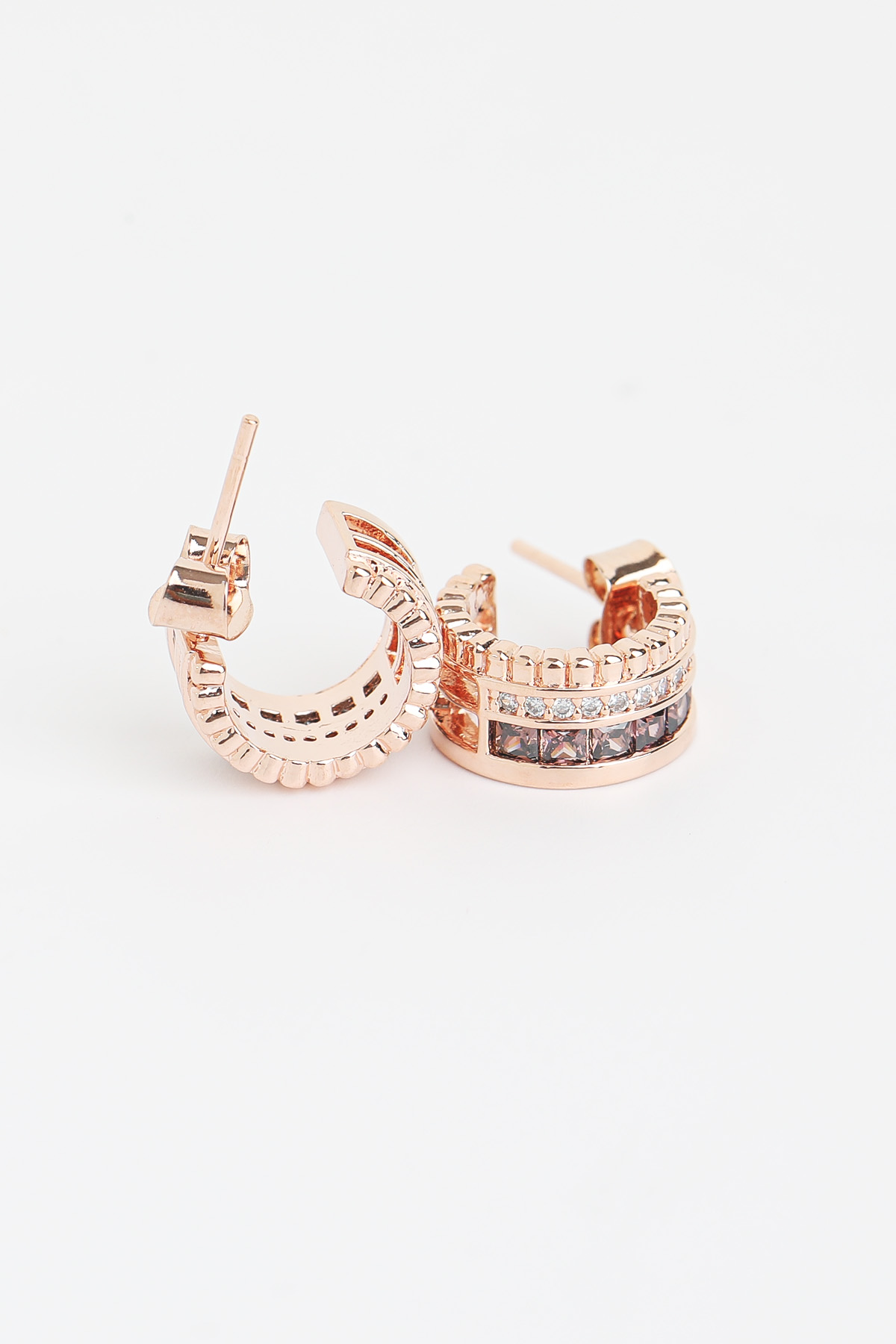 -고급스러운 광택감의 로즈골드 바디에블링블링한 미니 사이즈 지르콘 큐빅 장식과꼬냑 와인 컬러 비즈 트리밍의 조화로더욱 깊어지는 가을, 눈부시게 아름다운 콰트로 후프 이어링으로품격있는 스타일링을 완성해 보세요