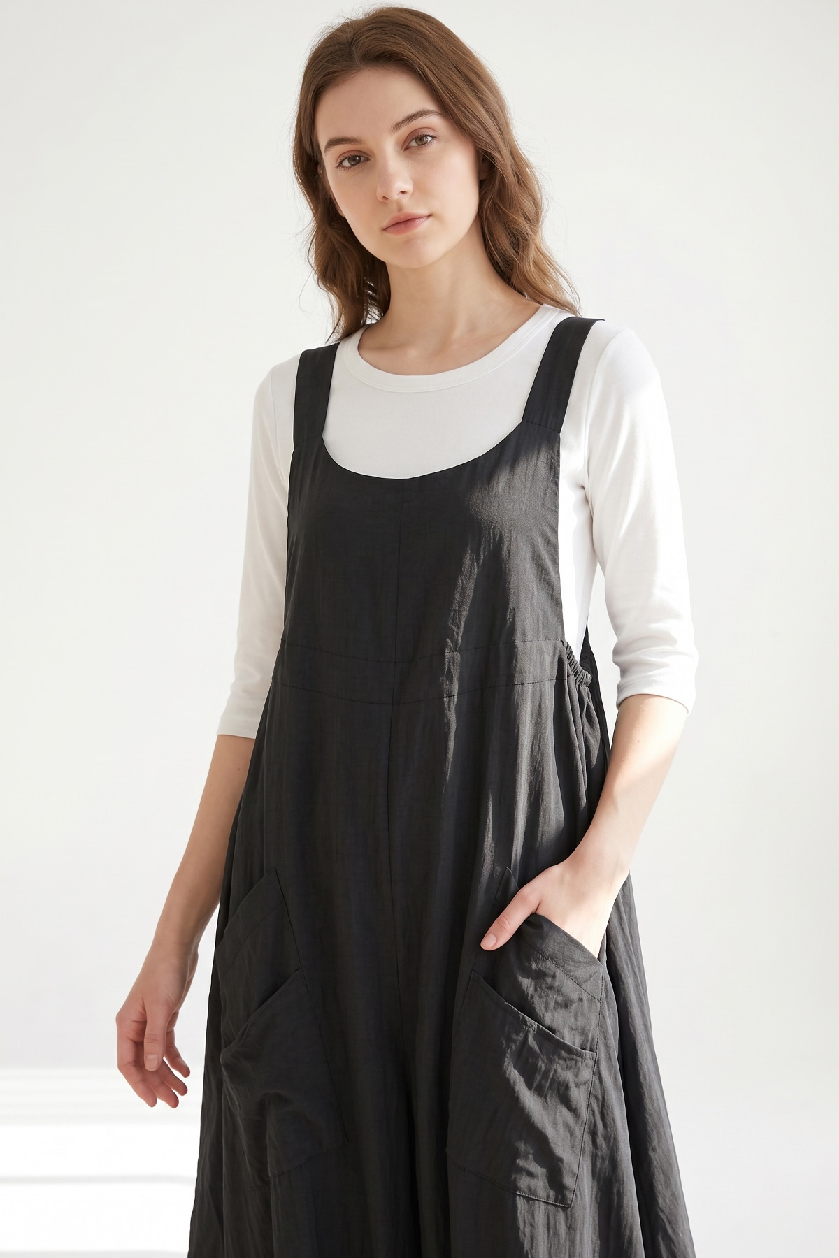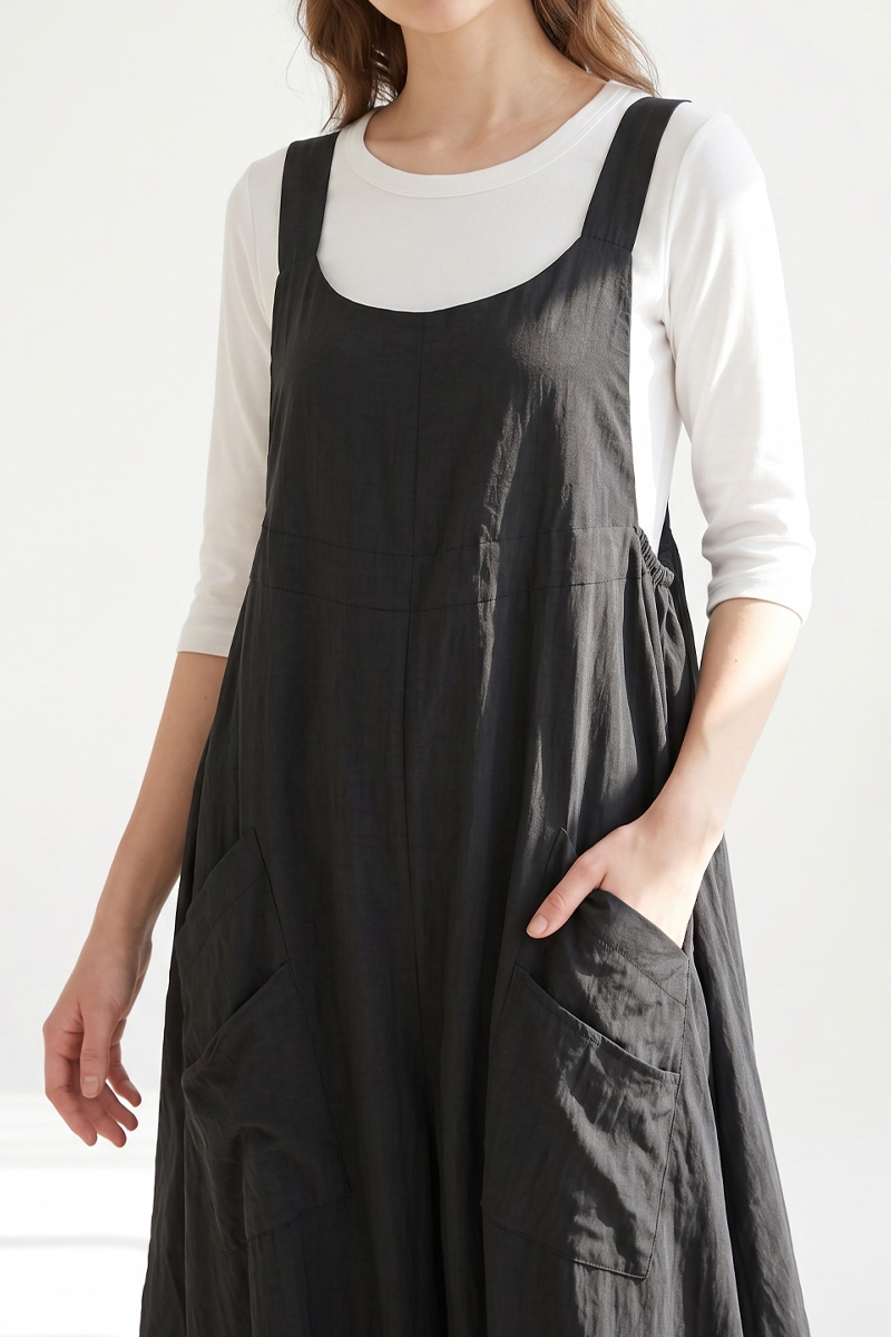사이드 코쿤형 루즈핏 점프수트 겸 원피스라