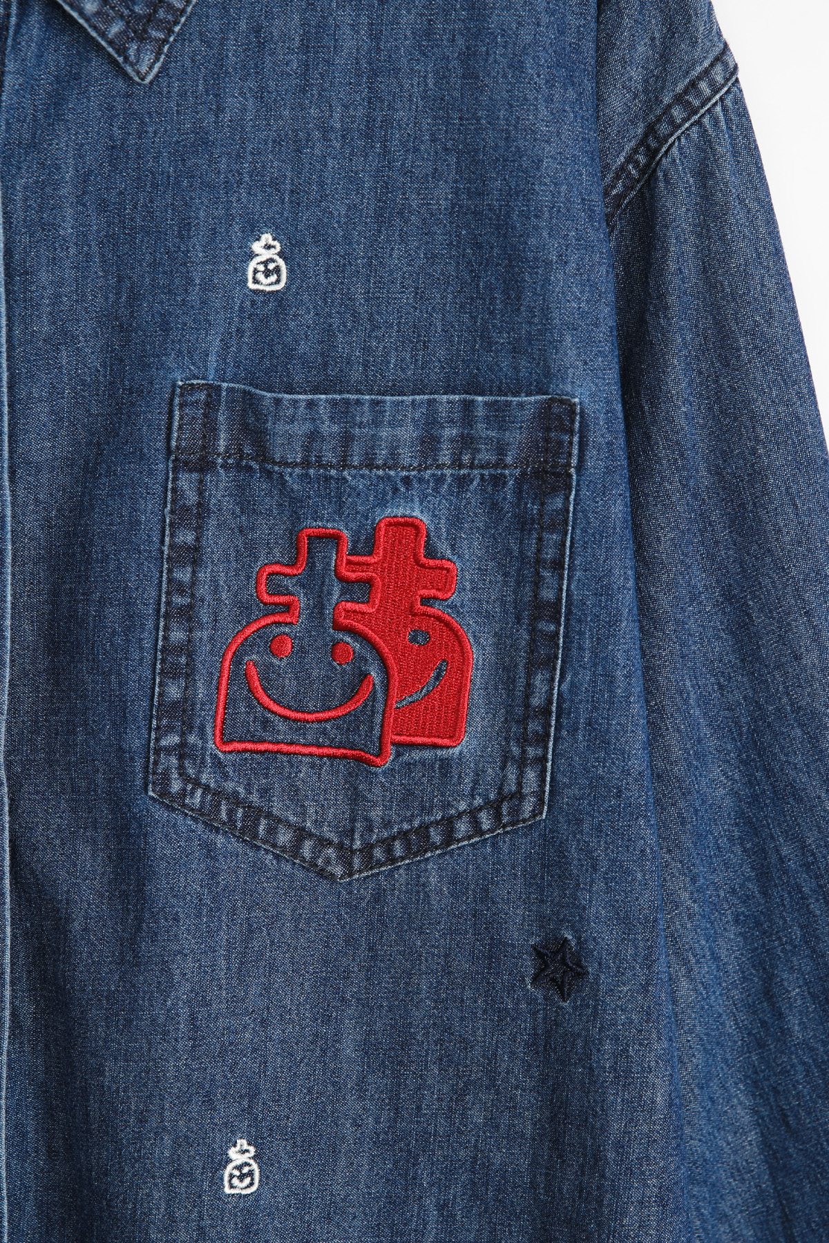 왼쪽 가슴의 시그니처 스마일 패치는