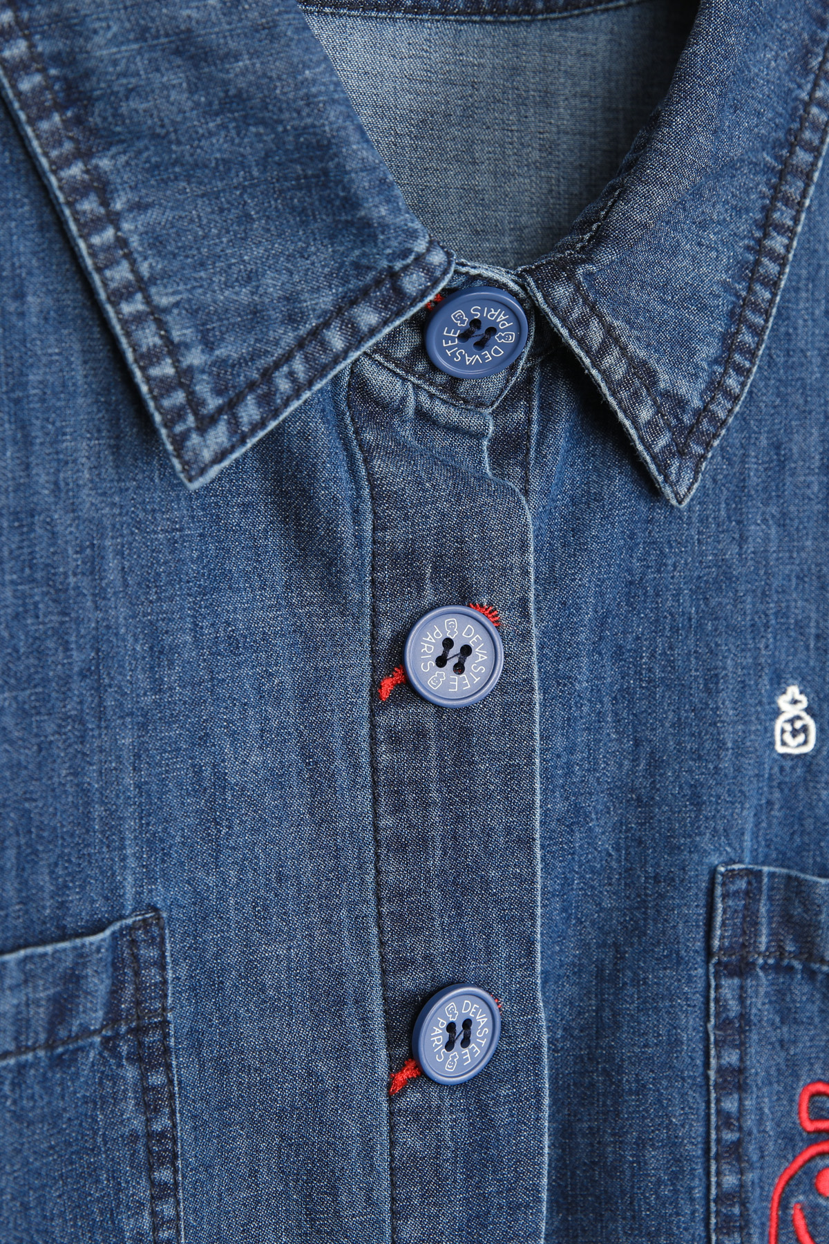 버튼홀의 레드 스티치 디테일은