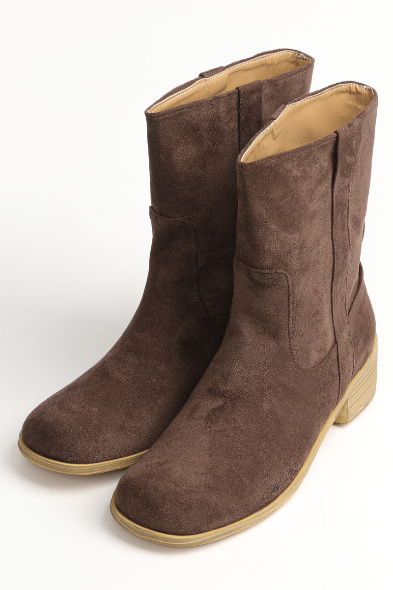 딱 가죽 봉제선만으로 단을 나눈 미들 부츠라