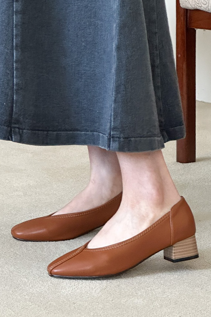 천연 가죽 못지 않게 소프트하게 제작한PU 로우 힐 펌프스고요사선 둥근 절개 라인과심플한 톤온톤 스티치로 깔끔하게 제작했기에코디하기 아주 간편한 아이랍니다!
