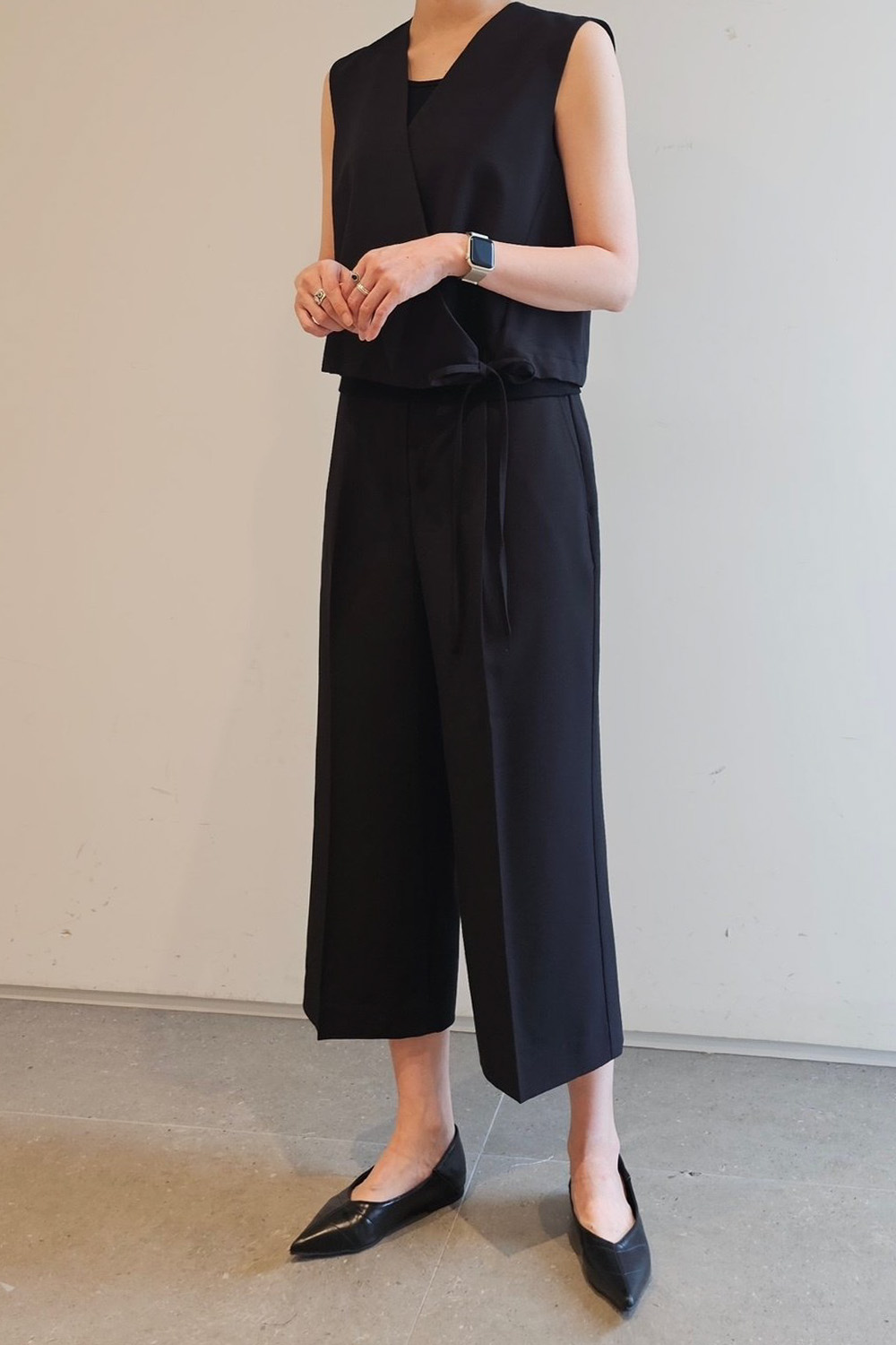 톤 맞춘 블랙 통일자 슬랙스 위에