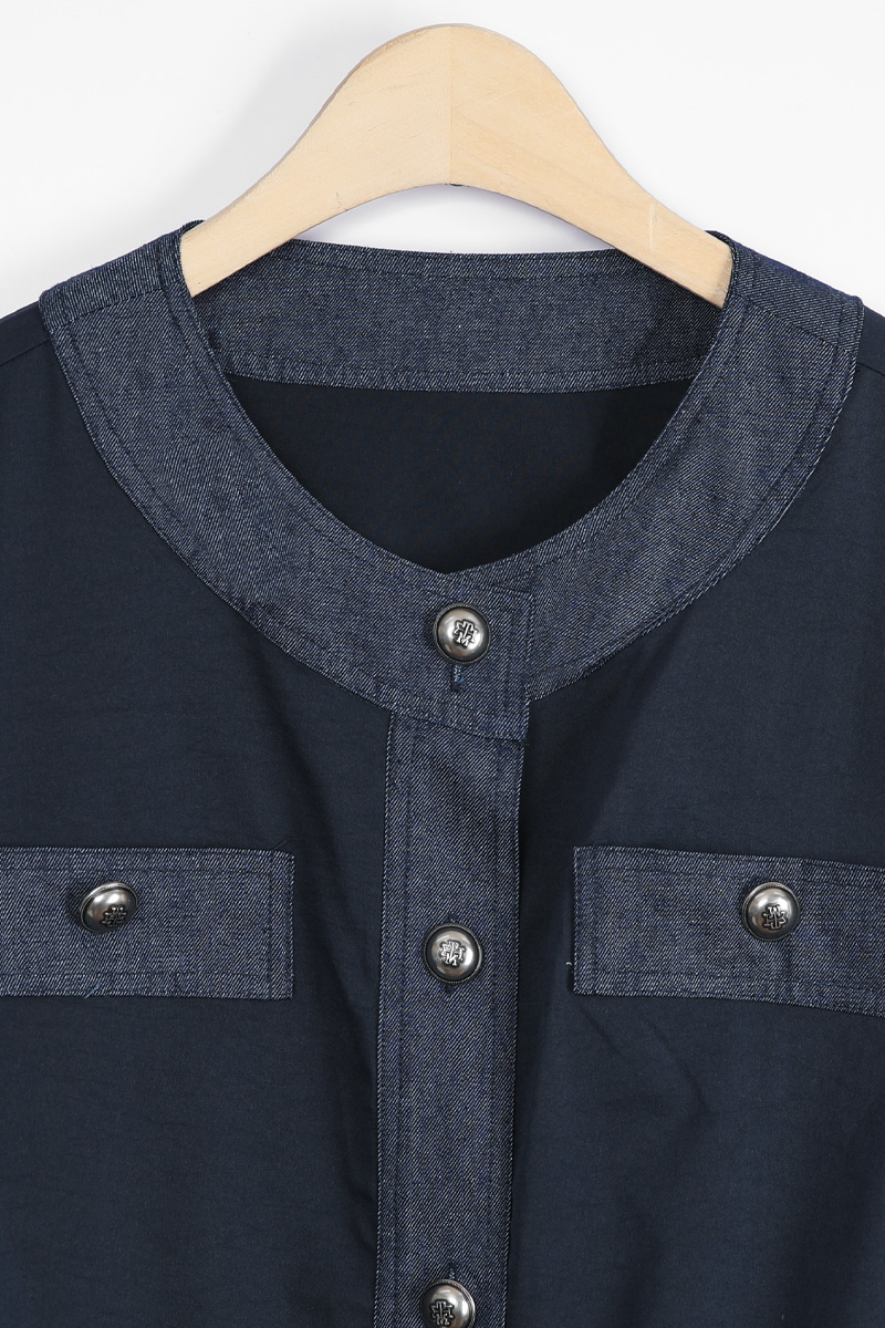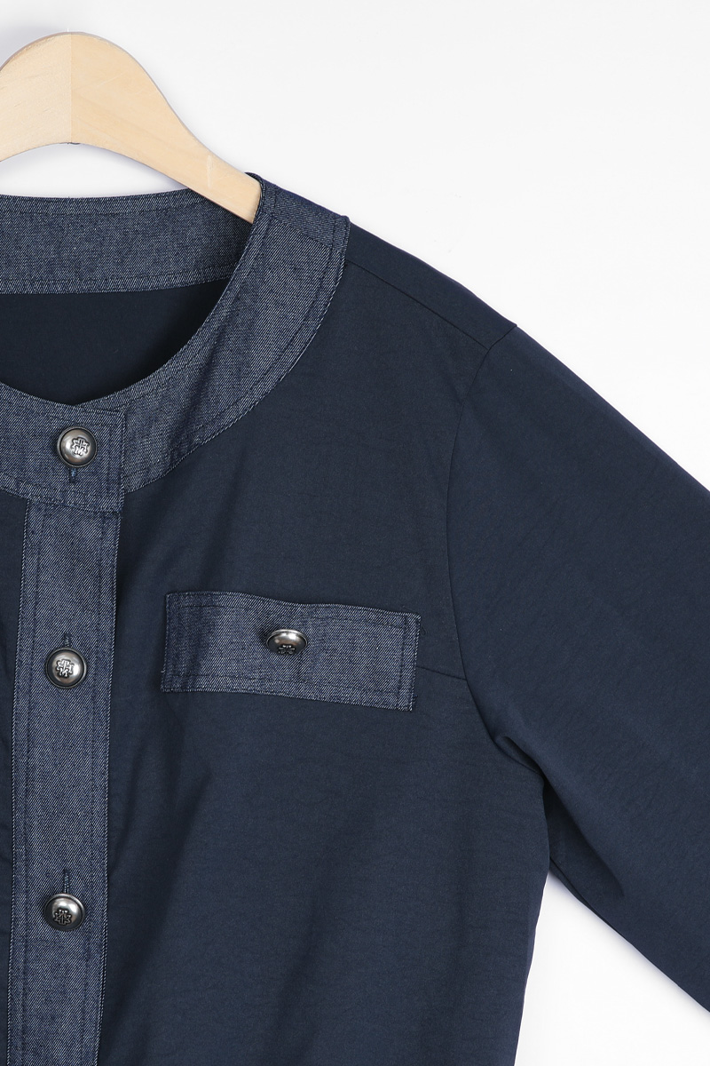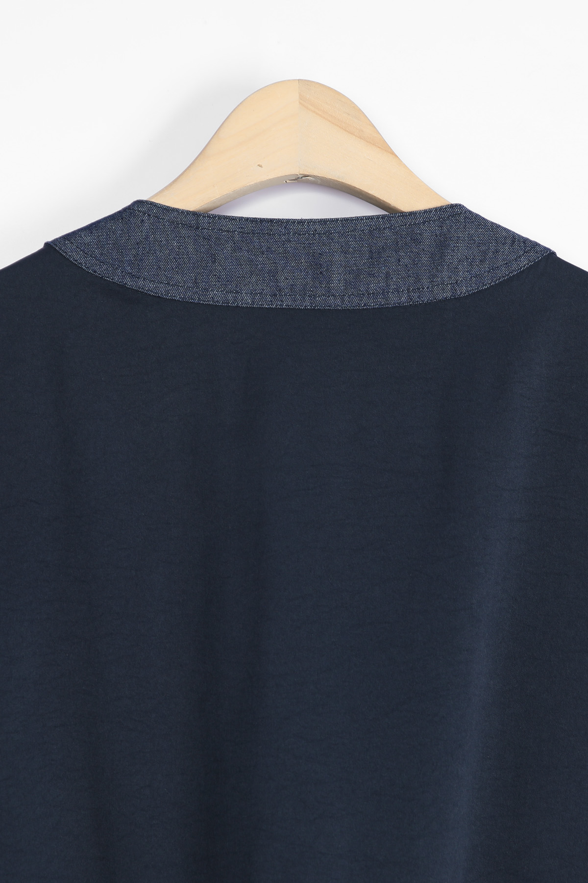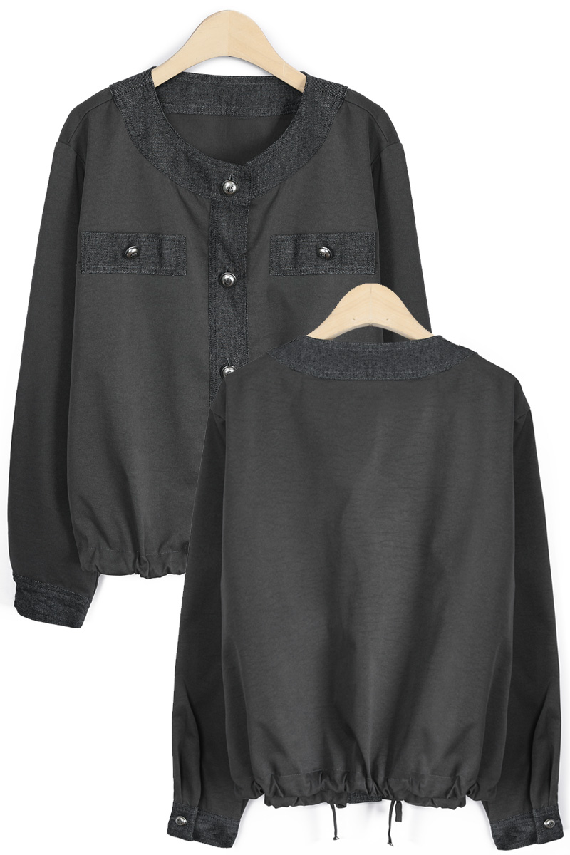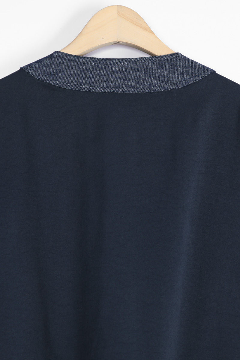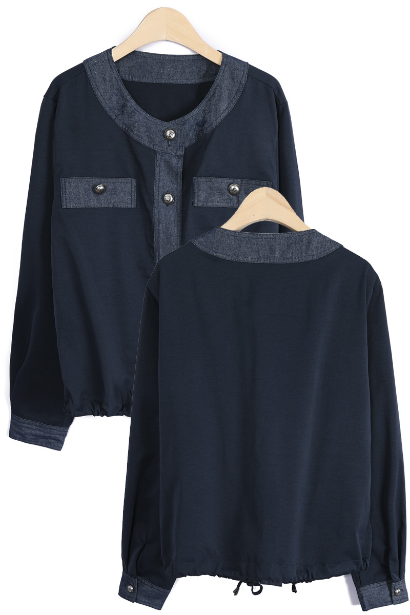 데님 질감의 블록단 네크라인 5cm는