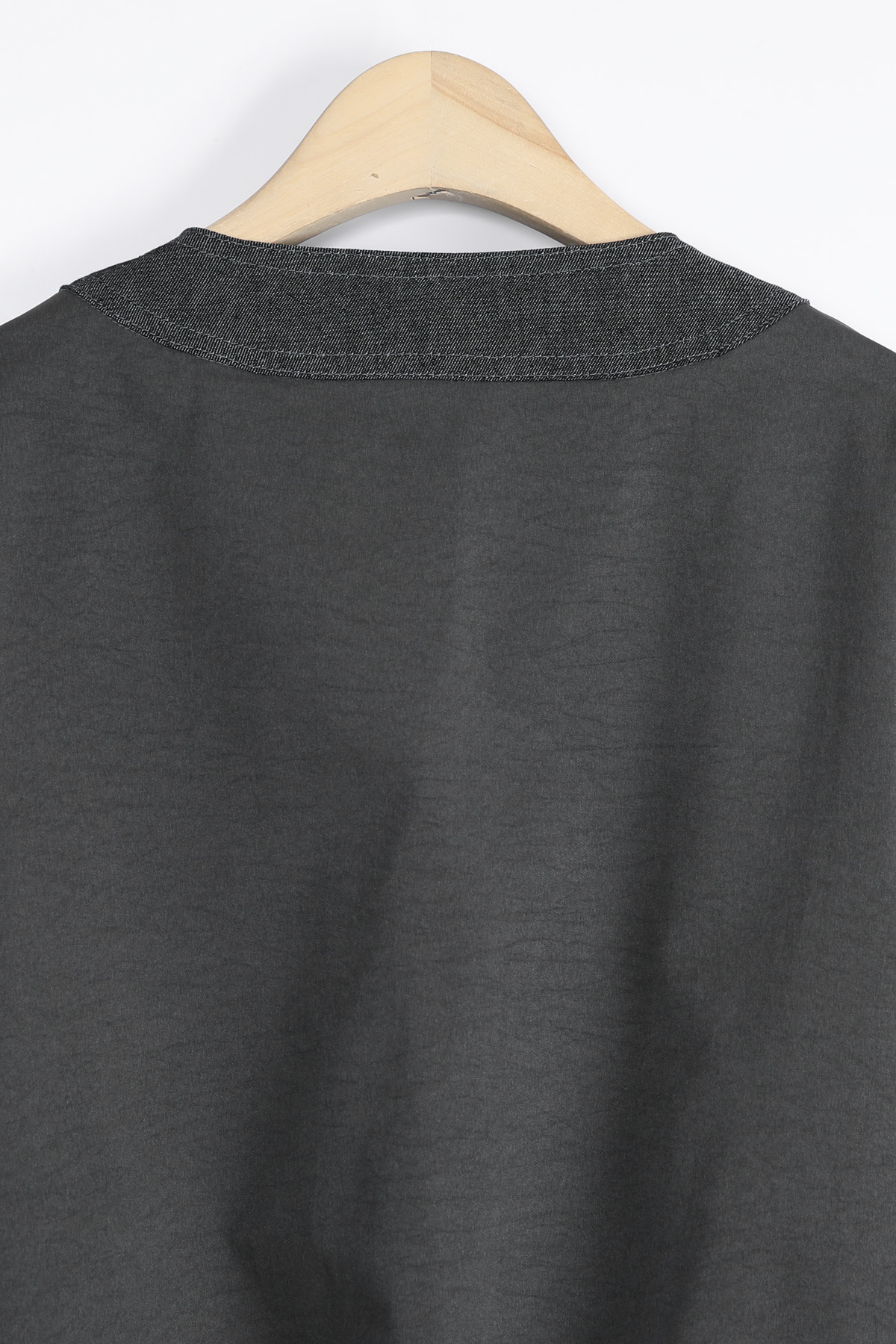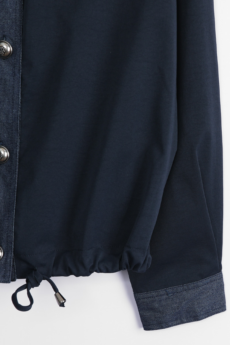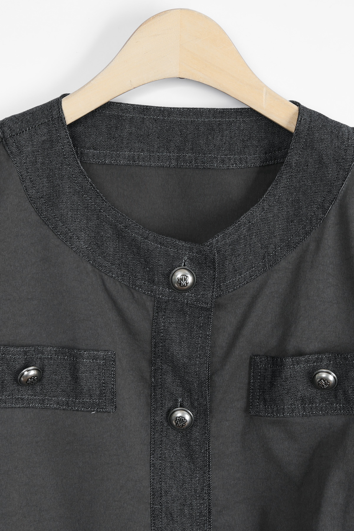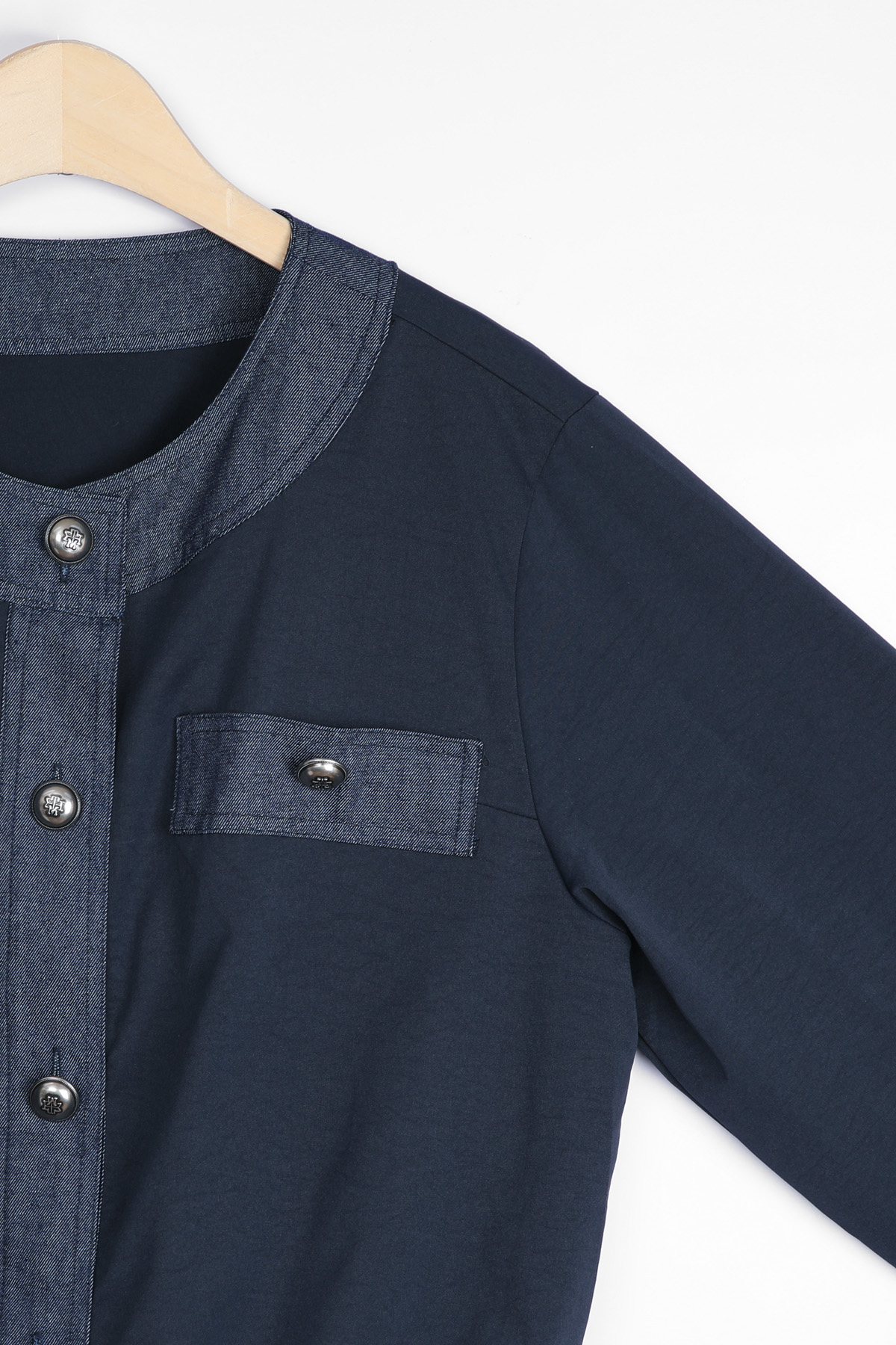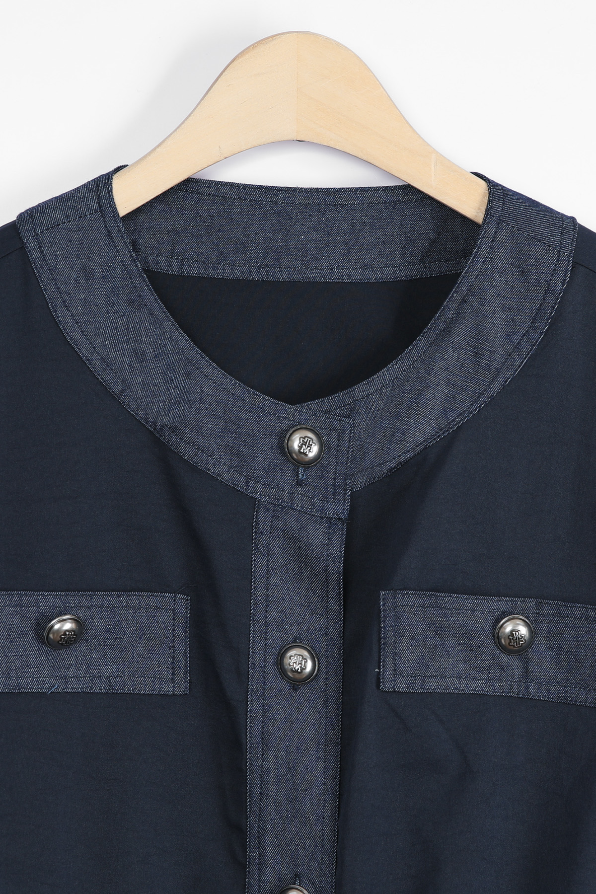 데님 질감의 블록단 네크라인 5cm는
