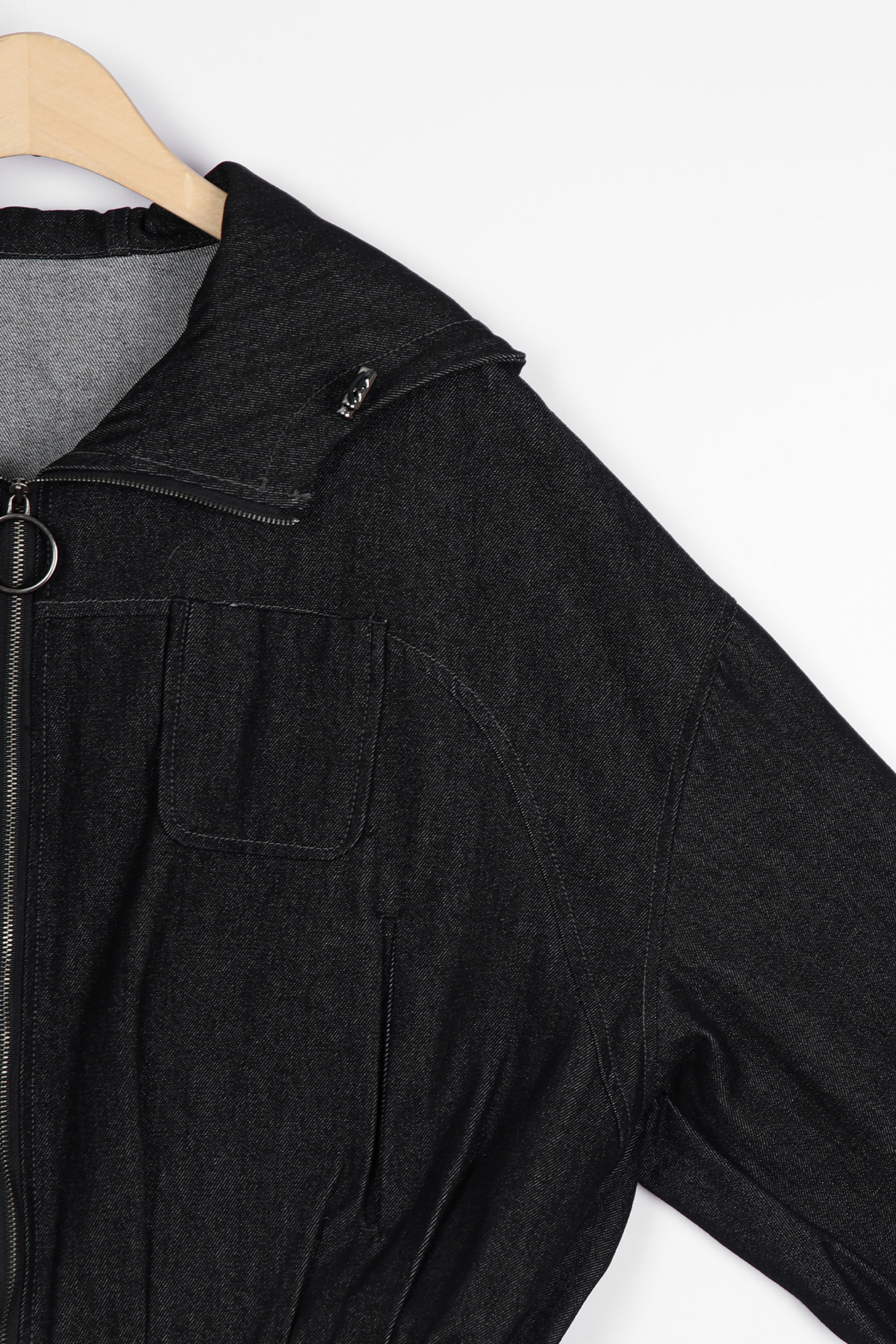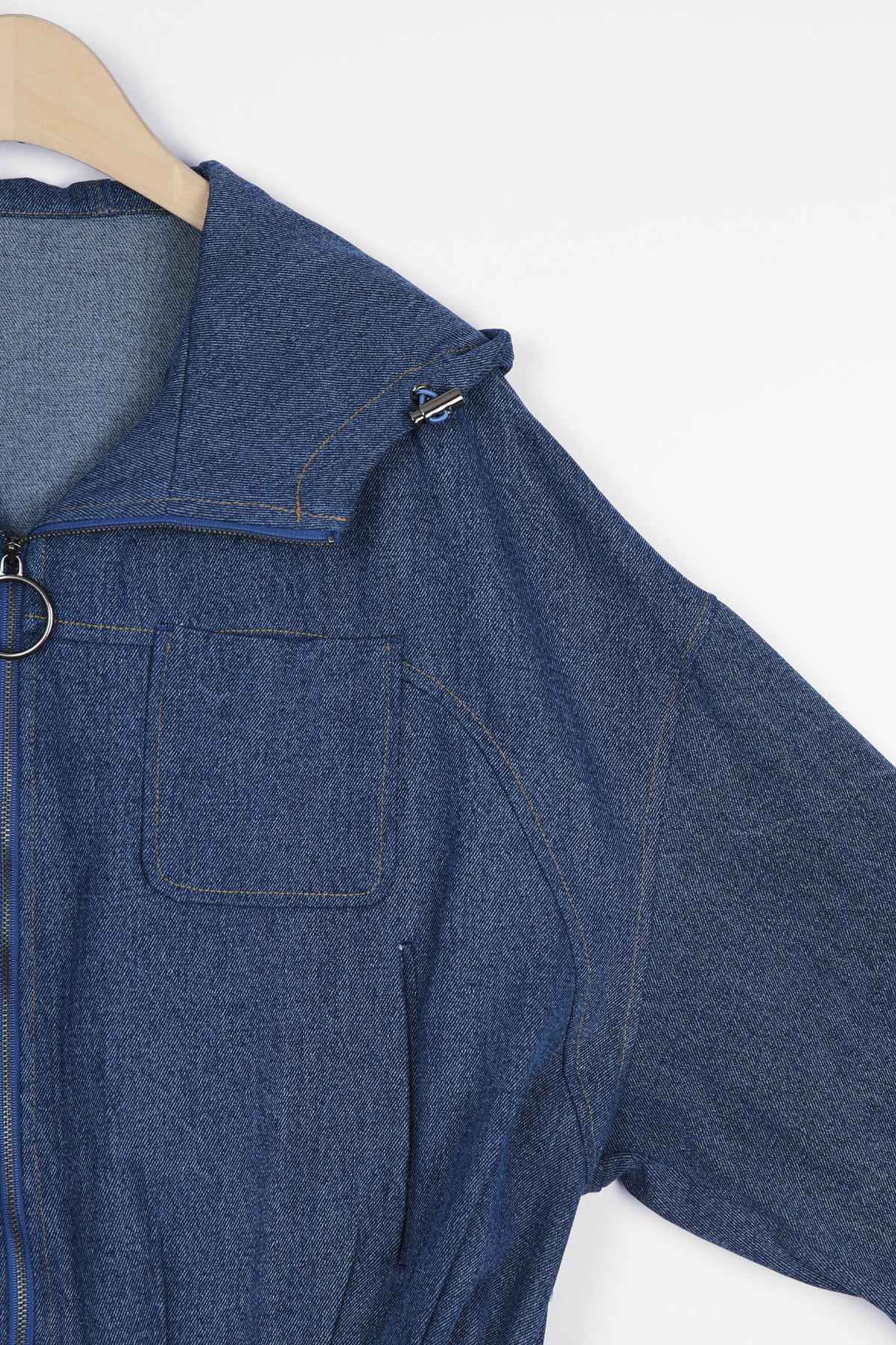 간절기 후디드 데님 자켓이에요.