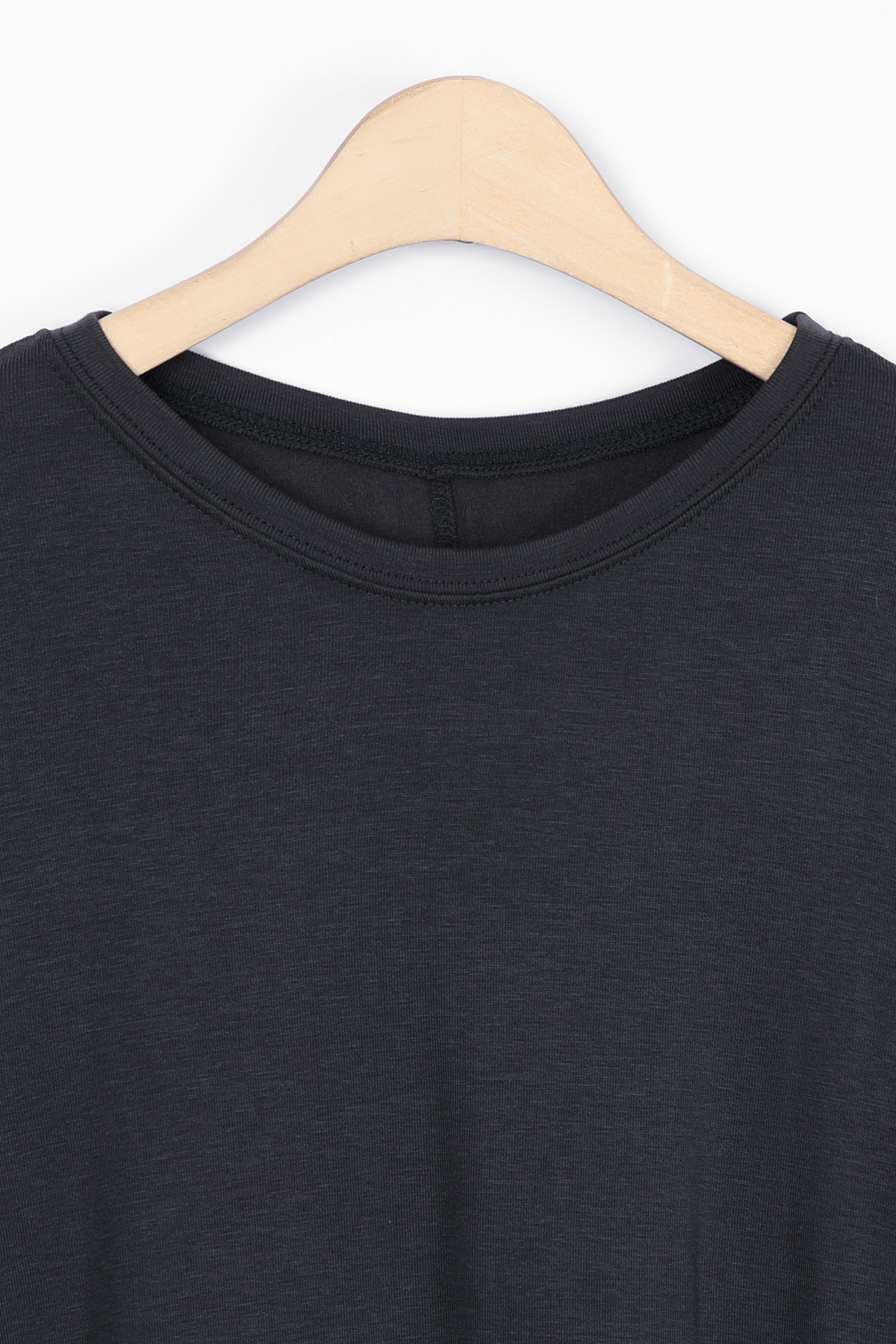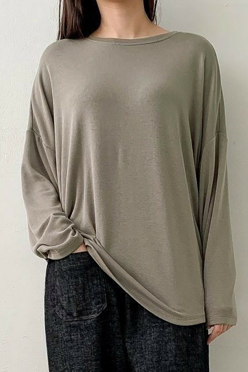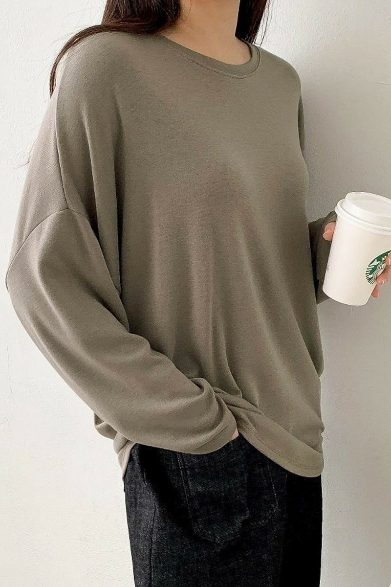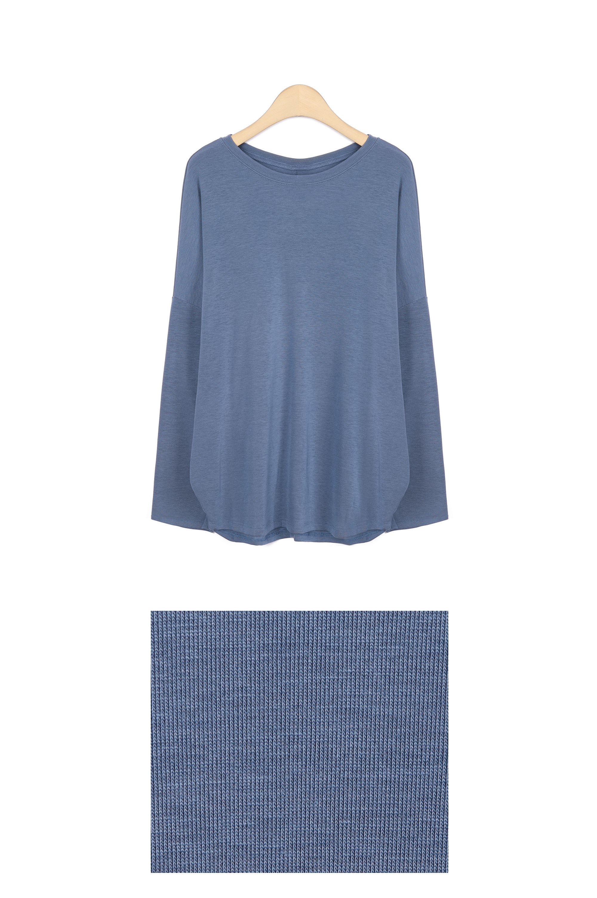 라운드넥은 쇄골선을 자연스럽게 감싸며,
