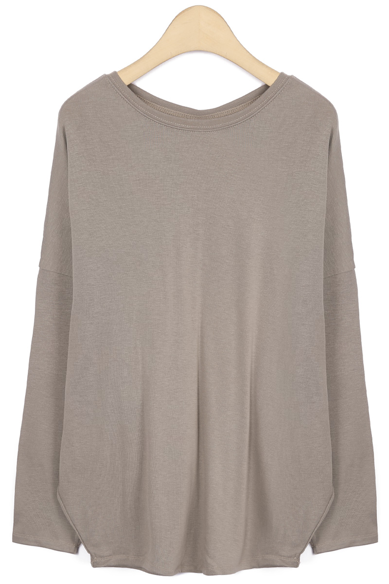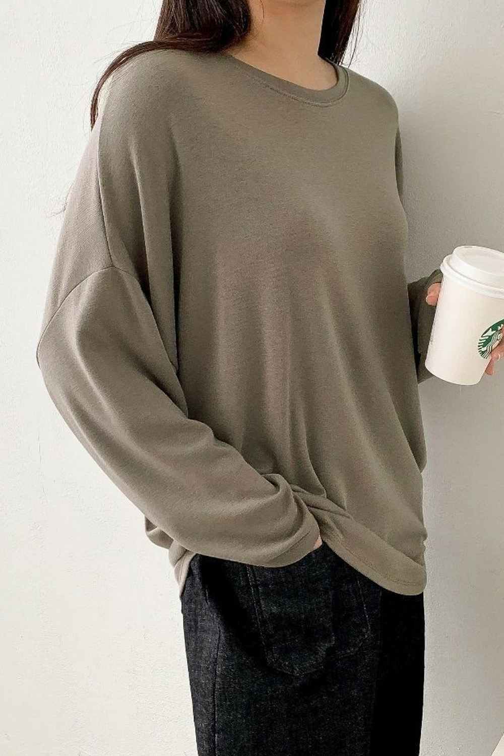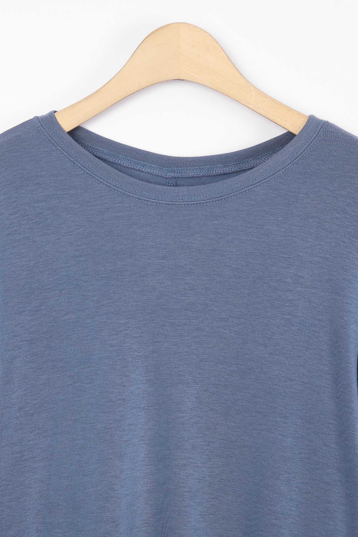 라운드넥은 쇄골선을 자연스럽게 감싸며,