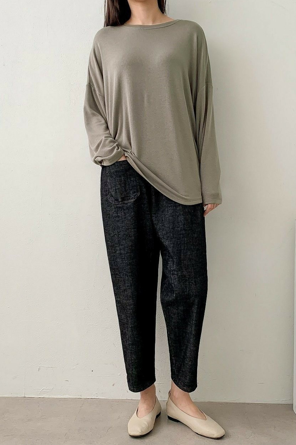 밑단으로 갈수록 살포시 모아지는 실루엣이