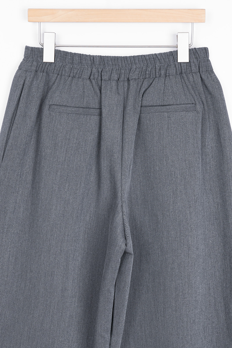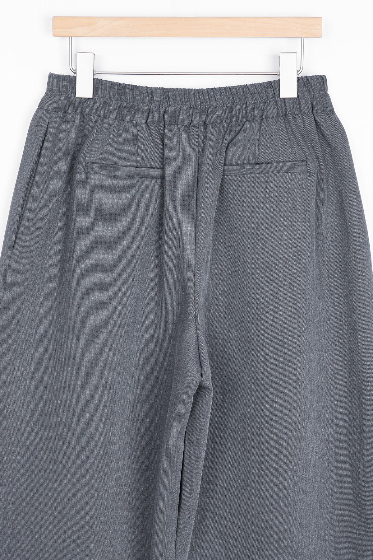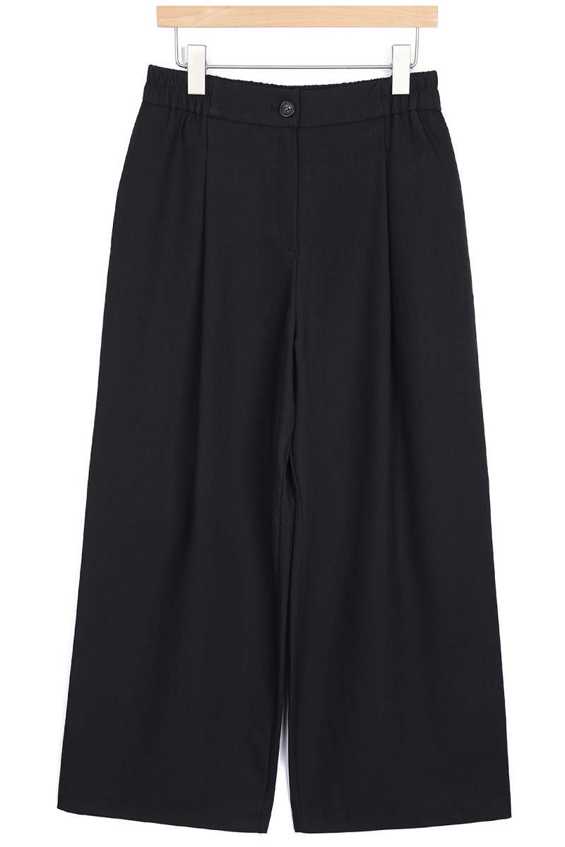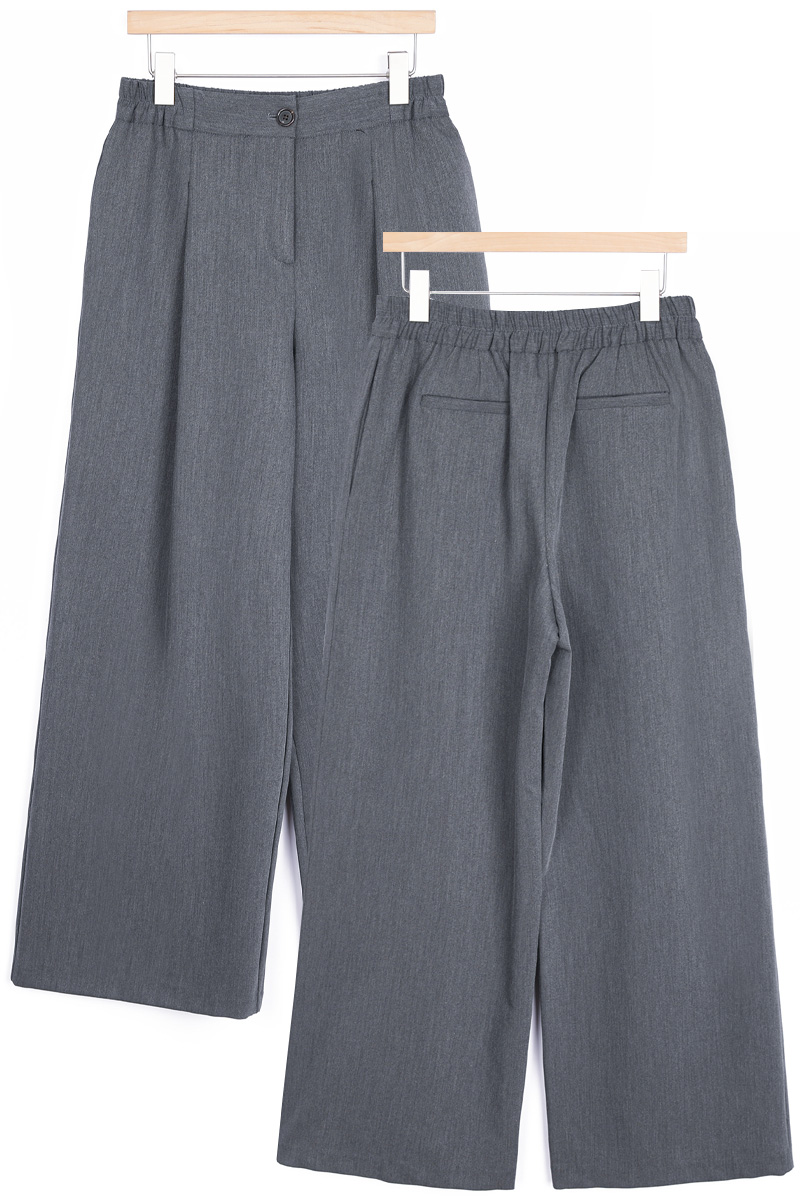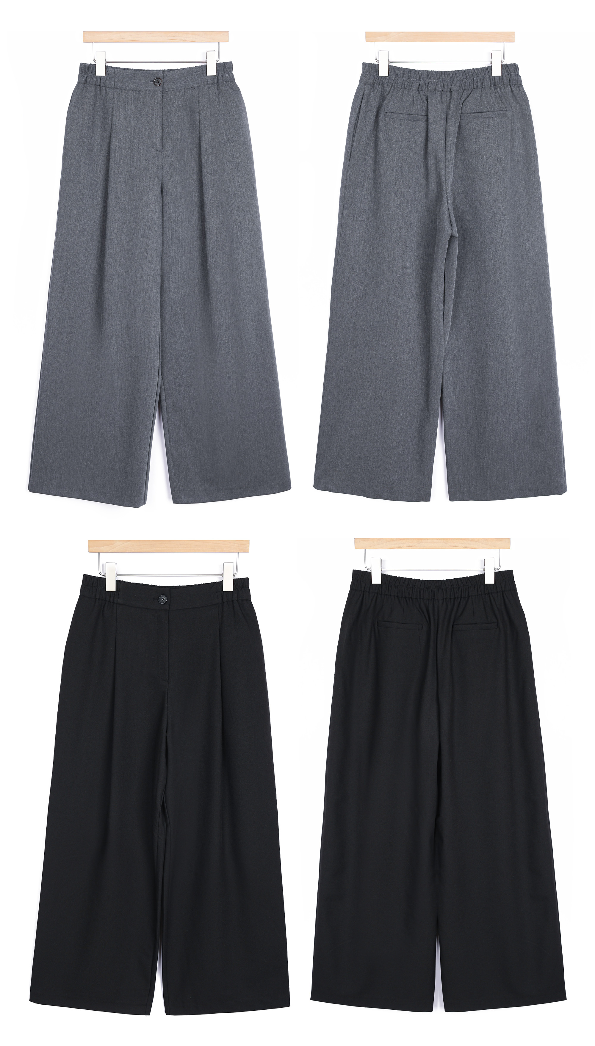 여유에서 완성되는 우아한 실루엣 골반선 앞쪽에 잡힌 핀턱 디테일이 이 팬츠의 시작점이자 포인트예요. 앞 허벅지에 자연스러운 여윳단을 만들어 하체 라인을 부드럽게 정돈해준답니다! 과하게 넓지 않으면서도 충분히 여유 있는 와이드 실루엣으로, 다리가 길어 보이는 균형을 완성하며, 은은하게 흐르는 와이드 라인이라 더욱 세련된 인상을 안겨주어요 :) 가볍지만 탄탄한 밀도감 겉감은 폴리에스터·폴리우레탄·모 혼방에 스판을 더해 제작했어요. 입기 좋은 두께감과 질감이랍니다. 구김이 쉽게 가지 않으면서, 텐션이 좋아 활동 시 편안함이 돋보이고요 고급스러운 분위기를 완성해 드려요. 높은 허벅지까지 덮는 안감은 레이온 혼방으로 제작해 착용 시 부드럽고 안정적인 착용감을 제공할 거예요! 안정감 있는 허리 설계 허릿단 앞면에는 플라스틱 버튼 1개와 약 12cm 콘솔 지퍼로 깔끔하게 마감했어요. 더욱 정돈된 인상을 준답니다. 허릿단 양 사이드부터 뒷면까지는 원단 사이에 밴드를 삽입해 봉제 마감했으며 허리의 2/3 이상이 밴딩 디자인인만큼 반 사이즈 정도의 자연스러운 여유를 만들어주기에 체형에 맞춰 안정적으로 안착하는 허리 라인 기분 좋게 만나보실 수 있을 거예요 :) 앞 라인을 정돈하는 설계 골반선 좌우에 각각 한 줄씩 잡힌 핀턱이 앞 허벅지 여유를 자연스럽게 형성해요. 실루엣이 여유롭지만 훨씬 매끈하게 정리된답니다. 핀턱은 단순 장식이 아니라 체형 보정 역할을 해주는 구조라는걸 잊지 마세요! 세련되게 흐르는 라인 165cm, 골반 넓은 66 기준 M 사이즈 착용