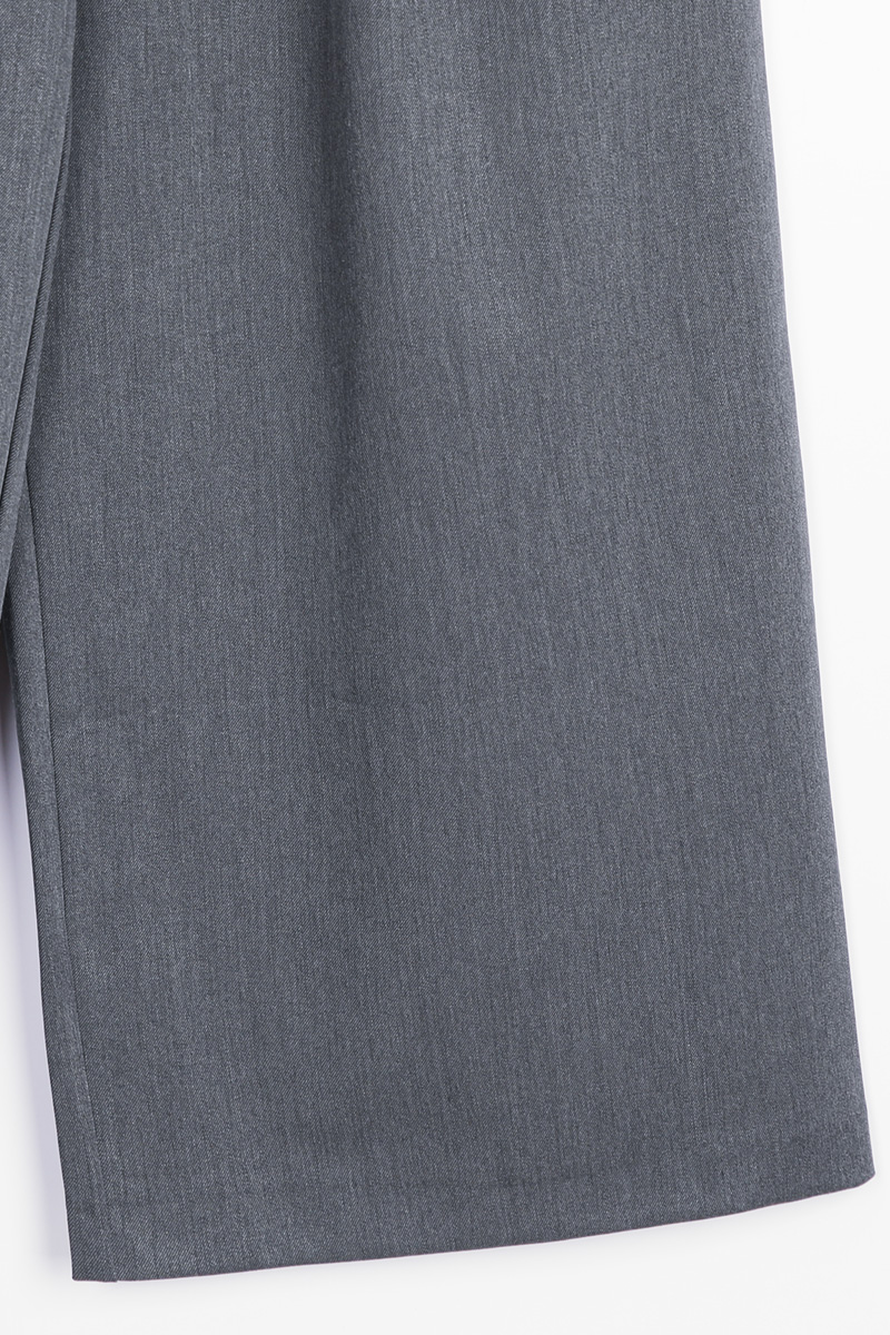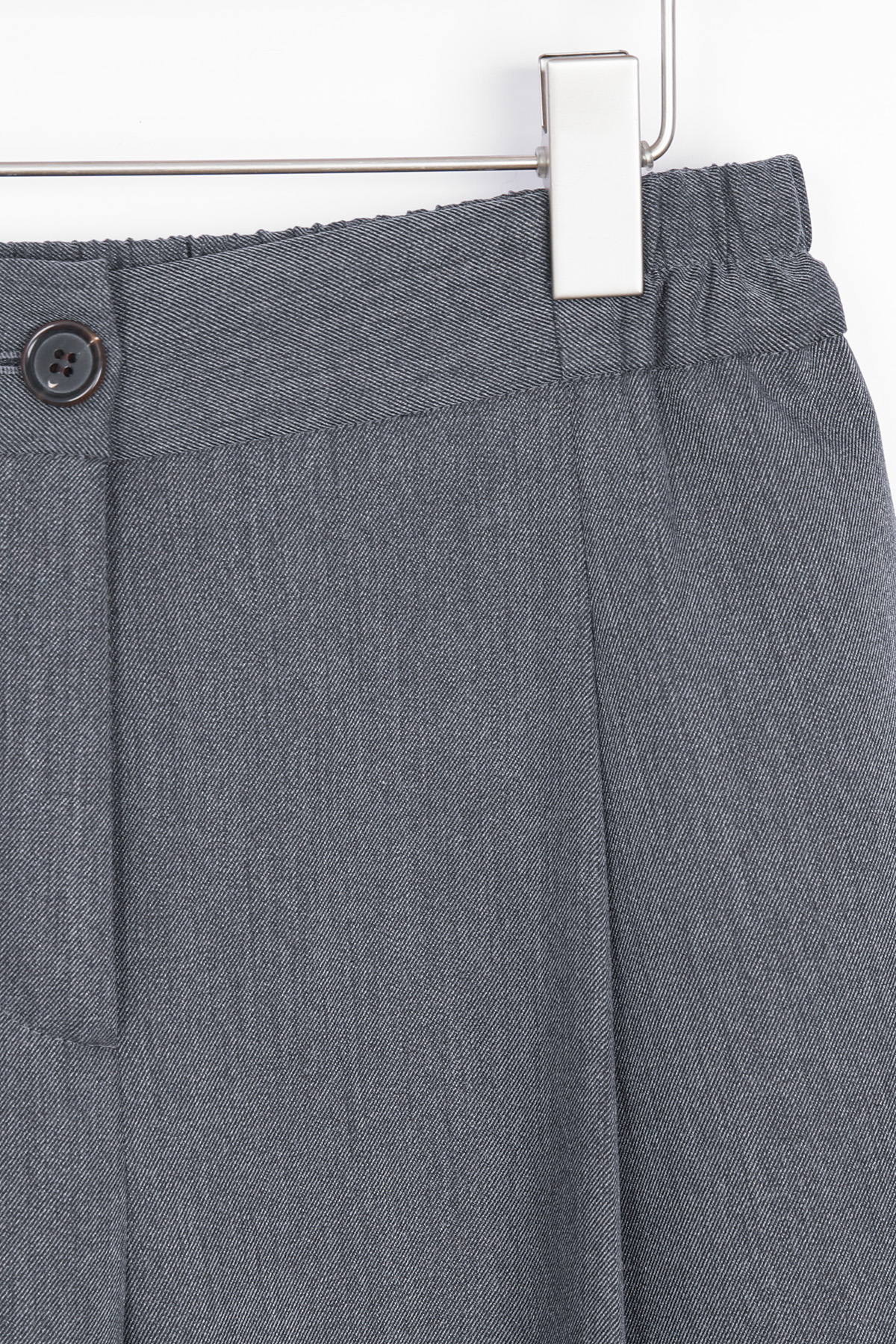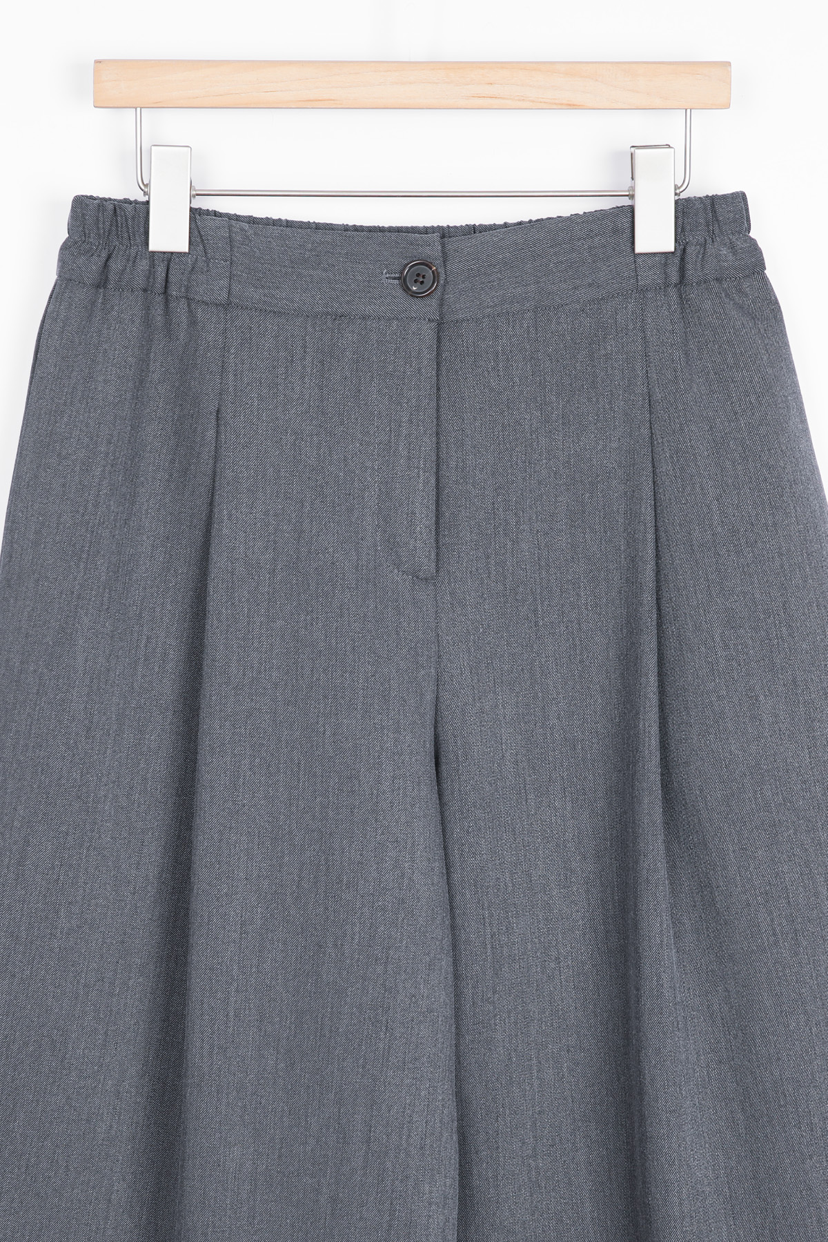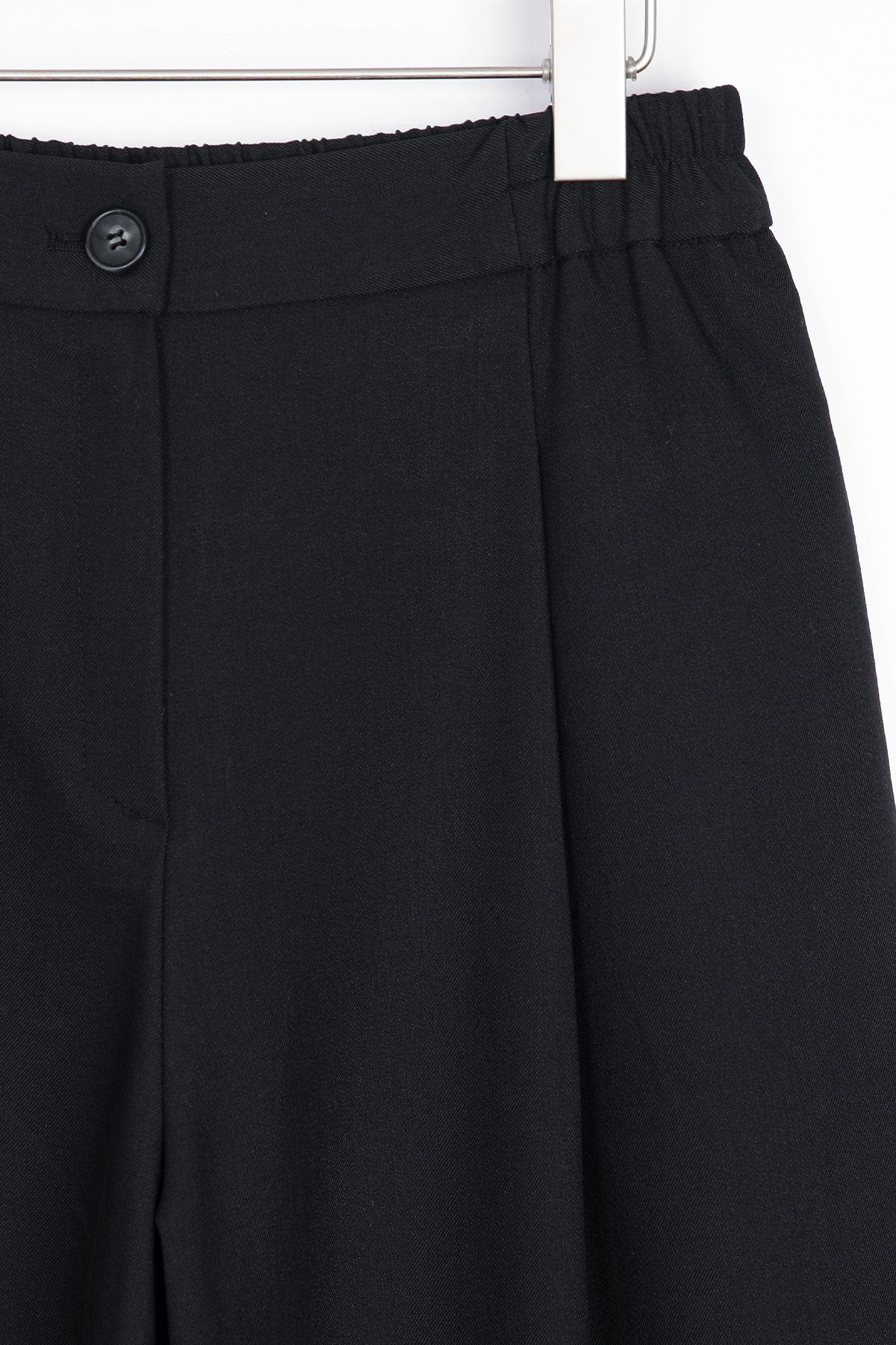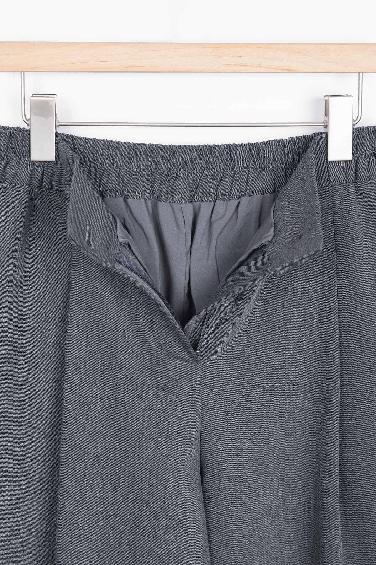여유에서 완성되는 우아한 실루엣 골반선 앞쪽에 잡힌 핀턱 디테일이 이 팬츠의 시작점이자 포인트예요. 앞 허벅지에 자연스러운 여윳단을 만들어 하체 라인을 부드럽게 정돈해준답니다! 과하게 넓지 않으면서도 충분히 여유 있는 와이드 실루엣으로, 다리가 길어 보이는 균형을 완성하며, 은은하게 흐르는 와이드 라인이라 더욱 세련된 인상을 안겨주어요 :) 가볍지만 탄탄한 밀도감 겉감은 폴리에스터·폴리우레탄·모 혼방에 스판을 더해 제작했어요. 입기 좋은 두께감과 질감이랍니다. 구김이 쉽게 가지 않으면서, 텐션이 좋아 활동 시 편안함이 돋보이고요 고급스러운 분위기를 완성해 드려요. 높은 허벅지까지 덮는 안감은 레이온 혼방으로 제작해 착용 시 부드럽고 안정적인 착용감을 제공할 거예요! 안정감 있는 허리 설계 허릿단 앞면에는 플라스틱 버튼 1개와 약 12cm 콘솔 지퍼로 깔끔하게 마감했어요. 더욱 정돈된 인상을 준답니다. 허릿단 양 사이드부터 뒷면까지는 원단 사이에 밴드를 삽입해 봉제 마감했으며 허리의 2/3 이상이 밴딩 디자인인만큼 반 사이즈 정도의 자연스러운 여유를 만들어주기에 체형에 맞춰 안정적으로 안착하는 허리 라인 기분 좋게 만나보실 수 있을 거예요 :) 앞 라인을 정돈하는 설계 골반선 좌우에 각각 한 줄씩 잡힌 핀턱이 앞 허벅지 여유를 자연스럽게 형성해요. 실루엣이 여유롭지만 훨씬 매끈하게 정리된답니다. 핀턱은 단순 장식이 아니라 체형 보정 역할을 해주는 구조라는걸 잊지 마세요! 세련되게 흐르는 라인 165cm, 골반 넓은 66 기준 M 사이즈 착용