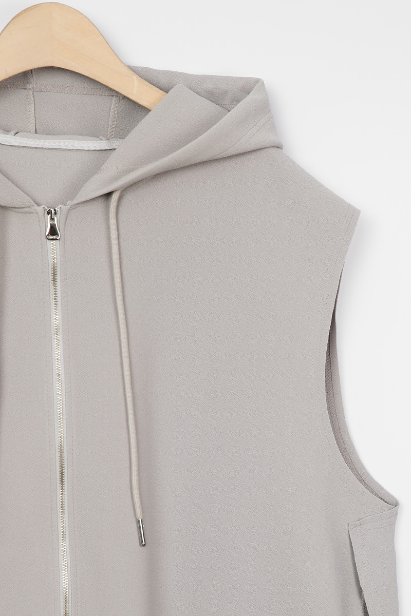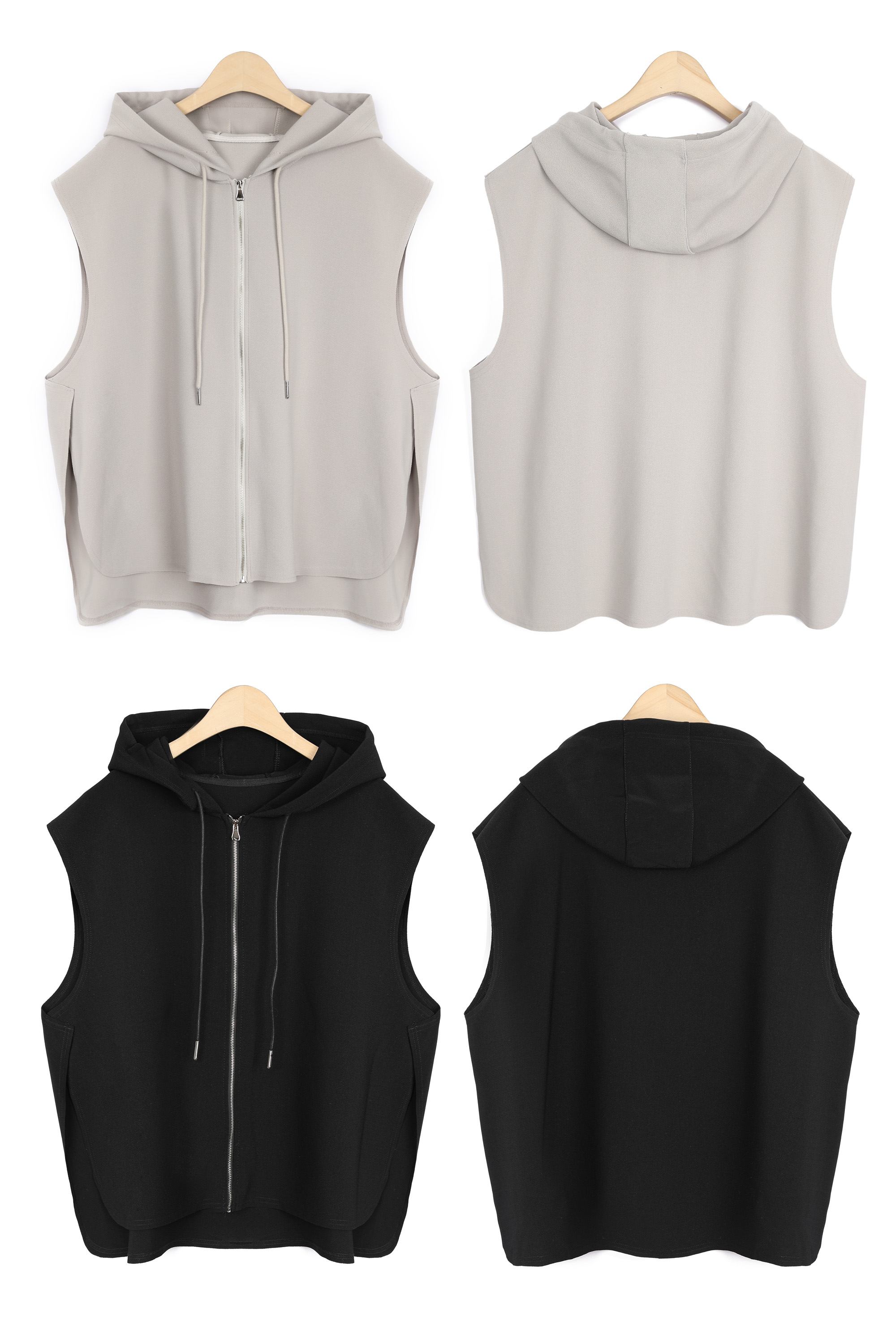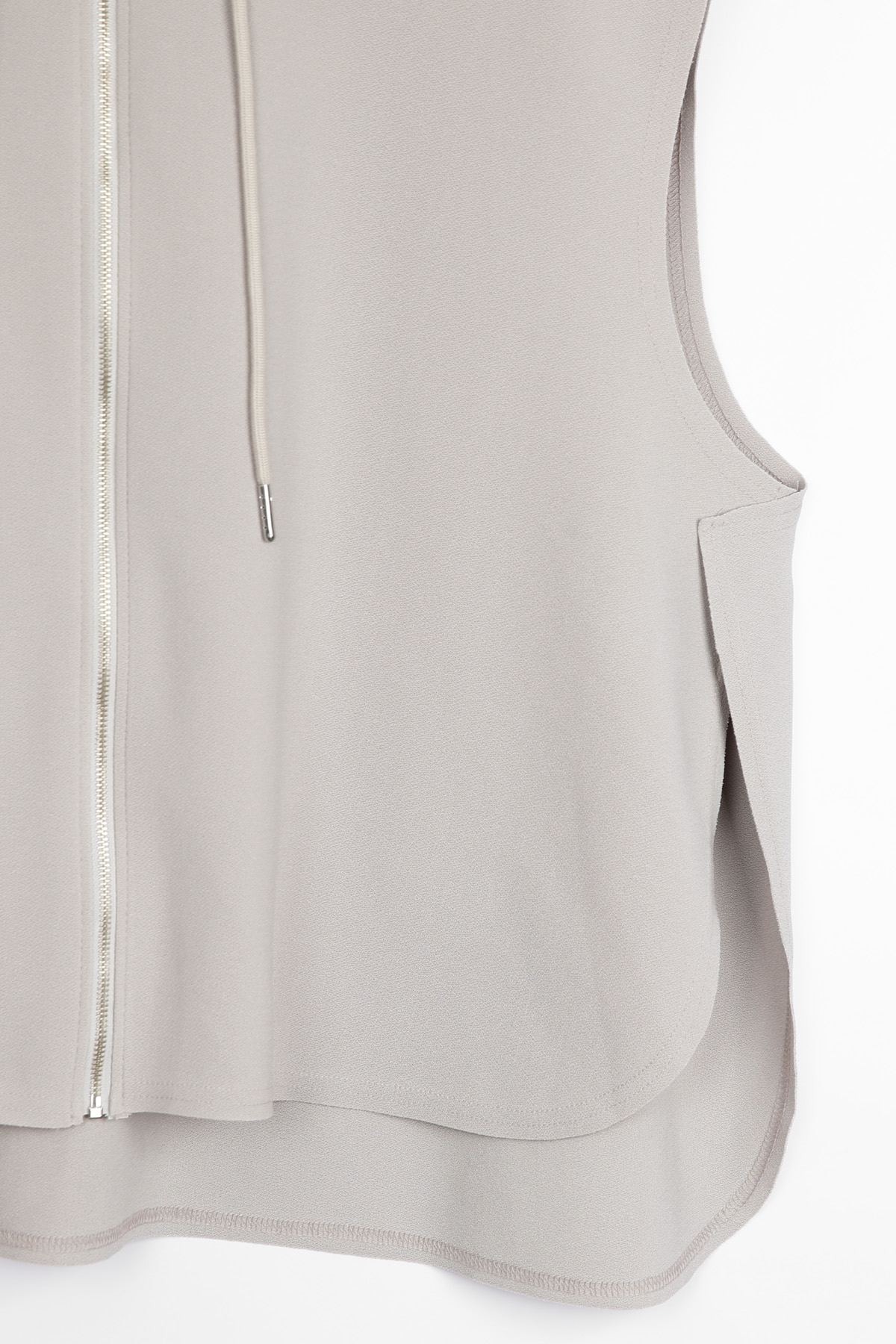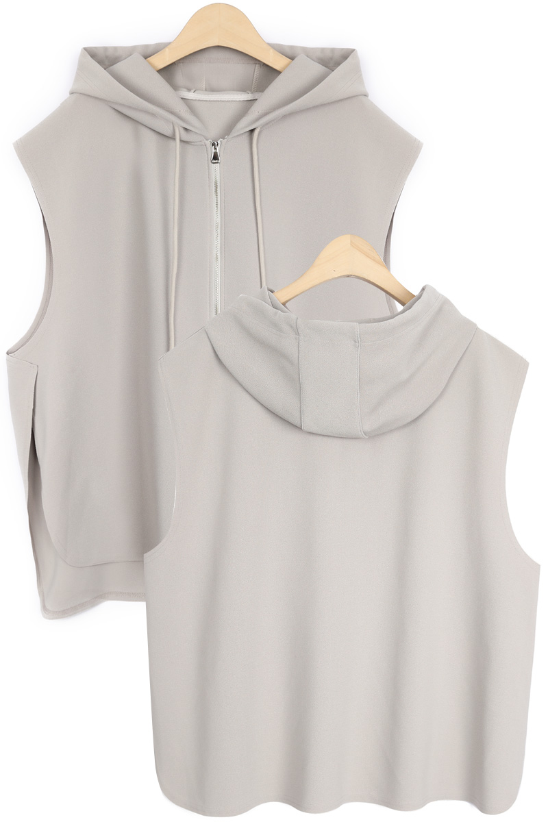 둥근 사이드 슬릿이 이 조끼의 핵심 구조.