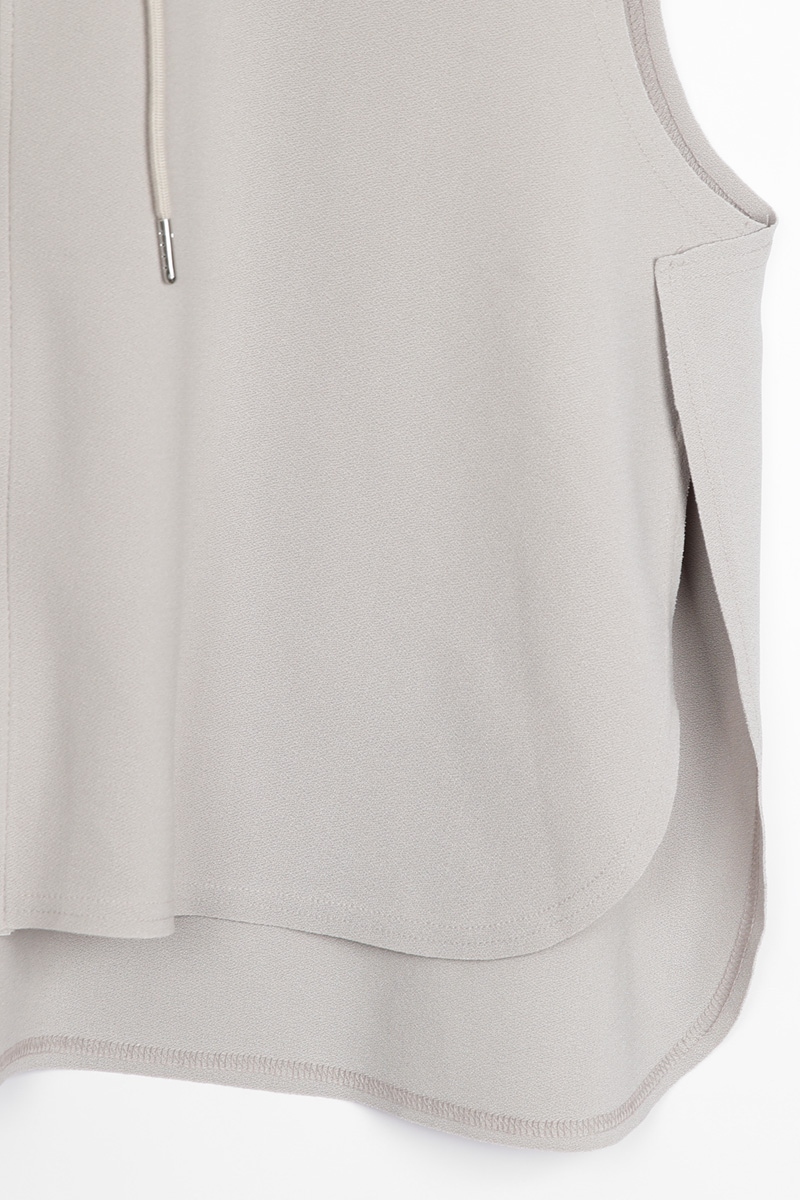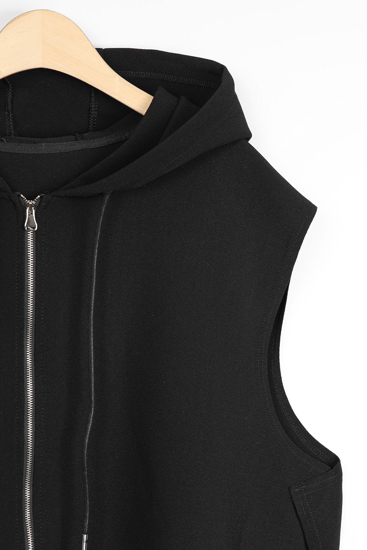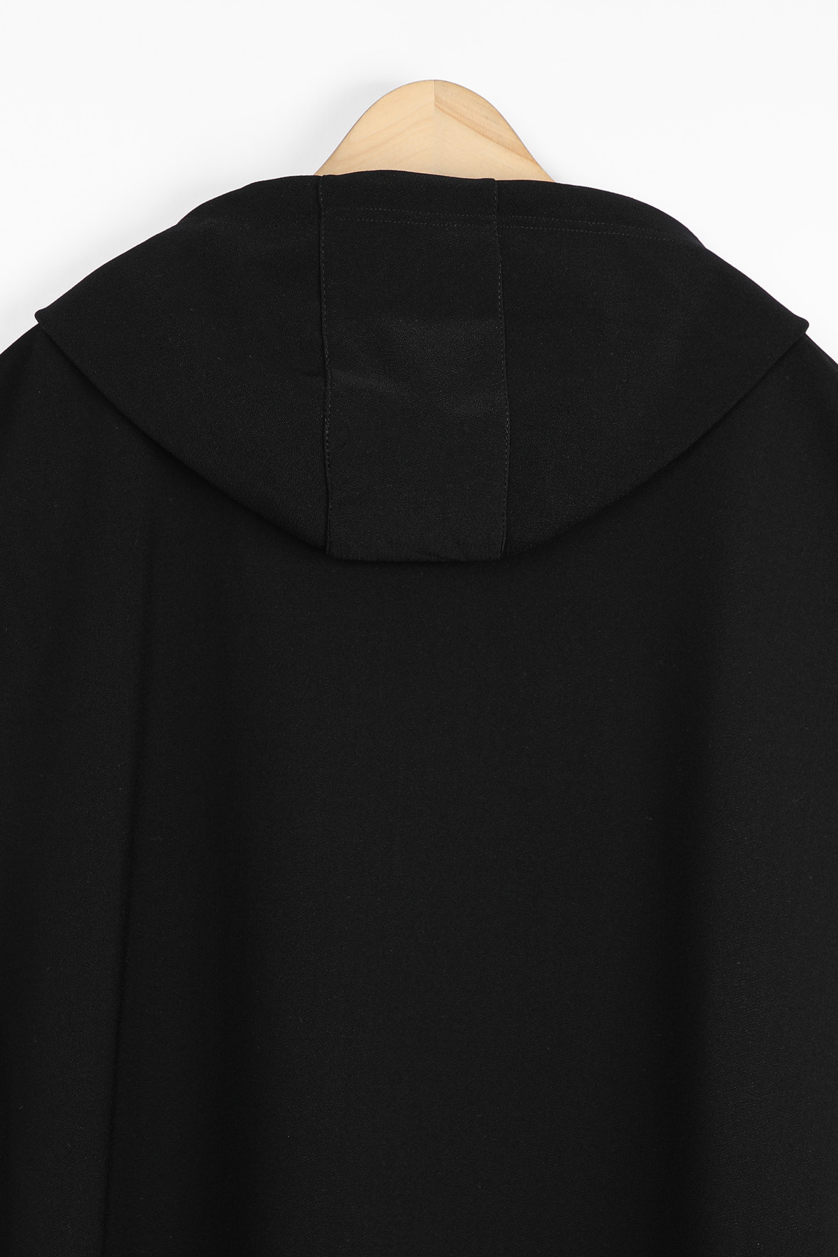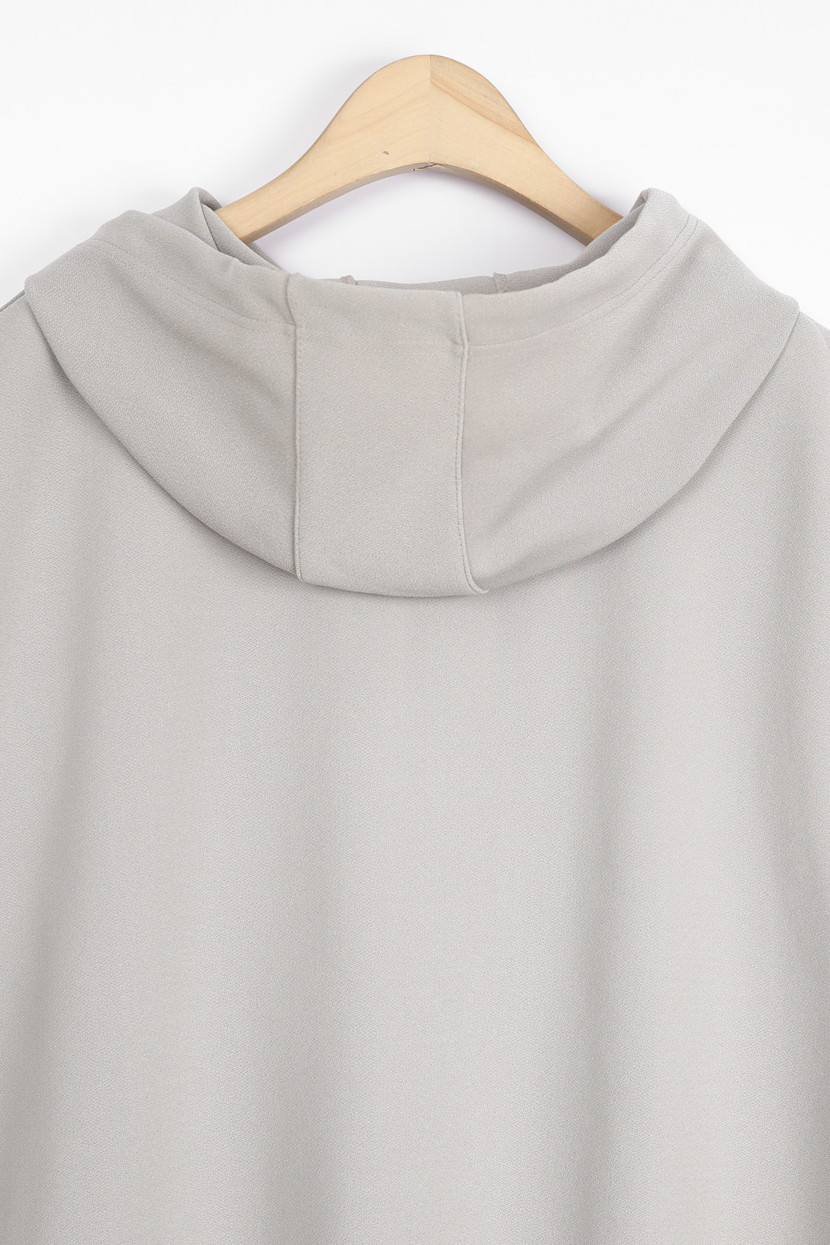 목선 뒤로 자연스럽게 흐르는 후드가