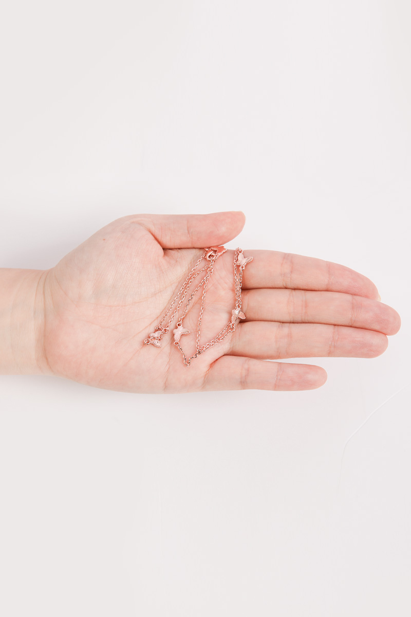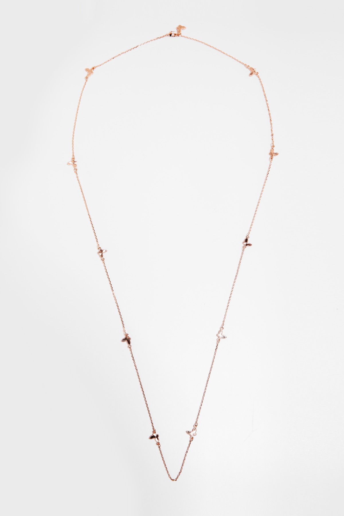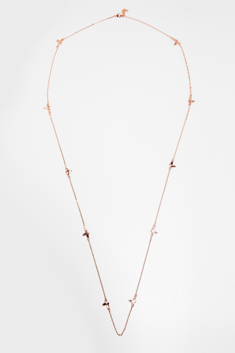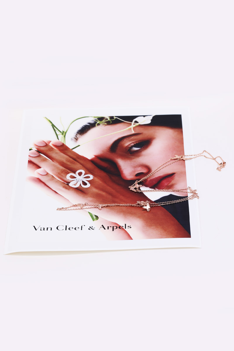 Van Cleef Butterfly Long Necklace 한 줄로는 밑가슴까지 부드럽게 내려오는 롱 네크리스로, 자연스럽게 레이어드가 완성되는 디자인이에요. 길이감 자체가 스타일을 만들어주는 타입이랍니다! 반클리프의 버터플라이 모티프는 단순히 “예쁜 나비”가 아니라 상징하는 모티브로 사랑받아 왔어요. 버터플라이의 날개가 좌우로 균형 있게 펼쳐지는 형태라 시선이 자연스럽게 흐르고, 버터플라이 모티브의 매력이랍니다! 사진처럼 체인 위에 작은 버터플라이 포인트가 약 8cm 간격으로 배치되어 가까이에서 보면 모티프 하나하나가 빛을 받아들이는 구조라서, 살짝살짝 고급스럽게 빛나는 느낌이 예쁘게 살아나요. 단면 47cm / 총 94cm 롱 길이라 밑가슴 라인까지 안정적으로 떨어져요. 셔츠, 니트, 터틀넥처럼 “상체가 단정한 룩” 위에 얹으면 2줄 레이어드로 연출하면 길이감이 분할되면서 얼굴 쪽이 더 밝아 보이는 효과 있답니다 브이넥/라운드넥 모두 잘 맞지만, 특히 터틀넥 위에 레이어드했을 때 가장 세련돼 보인다 느끼실 거예요 :)