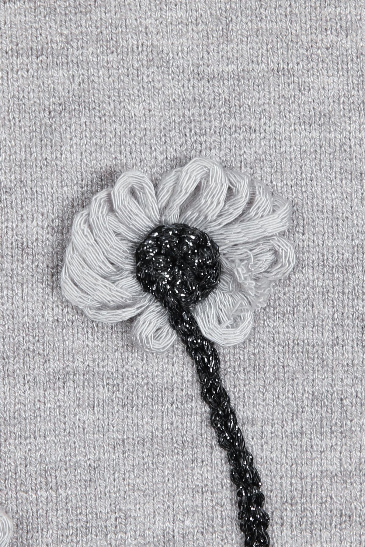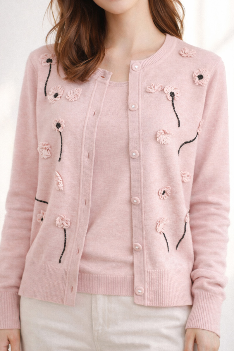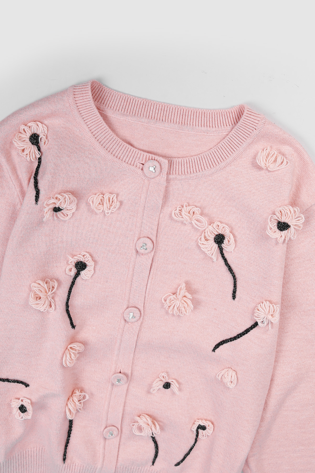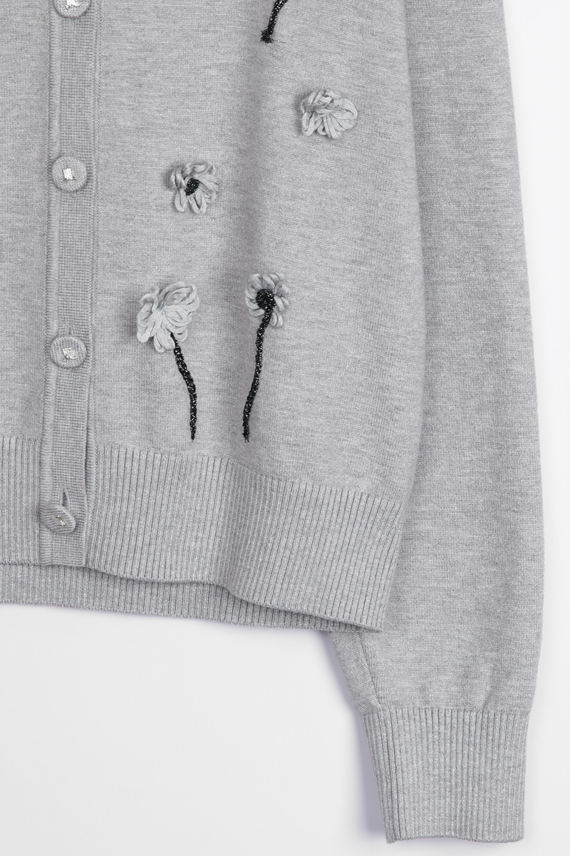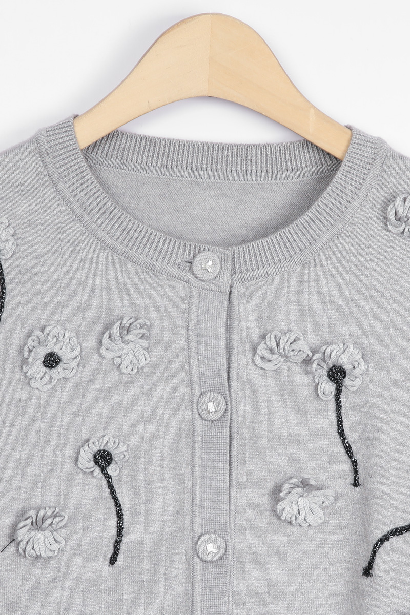 몸판 전면에 섬세하게 피어난 실꽃 모티브예요.