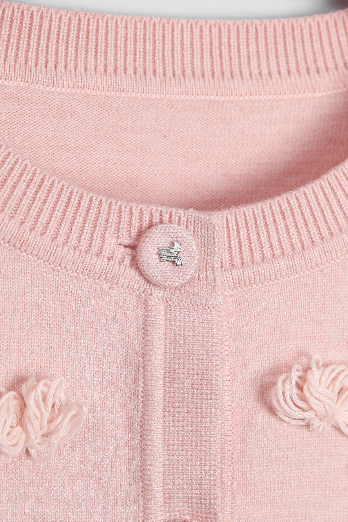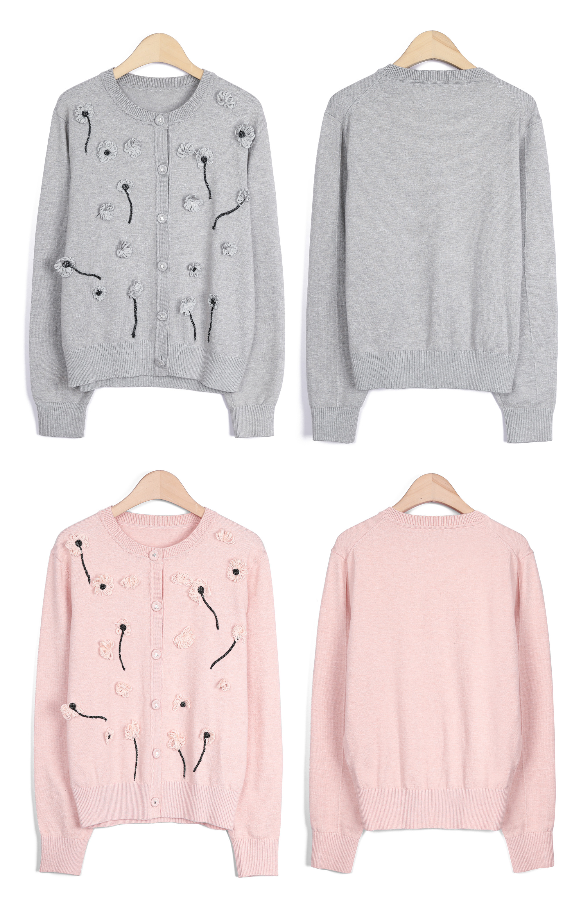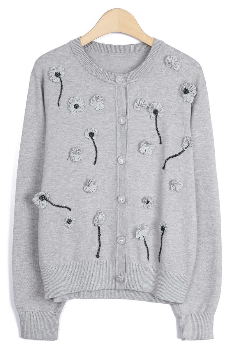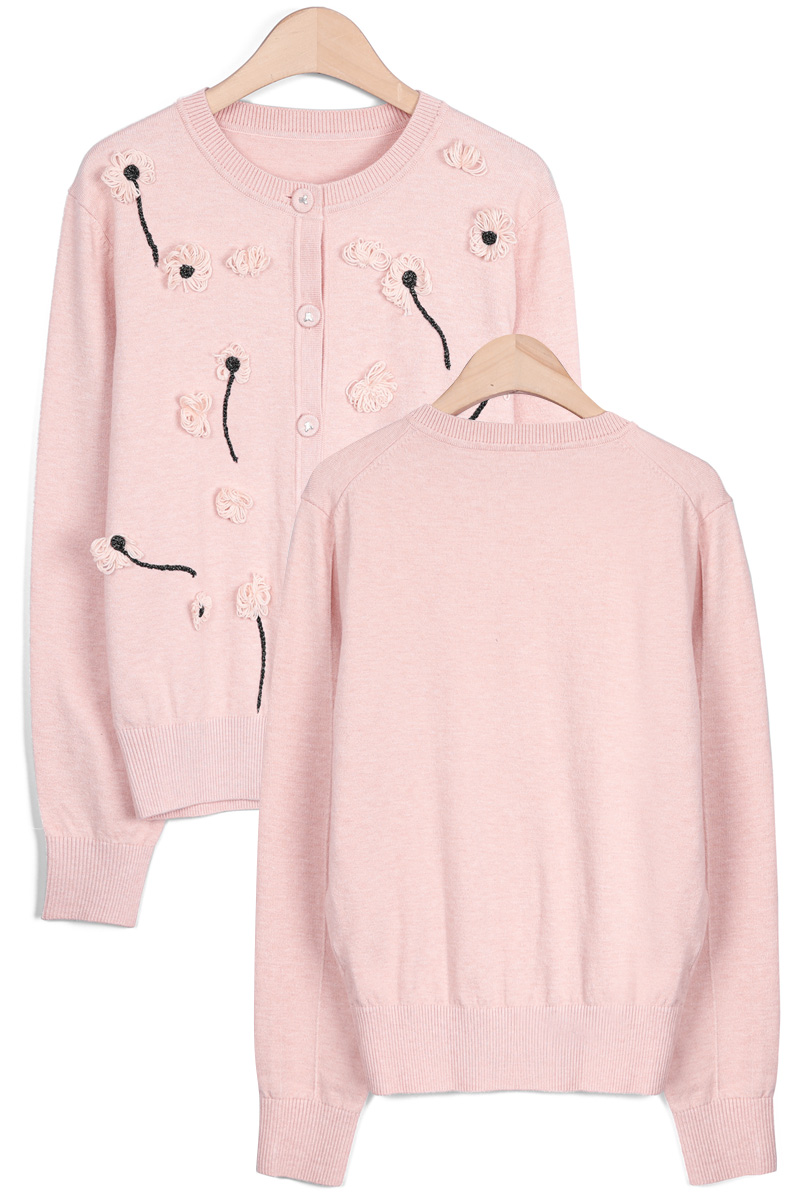 몸판 전면에 섬세하게 피어난 실꽃 모티브예요.