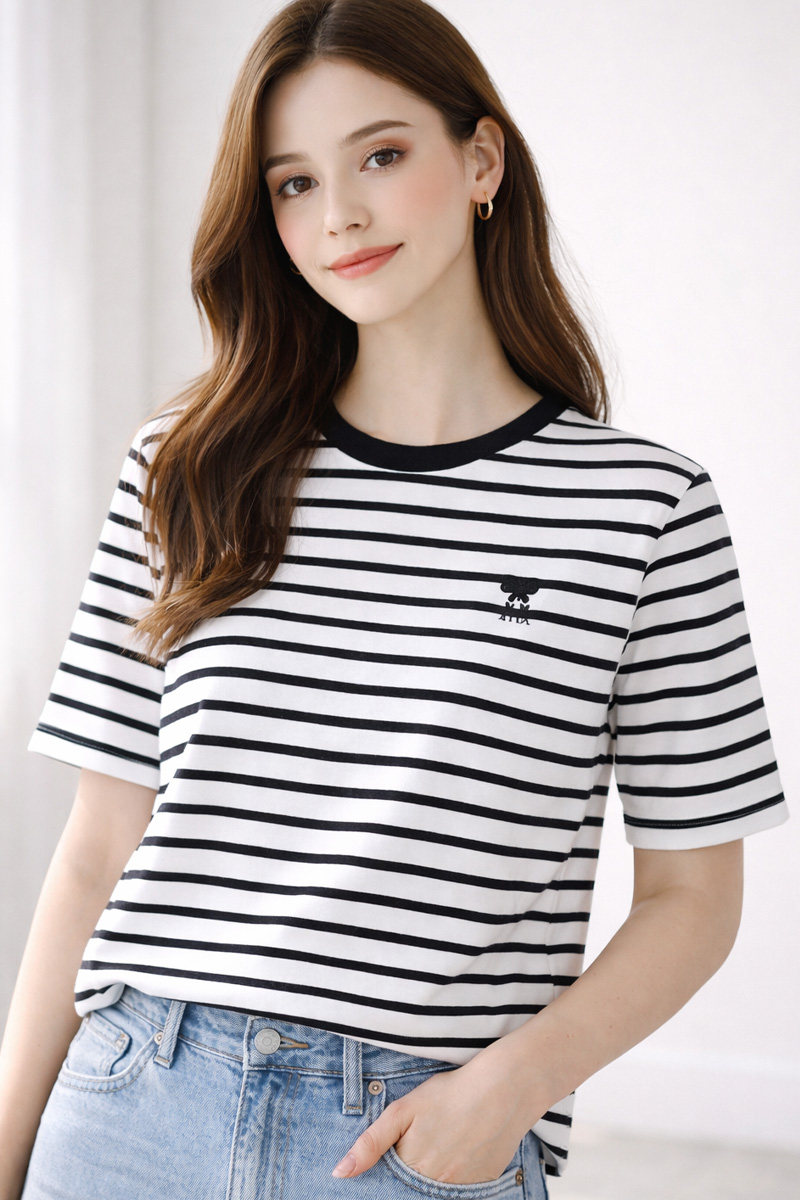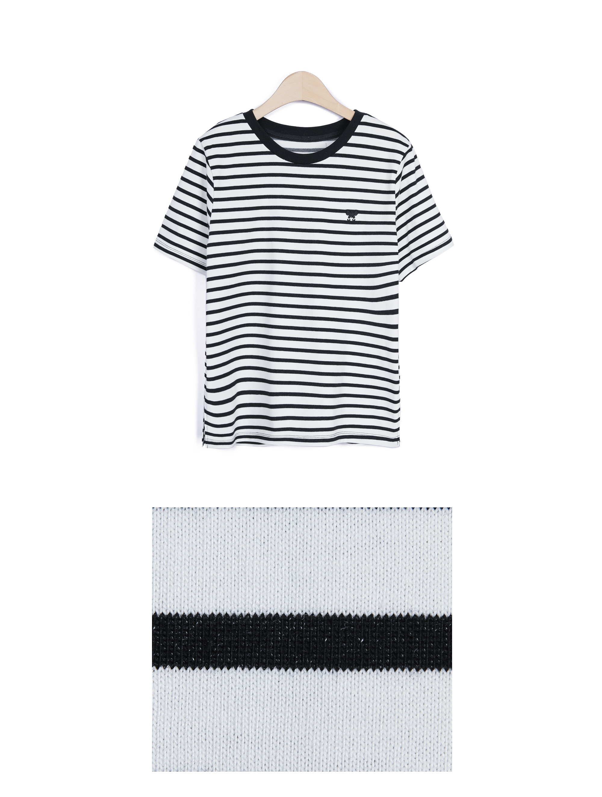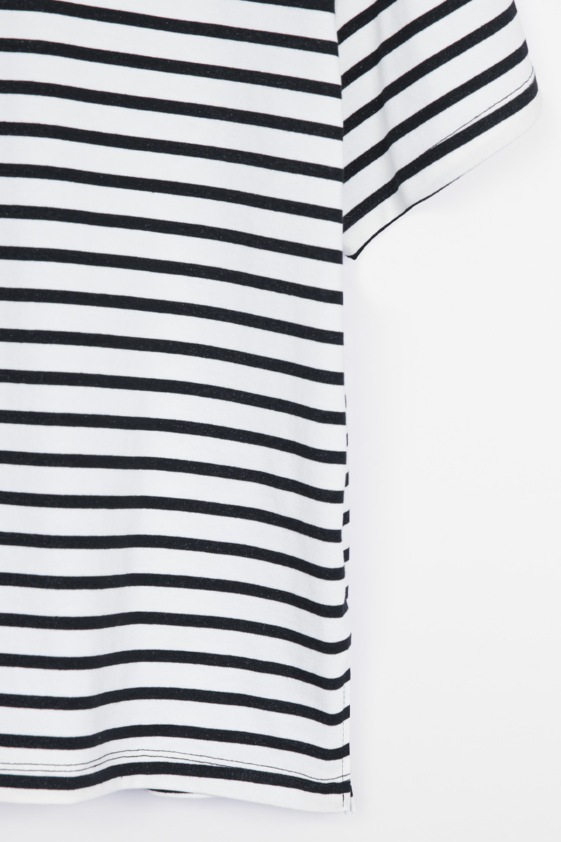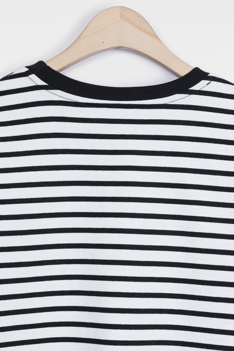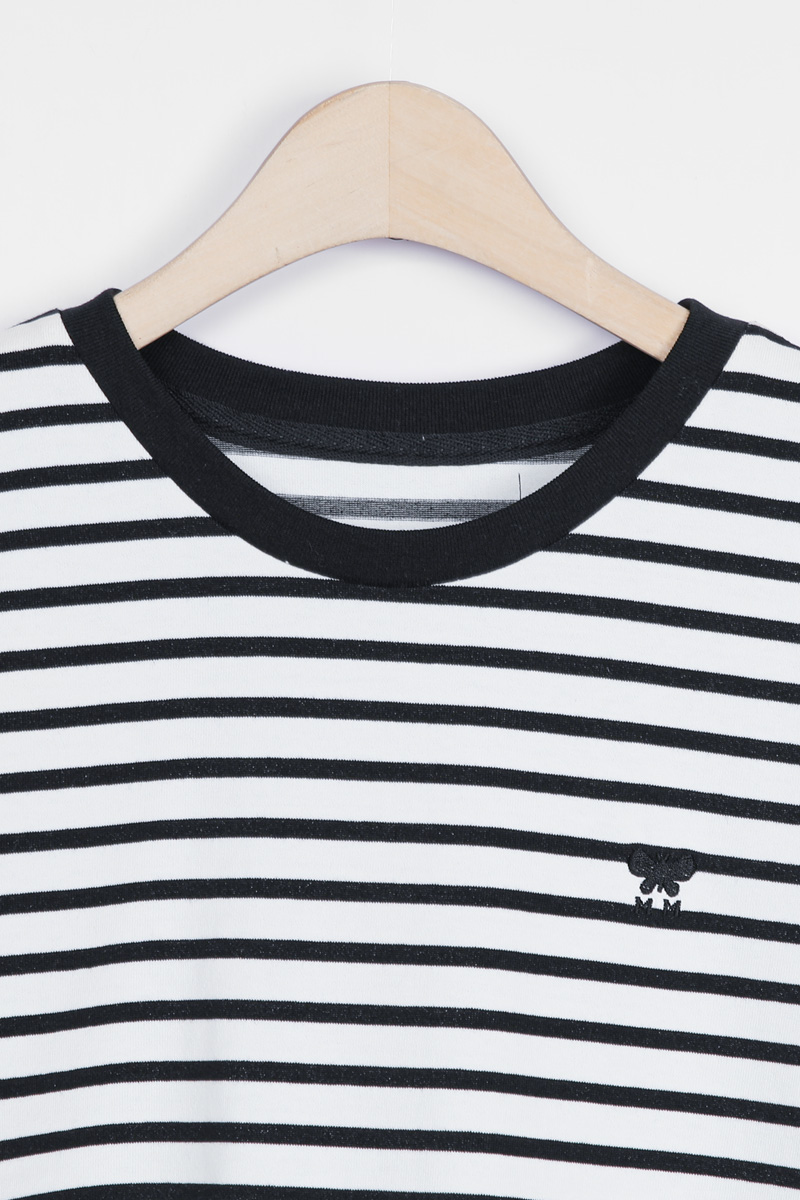 또한 스트라이프는 블랙 넥라인,