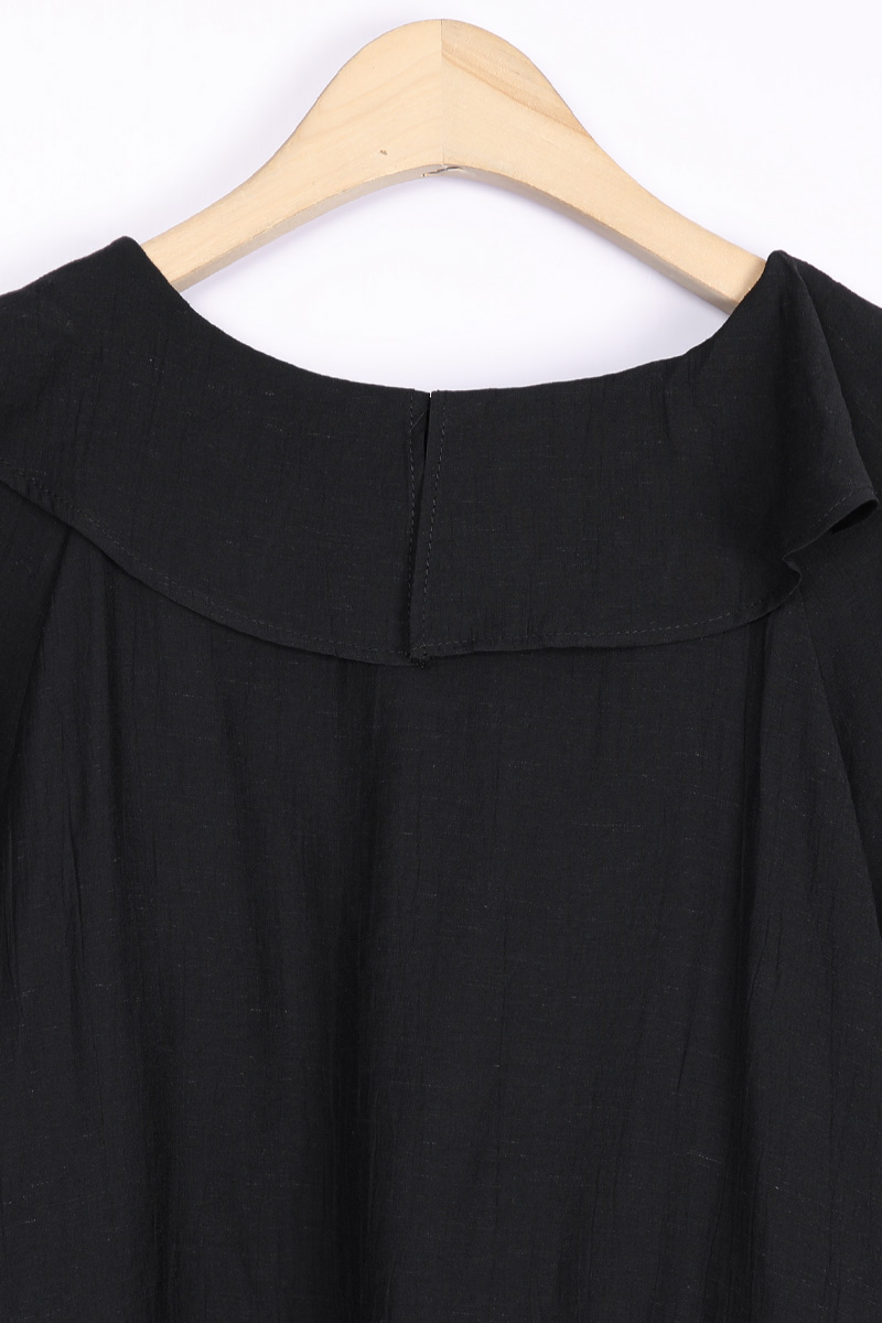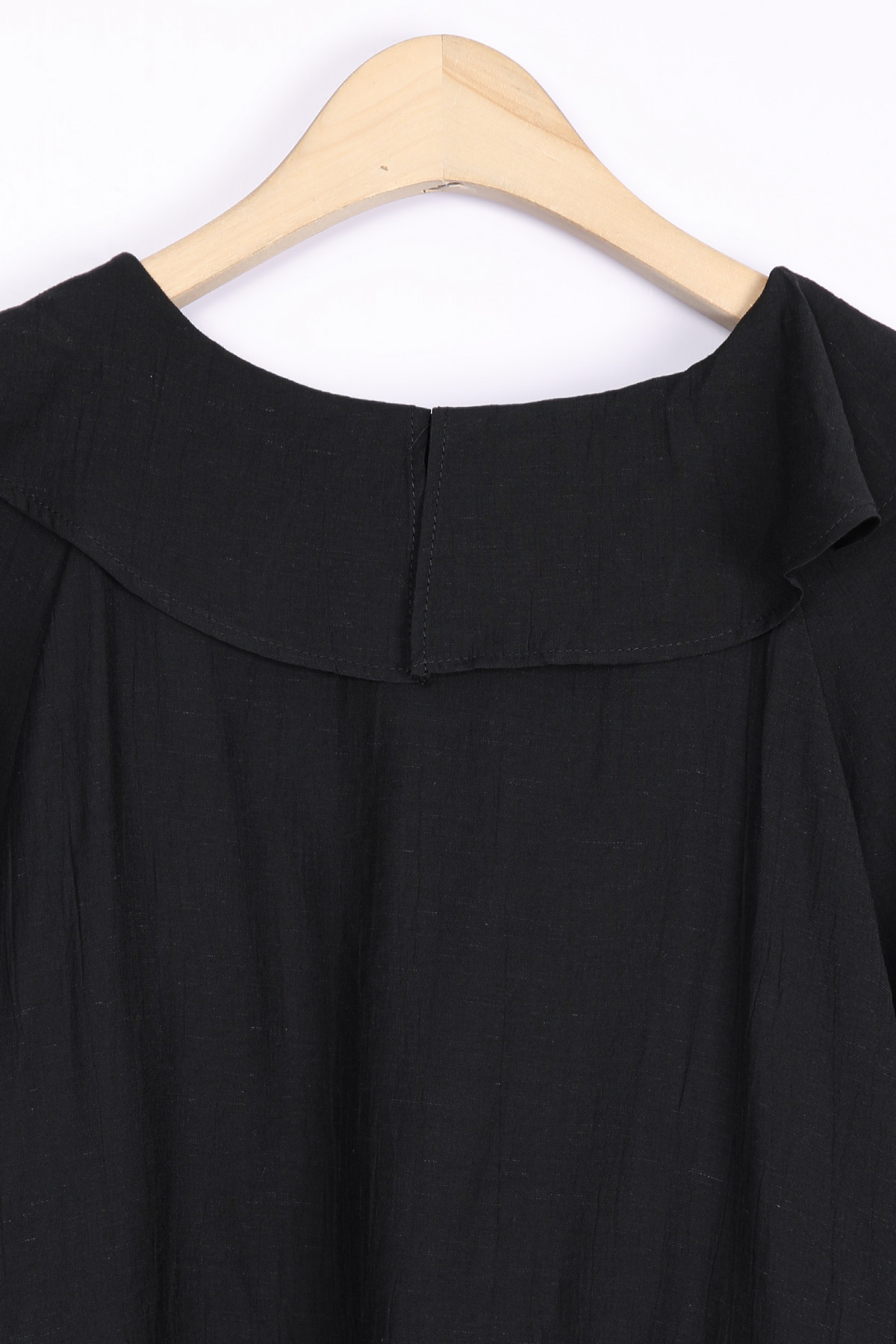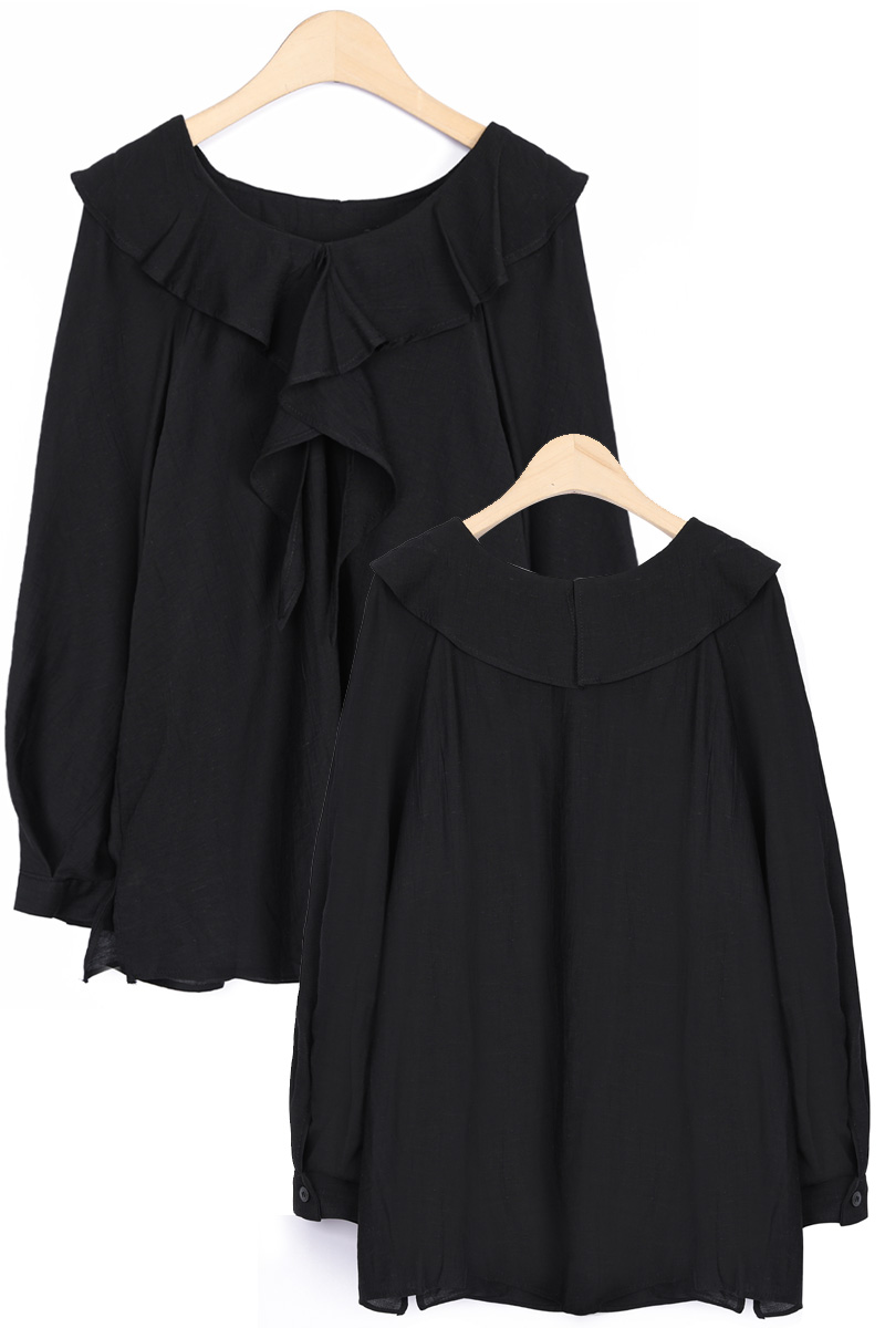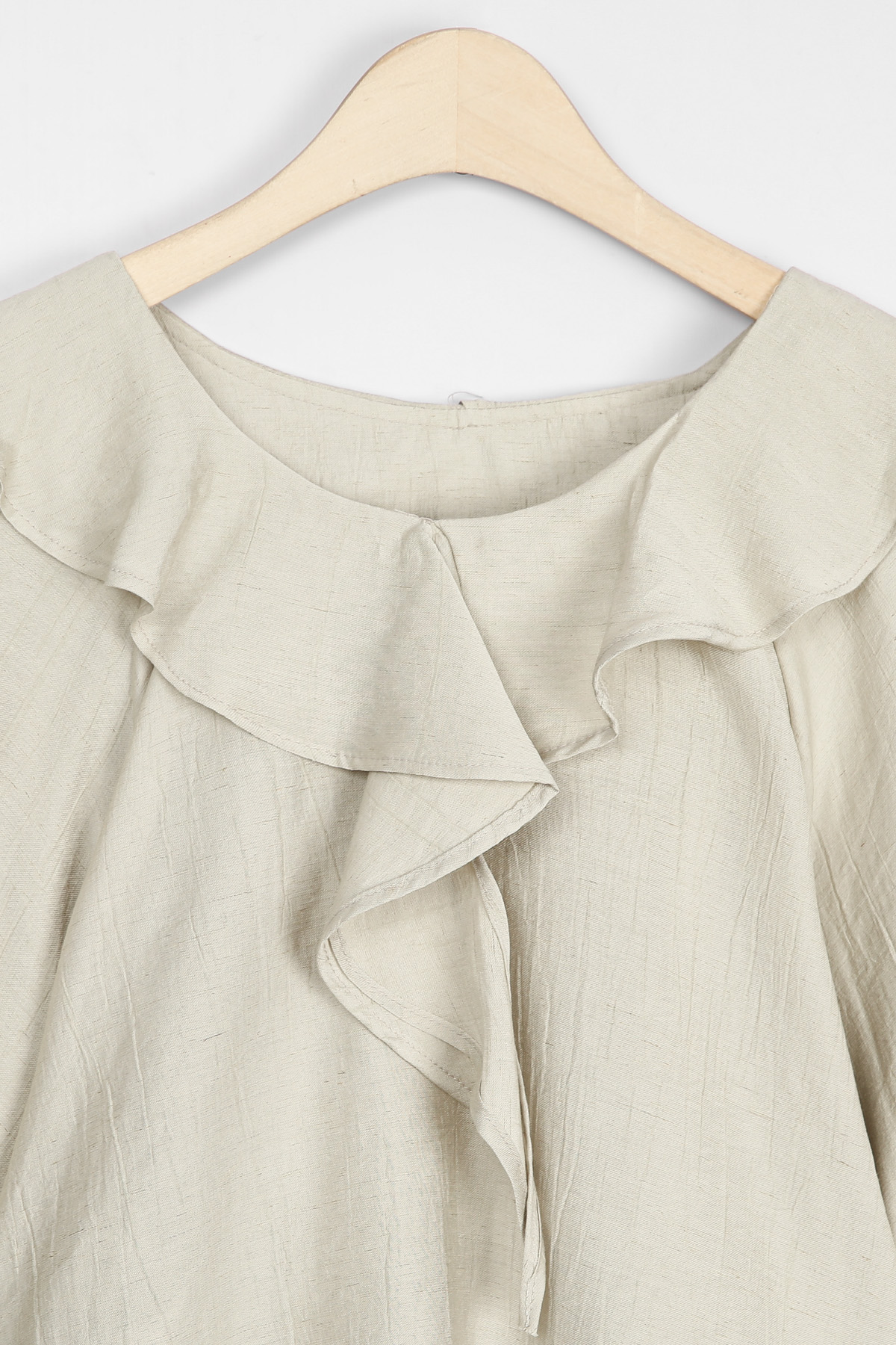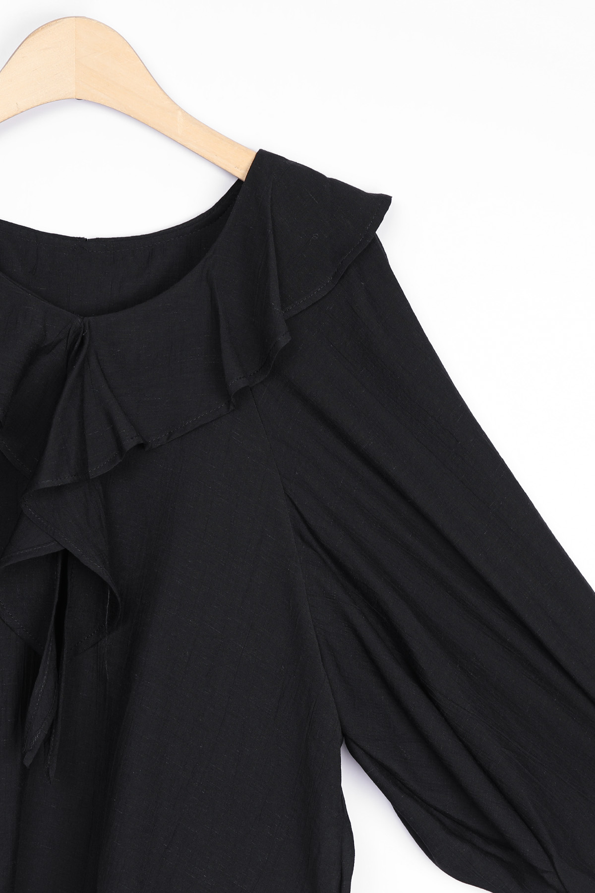 | 디테일 | 9cm 와이드 프릴 러플 카라 | 좌우에서 이어지는 프릴 카라, 프릴은 전면 중앙에서 끈 형태로 만나 트위스트 구조로 입체적인 우아함 연출 |