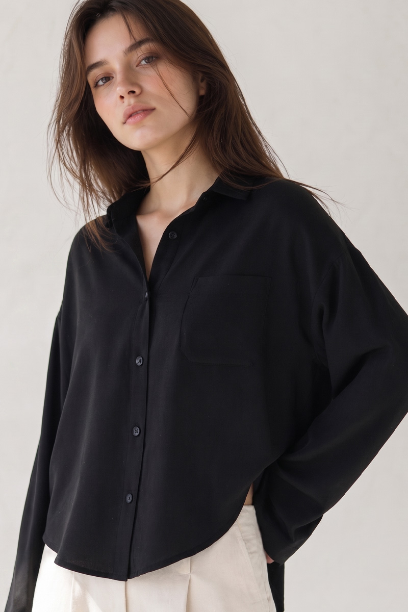 평범해 보이는 블랙 블라우스도