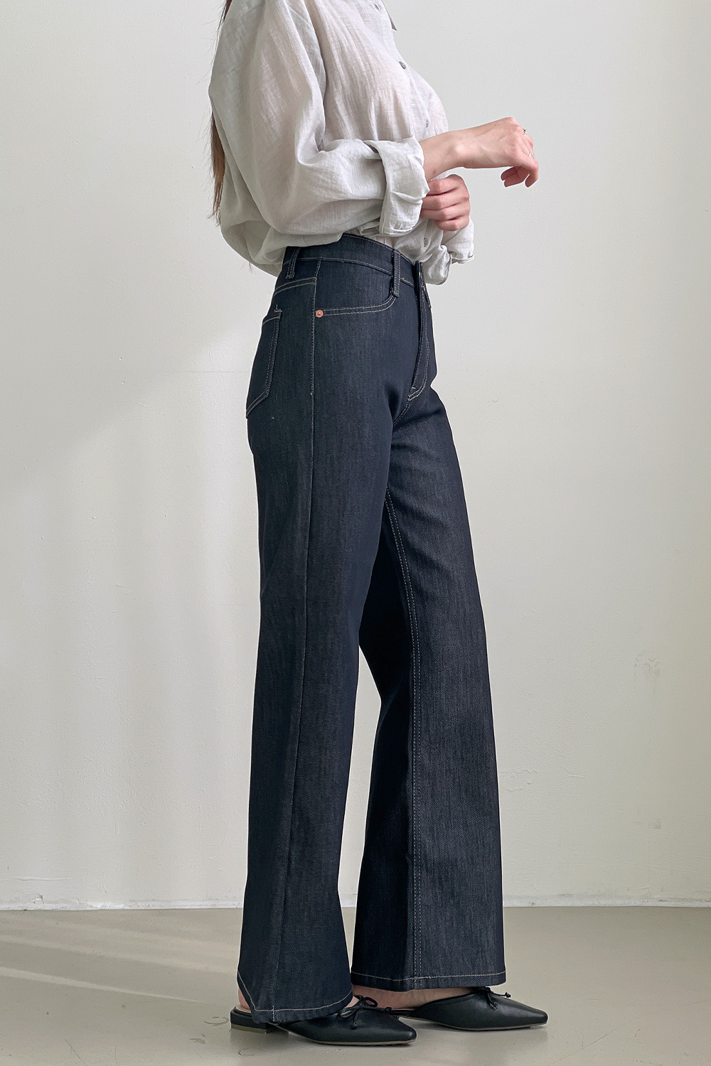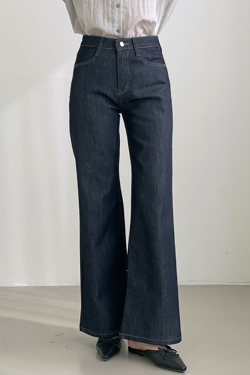 세미 부츠컷 데님이에요.