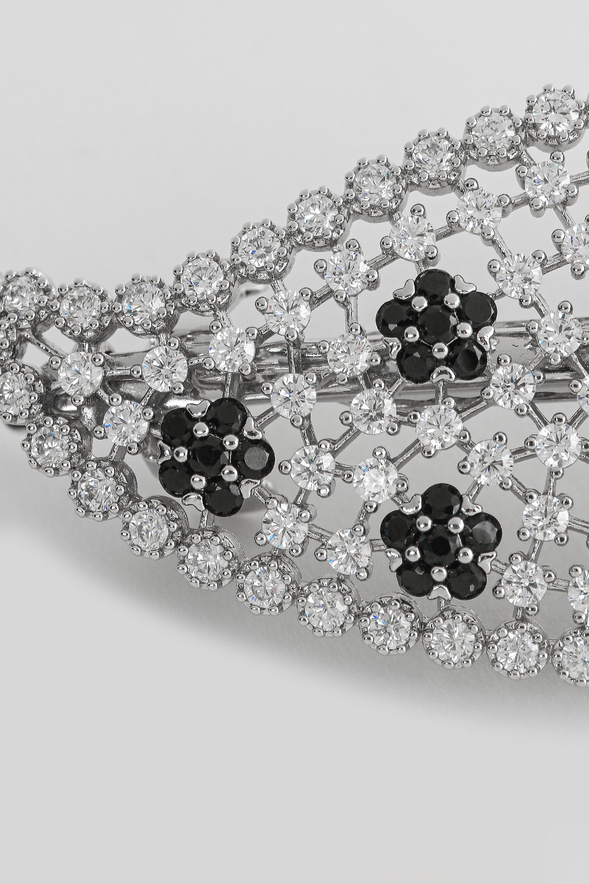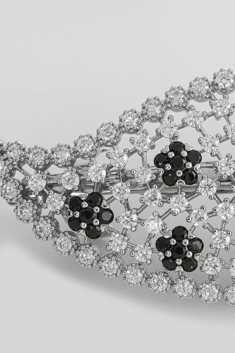 정교한 스톤 세팅 및 핸드메이드 피니싱디자인 우아한 리프(나뭇잎) 쉐입 블랙 오닉스 꽃 문양과
