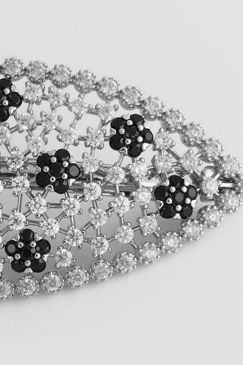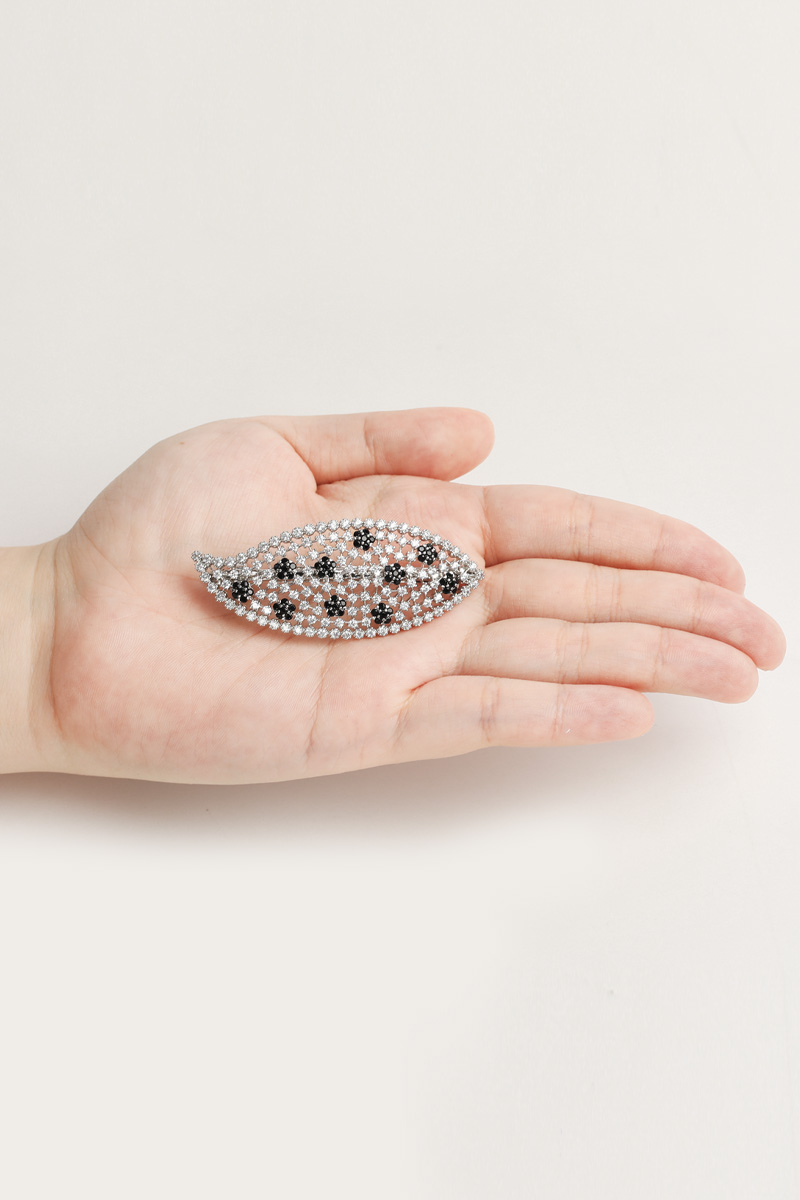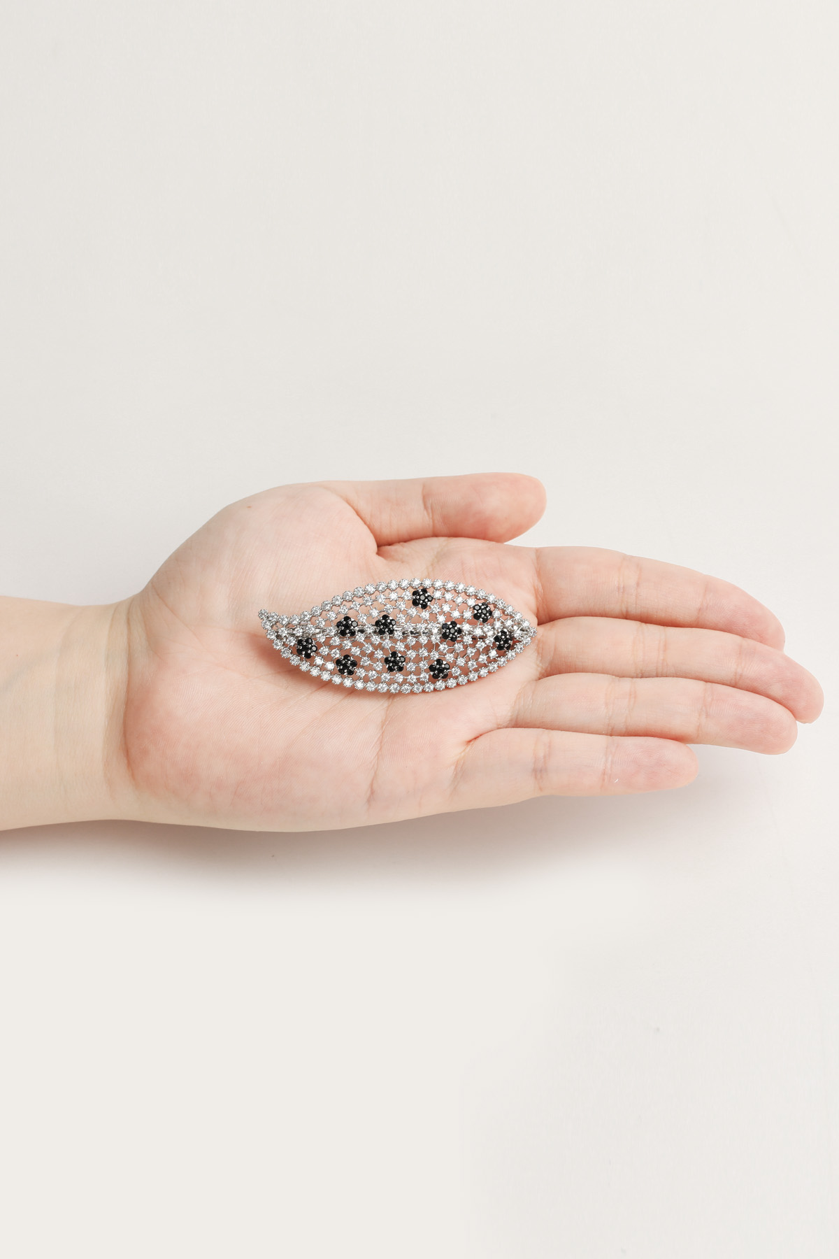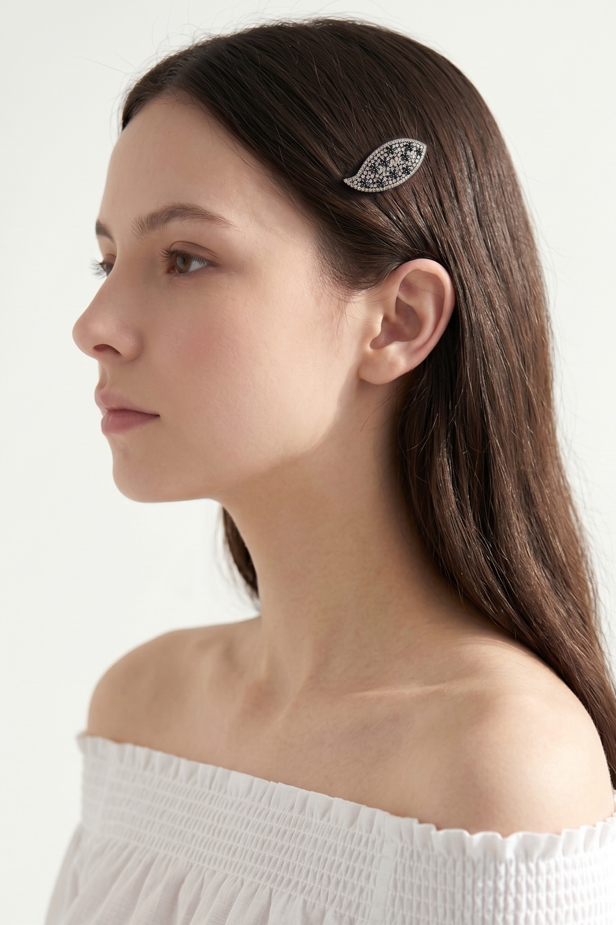 단정하게 빗어 넘긴 머리 위에 나뭇잎 하나가 내려앉은 듯한 서정적인 디자인의 헤어핀을 준비했어요. 30대부터 60대까지, 격식 있는 자리나 중요한 미팅에서 인상을 더욱 명료하고 고급스럽게 정돈해 줄 '주얼리급' 액세서리랍니다! 단순히 기계로 찍어낸 저가형 핀과는 근본부터 달라요. 숙련된 장인의 손길로 한 땀 한 땀 공간을 채워 넣고, 본딩부터 마감 처리까지 모든 과정을 핸드메이드로 진행했답니다. 주물 장식 사이사이에 화이트 큐빅과 블랙 오닉스를 촘촘하게 배열한 정교함은, 가까이에서 볼수록 그 깊이감이 남다르게 느껴지실 거예요. 수작업 특유의 견고함과 정성이 깃든 이 핀은 시간이 지나도 변치 않는 가치를 약속드려요. :) 끝단이 예쁘게 말린 나뭇잎 형태를 기본으로, 블랙 오닉스를 꽃 모양으로 배열하여 지적인 우아함을 극대화했어요. 칠흑 같은 블랙 오닉스가 중심을 잡아주고 그 주변을 화이트 큐빅이 찬연하게 감싸고 있어, 빛의 각도에 따라 마치 밤하늘의 별처럼 반짝인답니다. 퓨어한 화이트 룩에는 포인트가, 시크한 블랙 룩에는 세련된 일체감을 선사하는 컬러 밸런스는 안목을 가장 우아하게 증명해 드릴 거예요. 머리카락을 잡는 부분의 외형은 가느다란 실핀의 형태를 띠고 있지만, 실제 머리카락을 잡아주는 '짱짱함'은 그 어떤 고급 핀보다 강력하답니다. 약 5cm 길이의 탄탄한 고정력을 갖추어, 최대 1/4 정도의 반의 반묶음까지 거뜬히 소화해 낼 수 있었어요. 바쁜 업무 시간 중에도 머리카락이 흘러내릴 걱정 없이, 정갈한 헤어 라인을 하루 종일 단단하게 지탱해 주는 든든한 조력자가 되어드릴 거예요. 성인 여성의 검지 손가락 정도인 가로 폭 6.5cm 길이와 11.81g의 무게감은 이 아이가 얼마나 밀도 있게 제작되었는지를 보여주어요. 너무 가벼워 겉도는 느낌 대신, 크기 대비 안정적인 중량감을 갖추어 머리에 꽂았을 때 안락하게 안착되는 느낌을 받으실 수 있어요. 수많은 큐빅이 빼곡히 박힌 만큼 느껴지는 이 기분 좋은 무게감은 최고급 소재를 아끼지 않았다는 증거이기도 하답니다. :) 단순한 핀이 아니에요. 당당한 애티튜드를 가장 아름다운 각도로 고정해 줄 실루엣의 마침표랍니다. 화려한 액세서리가 어색한 일상에, 이 리프 큐빅 핀은 과하지 않은 화사함을 선사할 거예요. 머리카락 한 올까지 정돈된 모습에서 뿜어져 나오는 신뢰감, 고민 없이 선택하셔도 좋을 검증된 퀄리티로, 오늘의 스타일링에 완벽한 마침표를 찍어보세요. :)시선이 머무는 찰나, 격을 결정하는 한 끗