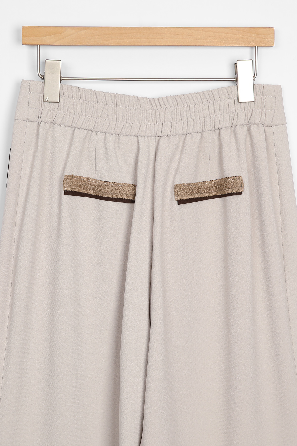 다리가 곧고 길어 보이는 입체 패턴포켓 구성 페이크 백 포켓 (사이드 없음) 매끈한 실루엣을 위해 앞/뒤 포켓을 배제한 클린 디자인 설계 원단감 드라이 & 찰랑한 텍스처 겉은 고들고들하고 속은 매끈하여