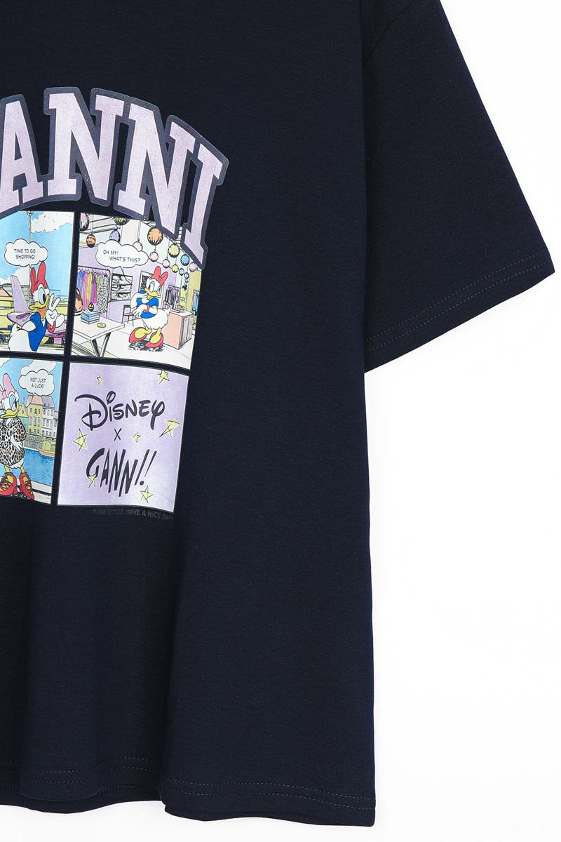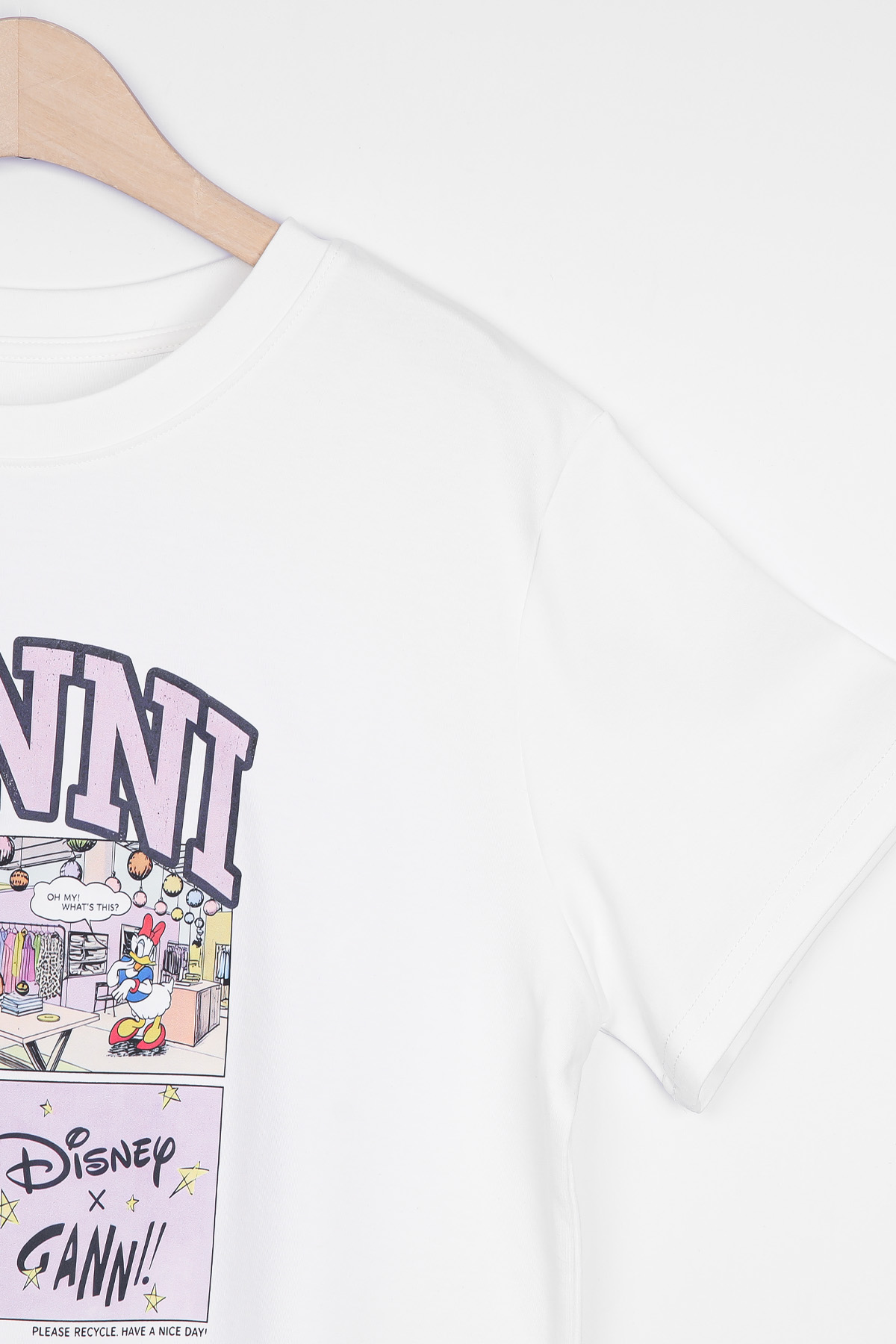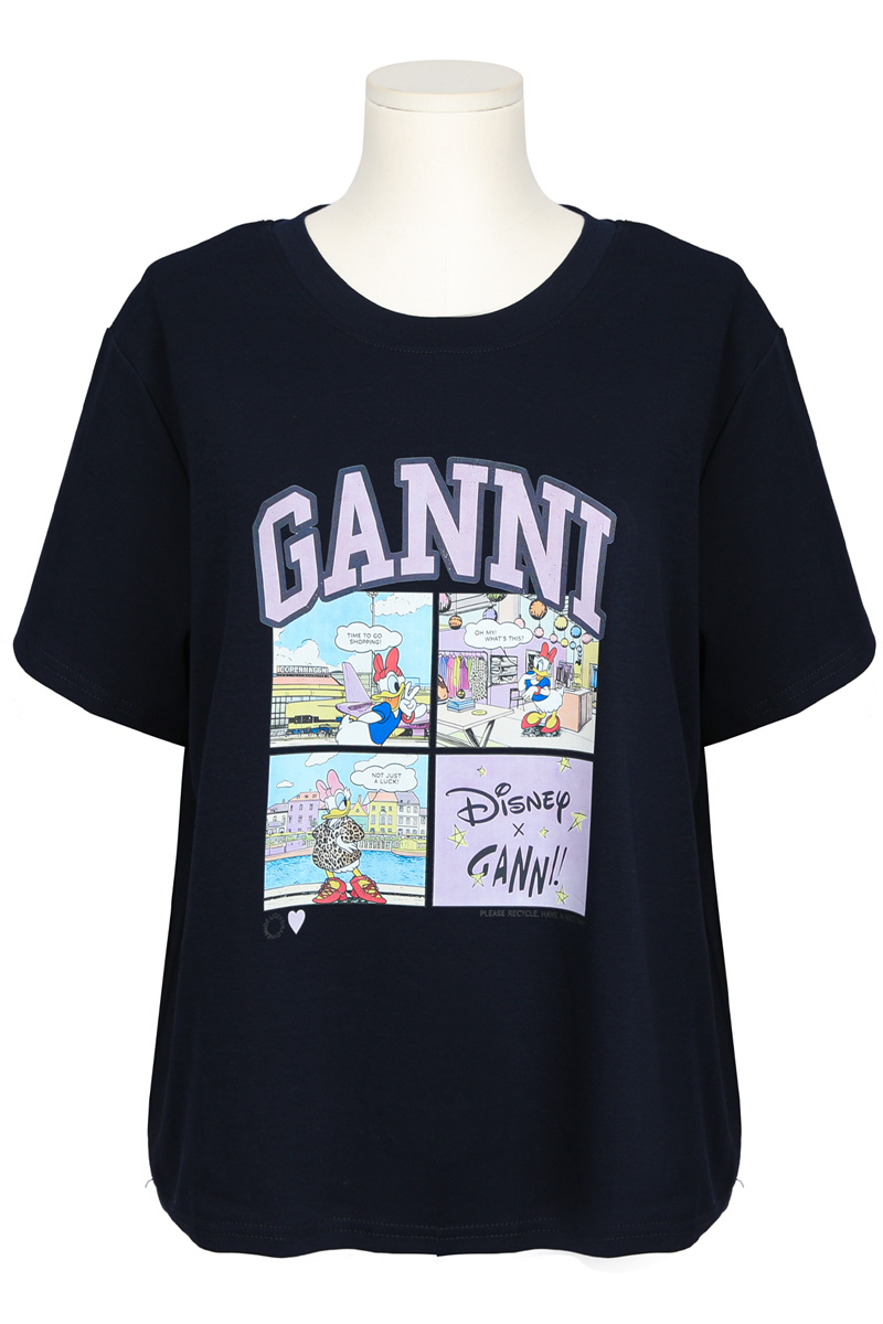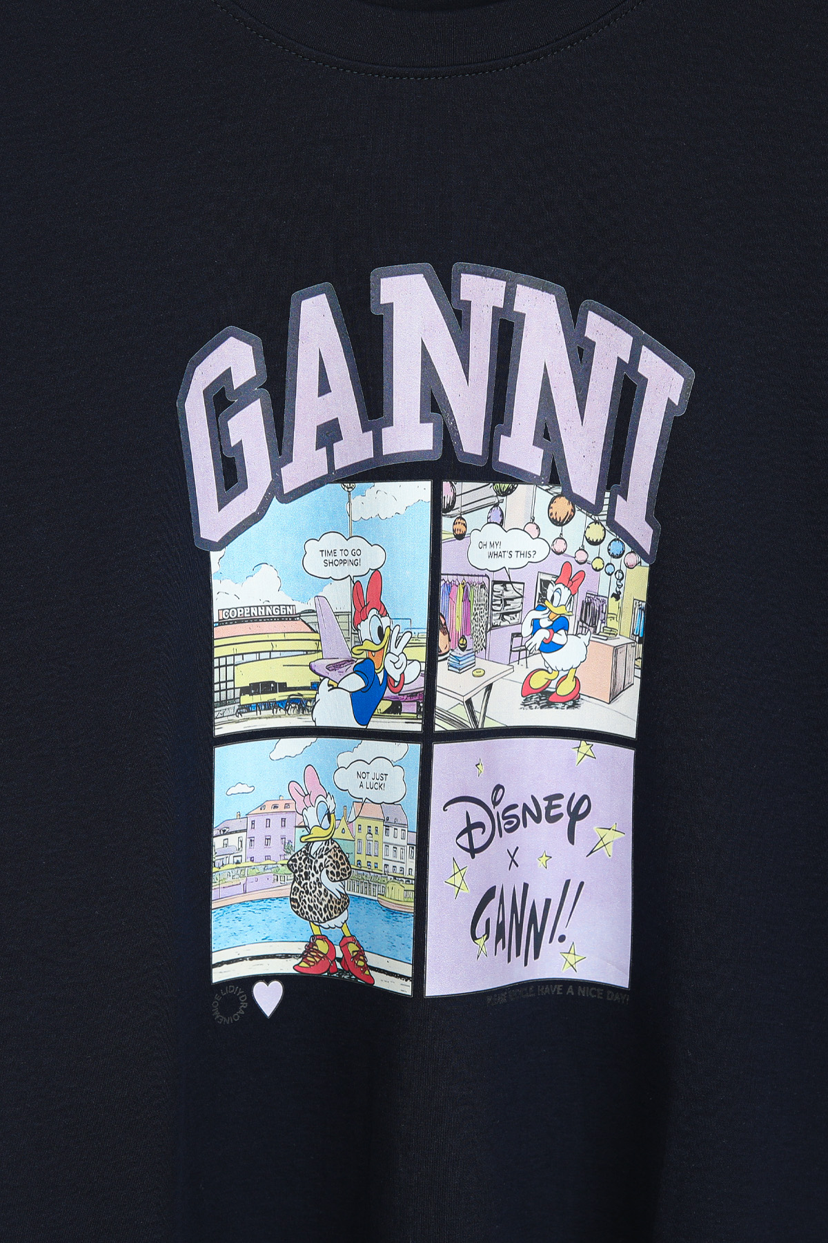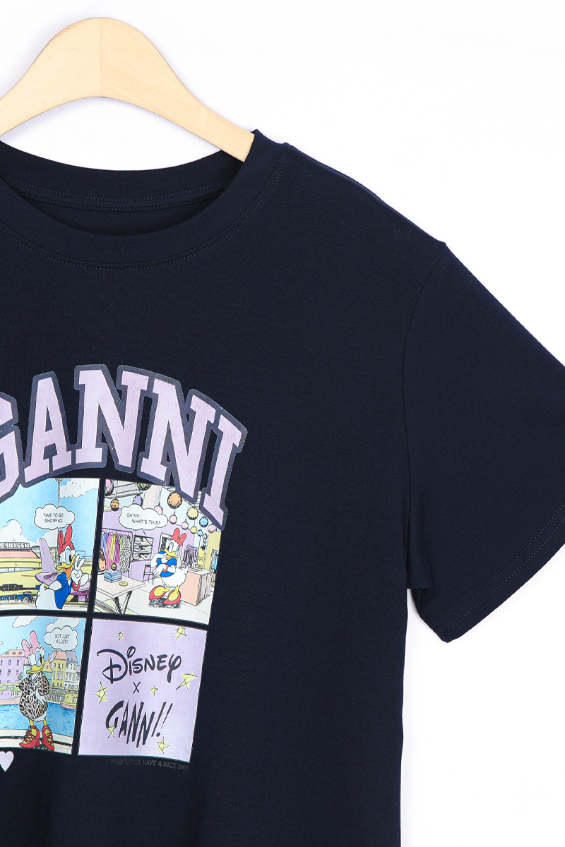 | 디자인 | 데이지 카툰 전사 나염 | 라벤더 톤의 아치형 레터링과 위트 있는 4컷 카툰의 조화 |