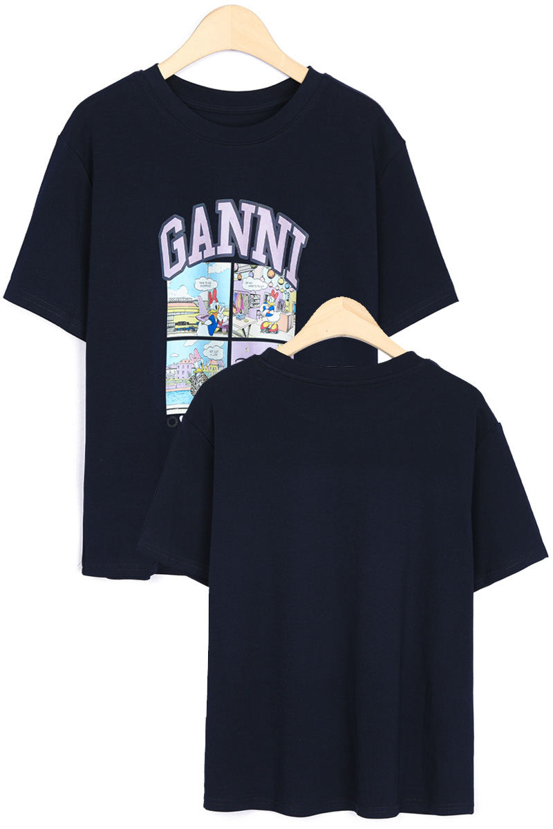 | 비침 | 아이보리(약간 비침) / 네이비(없음) | 프린팅 배치가 가슴선을 적절히 가려주어 단독 착용 가능 |